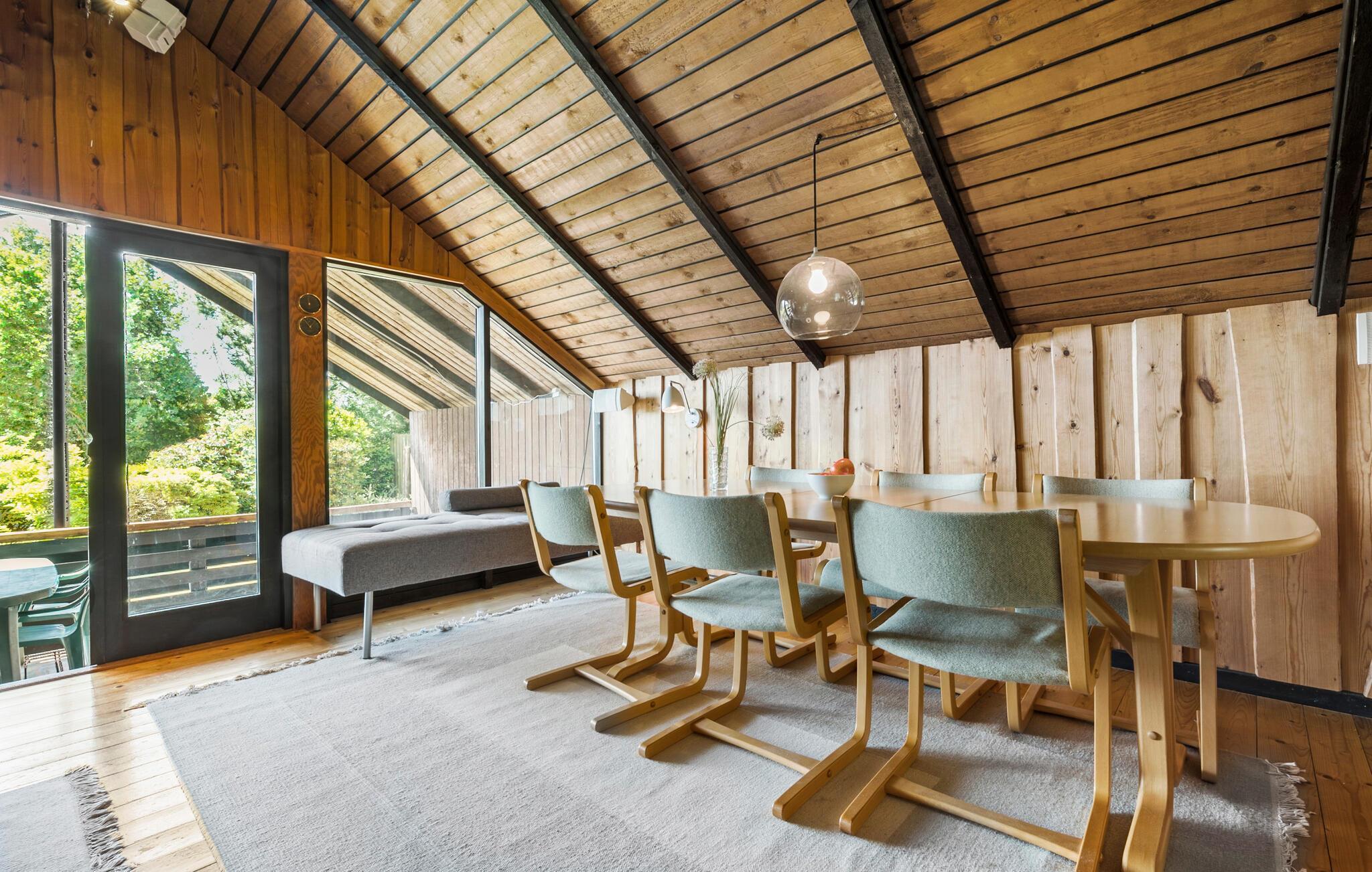 Der er en dejlig ro i dette autentiske sommerhus, hvor træets varme farve skaber en ekstra fredfyldt stemning. Huset ligger ud til et skønt landskab og giver jer derfor følelsen af at være landet i en dejlig oase langt væk fra den hektiske hverdag. Den store have med masser af plads til at løbe og lege giver jer en herlig plet, når I skal nyde solen og den friske luft. Børnene kan løbe uforstyrret rundt, mens de voksne slapper af på terrassen. Den overdækkede terrasse giver også beskyttelse mod sol og regn, så her kan I sidde komfortabelt udenfor selv i lidt omskifteligt sommervejr.
