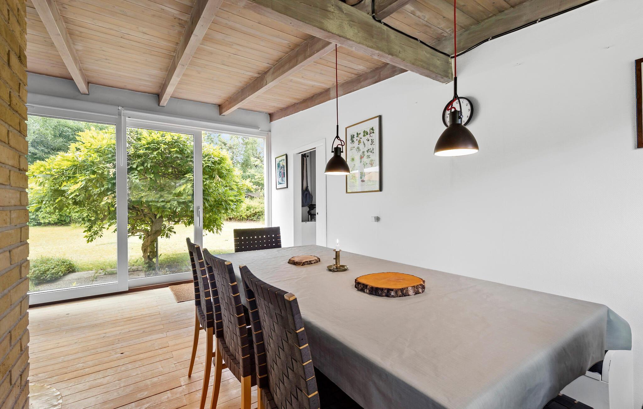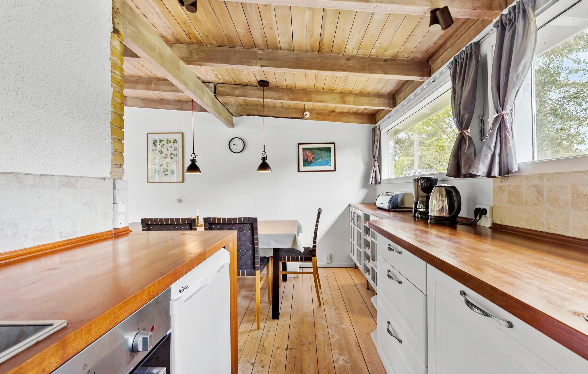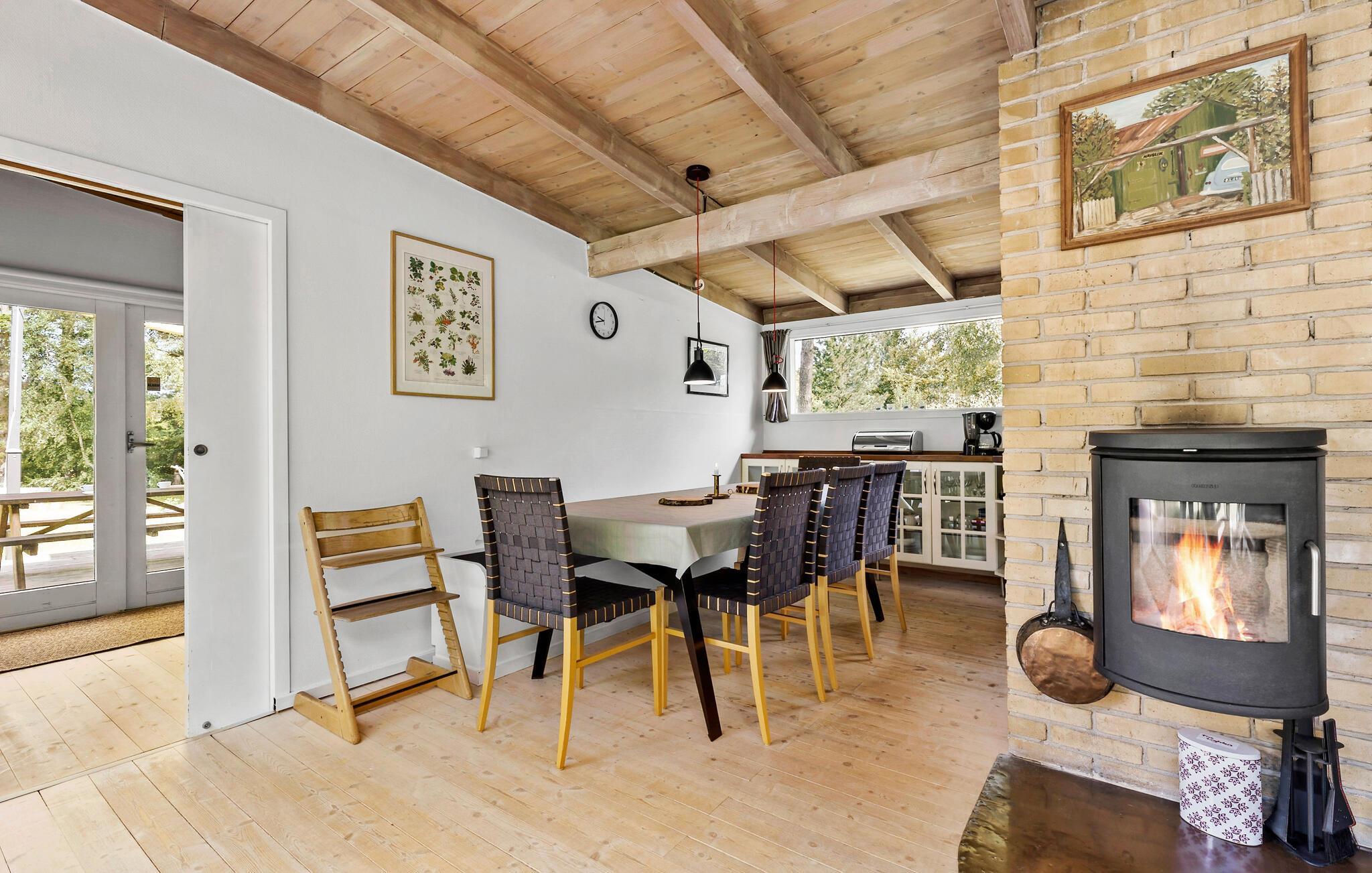 Tag familien under armen og rejs til Nordsjælland, hvor I på en skøn naturgrund mellem hav, fjord og sø finder denne hyggelige perle af en feriebolig. Omgivelserne er virkelig dejlige, og indvendigt emmer det af hygge med trælofter, rå murstensvægge og en brændeovn, der giver varme og stemning, hvis vejret skulle bide lidt fra sig. Her er masser af vinduespartier, der giver dejlige lysindfald og en skøn udsigt til det grønne, som kan nydes under madlavningen i det fint udstyrede køkken og måltiderne ved spisebordet. Lad en hyggelig aften gå på hæld til lyden af den knitrende ild med brætspil eller et godt glas vin, mens I lægger planer for de kommende dage.