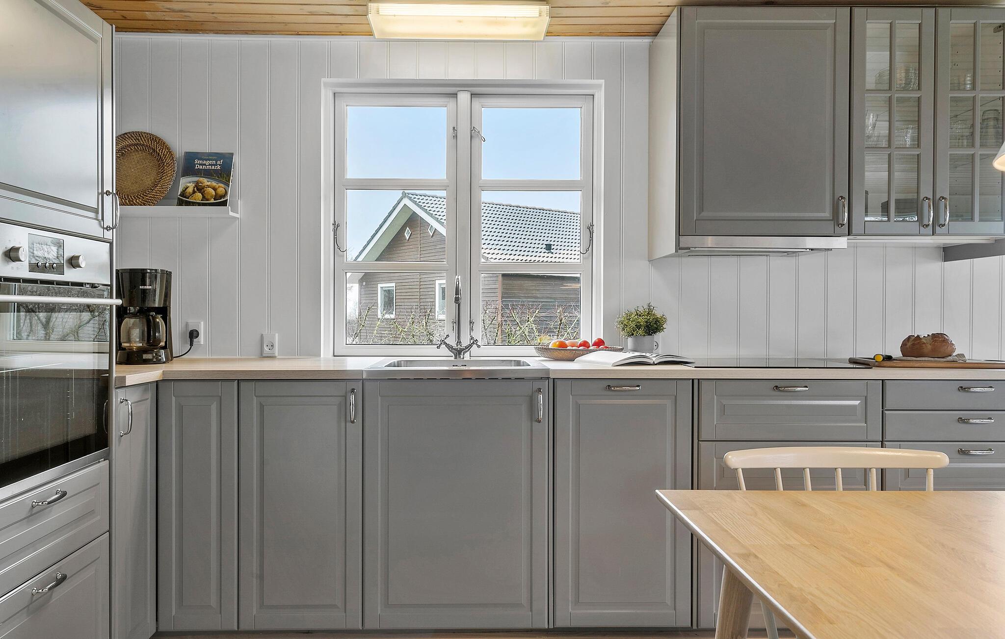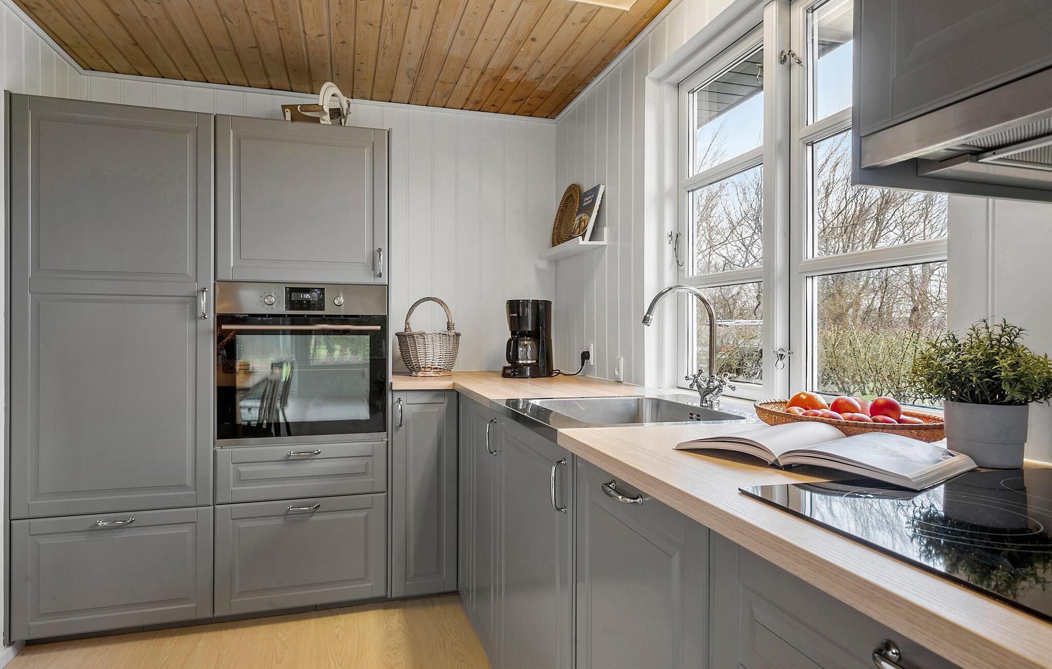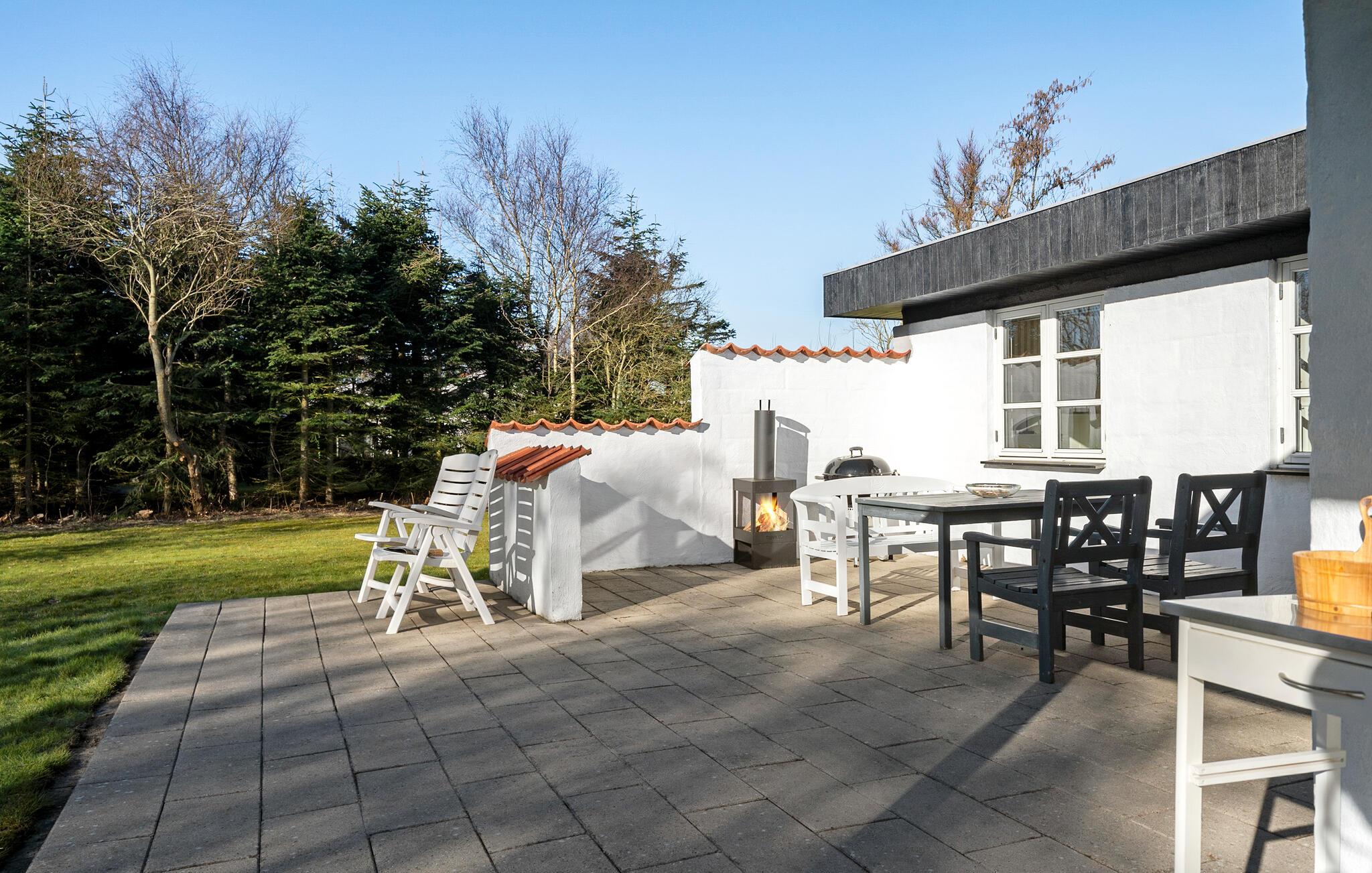 Dette lyse, indbydende sommerhus byder velkommen med en hyggelig indretning og smagfuld løsninger. Tænd op i brændeovnen og glæd jer til hyggelige madlavningsaftener i det åbne køkken efterfulgt af fællesspisning rundt om det indbydende spisebord. Slå jer ned i sofaen og hyg jer med en god film, en spændende bog eller en spilleaften.