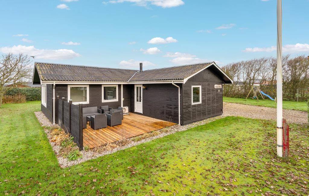 Hyggeligt fritidshus tæt på Limfjorden med terrasse, brændeovn og aktiviteter for hele familien.