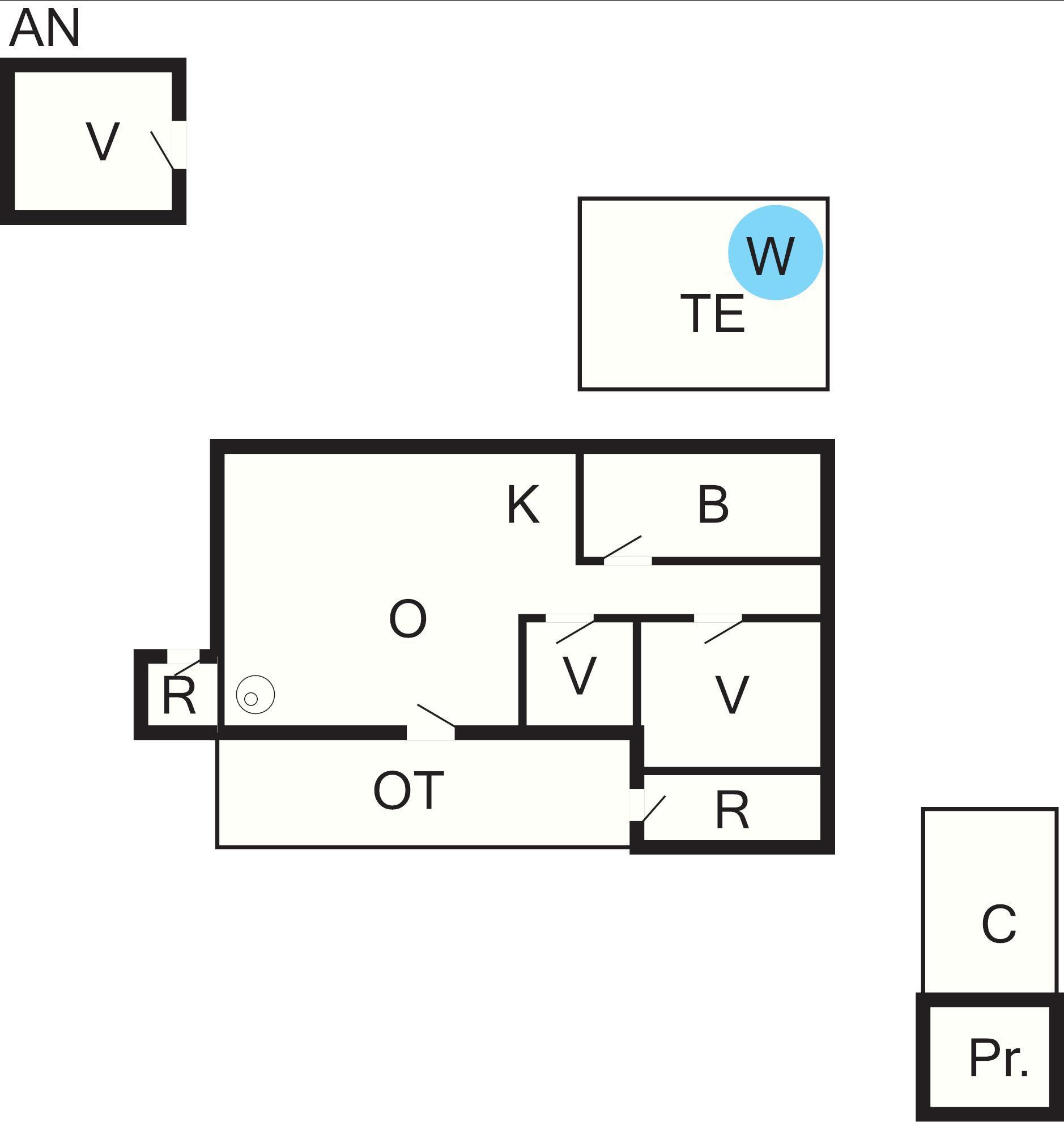 Sommerhuset er praktisk indrettet med kombineret stue/køkken/alrum. Stuen har moderne møbler, højhastigheds-internet, og et fladskærms-tv med både tyske og danske kanaler, herunder TV-2. Der er pilleovn til kølige sommeraftener eller regnfulde og blæsende efterårsaftener.