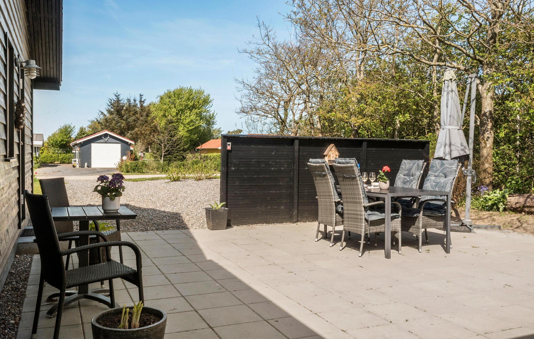Der er også gode muligheder for hyggestunder udenfor. Solbad i træterrassens liggestole eller nyd dagens måltider på terrassen. Læn jer tilbage i vildmarksbadet og nyd den friske prikkende luft en skøn aften under åben himmel. Den store have lægger op til leg, afslapning og livsnyderi.