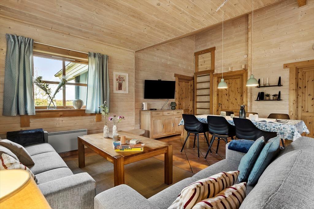 Når du træder ind i sommerhuset, bliver du mødt af en lys og rummelig atmosfære med højt til loftet og plads til nærvær. Hjerterummet er det store, åbne opholdsrum, hvor køkken, spiseplads og stue smelter sammen – perfekt til lange morgenmåltider, hyggelige kortspil og afslappende aftener foran brændeovnen. Store vinduespartier trækker naturen helt ind i stuen og skaber en rolig ramme om feriedagene. Når du har brug for lidt ekstra forkælelse, kan du tænde op i saunaen eller synke ned i spabadet på badeværelset – en perfekt afslutning på en lang strandtur. De fire gode værelser sikrer samtidig, at hele familien eller vennegruppen har hver sin base til afslapning og opladning.