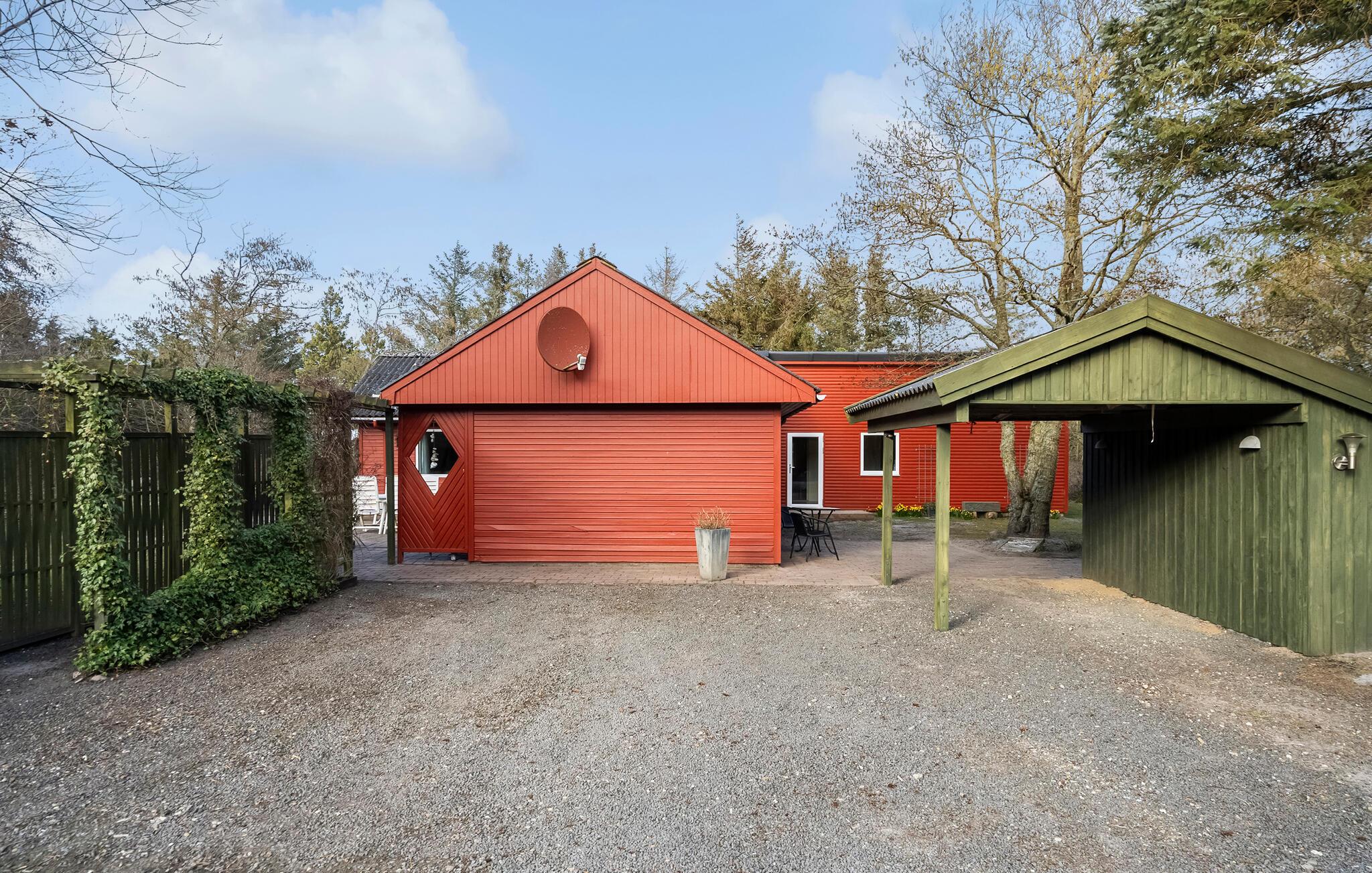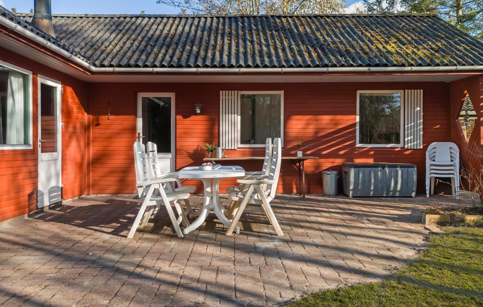 Udenfor finder I en stor terrasse med forskellige siddemuligheder, ideel til afslappende timer udendørs. Brug grillen til en fælles grill eller nyd solen på de medfølgende havemøbler. Den store have byder på plads til aktiviteter og er omgivet af idyllisk natur, der lægger op til gåture.