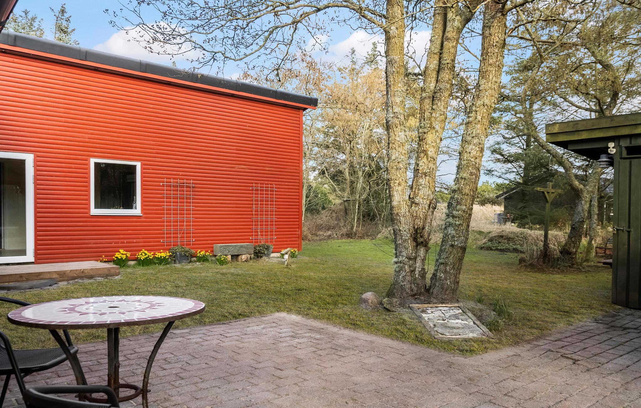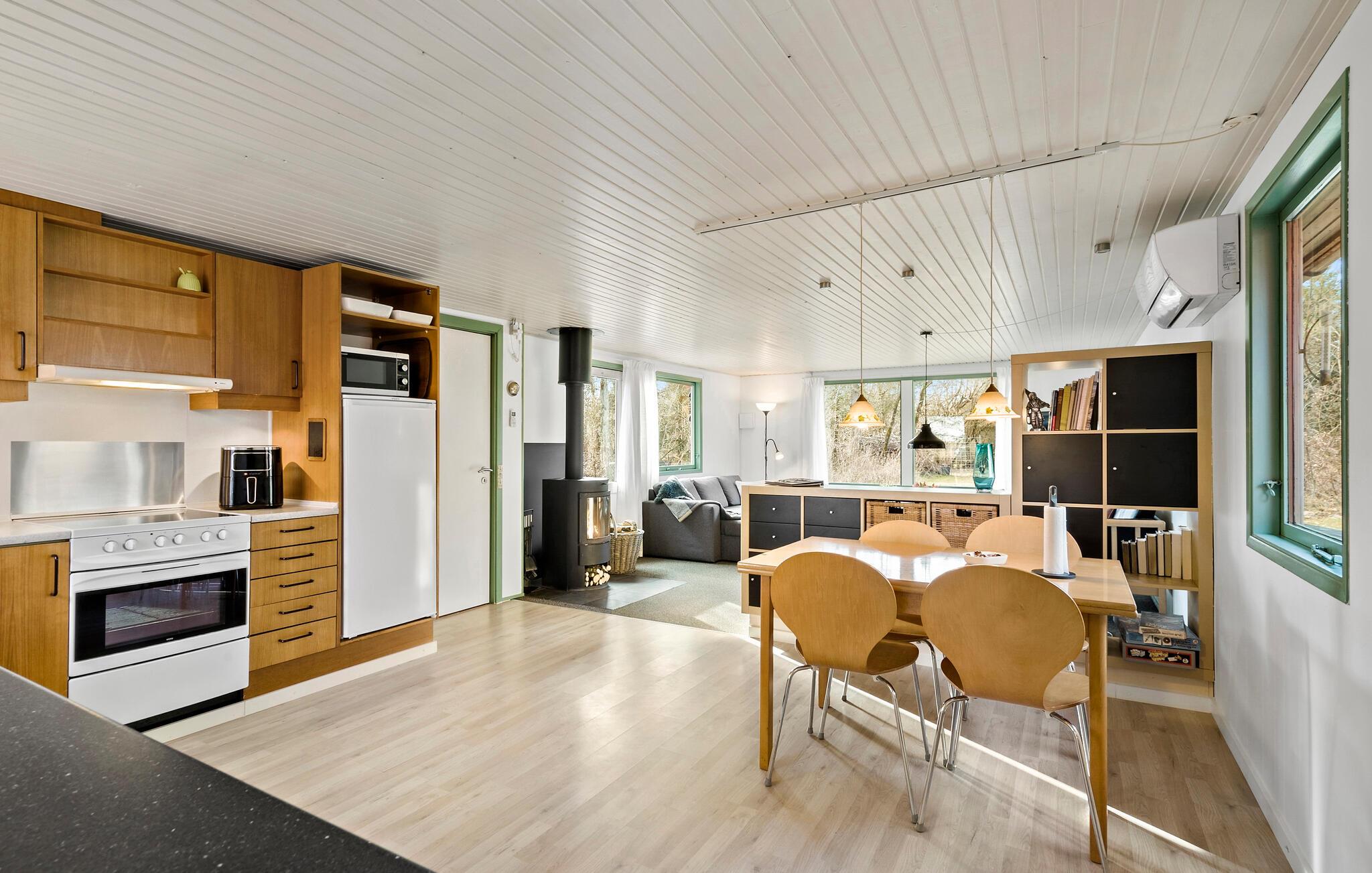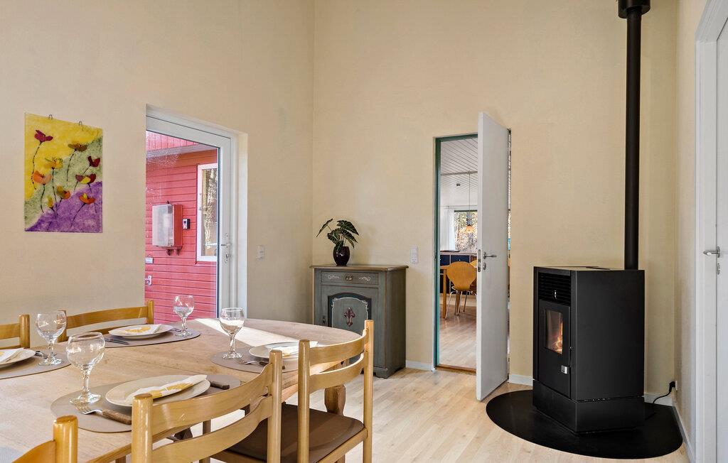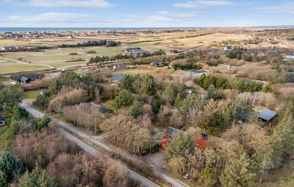 Glæd jer til en uforglemmelig pause fra hverdagen i dette hyggelige feriehus midt i naturen mellem Søndervig og Lodbjerg Hede. Her kan I forvente fred, ro og et malerisk miljø, der er ideelt til en afslappende ferie. Huset er noget særligt og har en varm og indbydende atmosfære. Den rummelige opholdsstue byder på en hyggelig sofagruppe og en brændeovn, der giver hyggelig varme på kølige dage. Køkkenet og den tilstødende spiseplads lægger op til at nyde måltider sammen. Afslut dagen med en god bog eller en film og nyd komforten i det smagfulde hus.