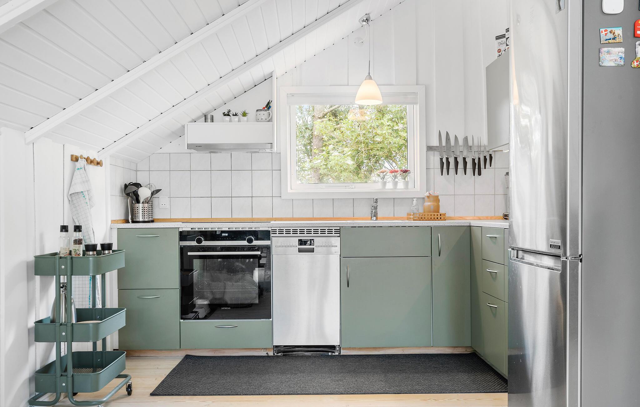 Huset er indrettet med et hyggeligt, kombineret køkken/alrum med god plads til seks personer. Her findes tre soveværelser, et badeværelse med brus samt en skøn udestue, der ligger i forbindelse med stuen. Udendørs har I en dejlig terrasse, hvor I kan nyde vejret, mens børnene leger i haven.