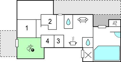 Soveværelse 6m2 (nr. 4) - 1 Soveplads. (Enkeltseng(e)). 2 Sovepladser. (Dobbeltseng(e)).