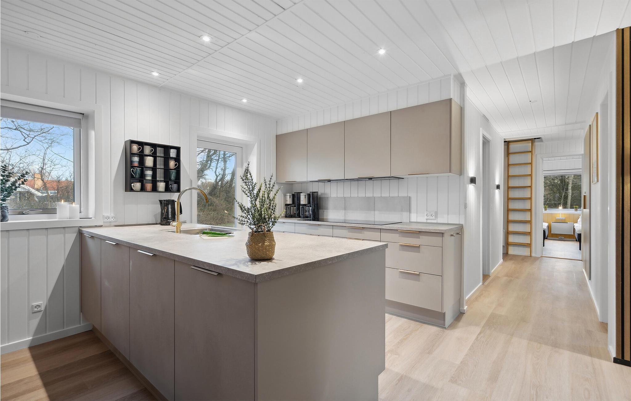 Huset er indrettet med et lyst, åbent køkken/alrum der ligger i forbindelse med stuen. I stuen skaber brændeovnen hygge på de mørke dage, og fungerer ligeledes som supplerende varmekilde til varmepumpen. Der findes fire gode soveværelser samt et aktivitetsrum med billiardbord. I wellnessområdet kan I nyde swimmingpoolen, spabadet og saunaen.