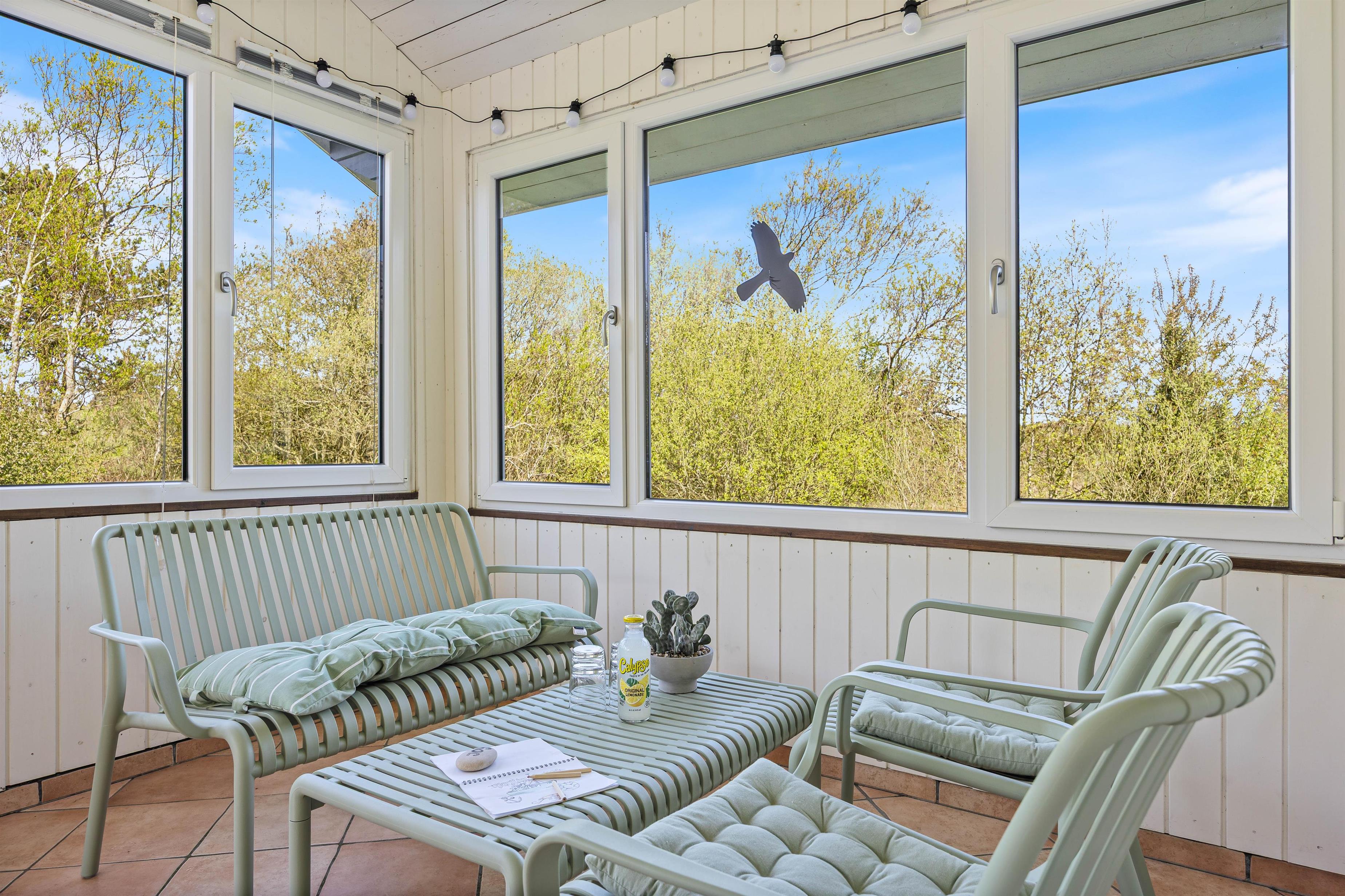 Der er gode muligheder for at nyde ferien på de forskellige terrasser i dette hus. Mod sydvest er der en helt åben terrasse, hvor der ofte kan findes læ. Mod vest er der en delvist overdækket terrasse, som også er delvist afskærmet. Her kan man grille om aftenen, mens børnene spiller fodbold på græsplænen lige ud for. Vesterhavet er kun 1700 meter fra huset, en kort køretur eller en frisk travetur.