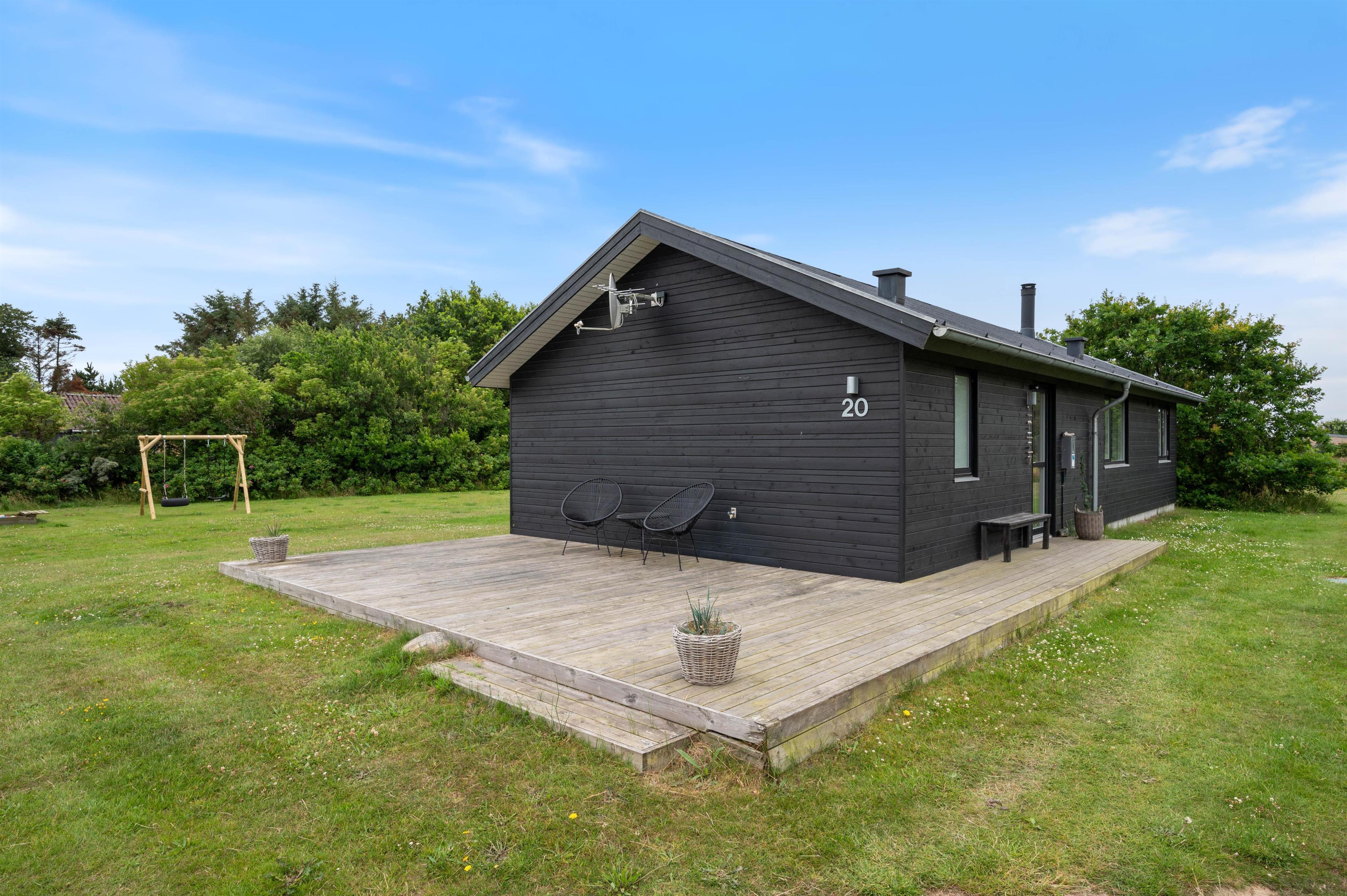 Lodbjerg Hede er et populært ferieområde, der især er kendt for sin grønne natur, store feriehusgrunde og fredfyldte atmosfære. Det er også tilfældet på Brunbjergvej 20 - der er både en stor terrasse med masser af plads til at slappe af og solbade og ikke mindst en stor have med sandkasse og gynge til børnene.