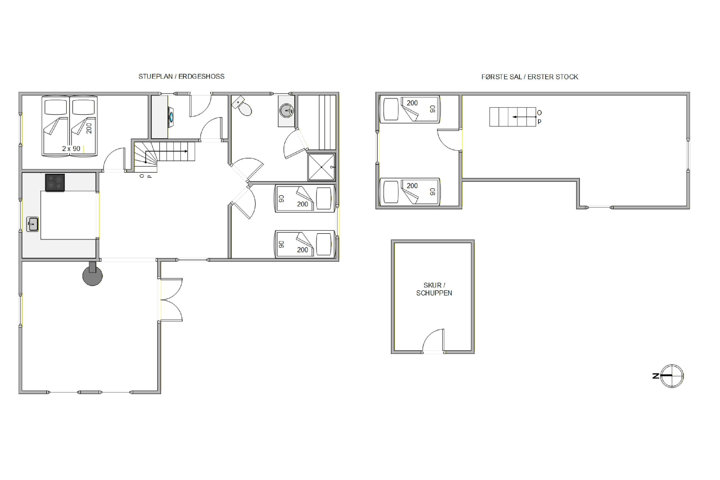 Sommerhuset råder over 3 lyse og indbydende soveværelser, der sikrer gode rammer for en behagelig nattesøvn efter en oplevelsesrig dag ved den danske vestkyst. Ét soveværelse er indrettet med dobbeltseng, mens de to øvrige hver har 2 enkeltsenge, hvilket gør huset velegnet til både familier og vennepar.