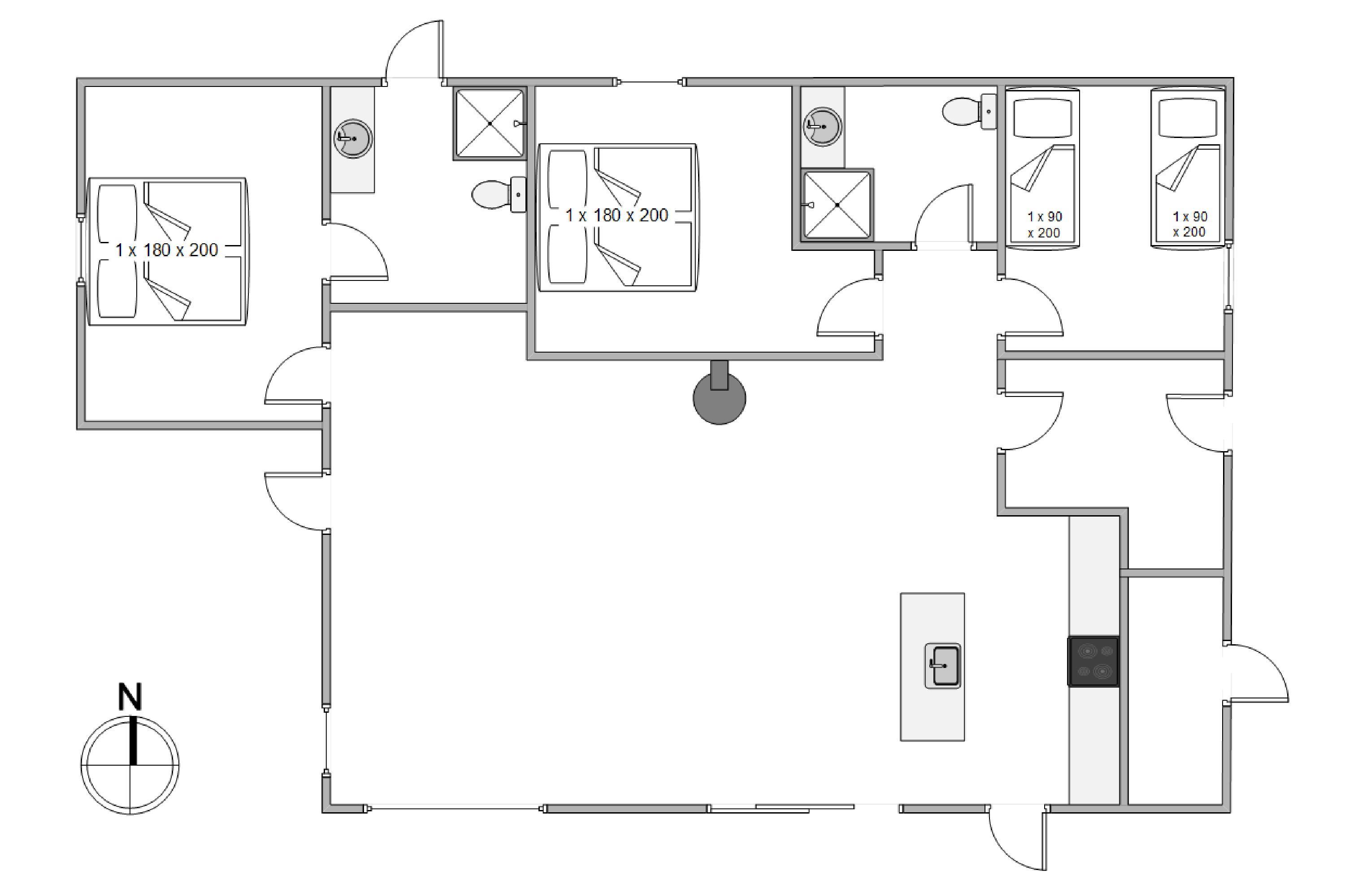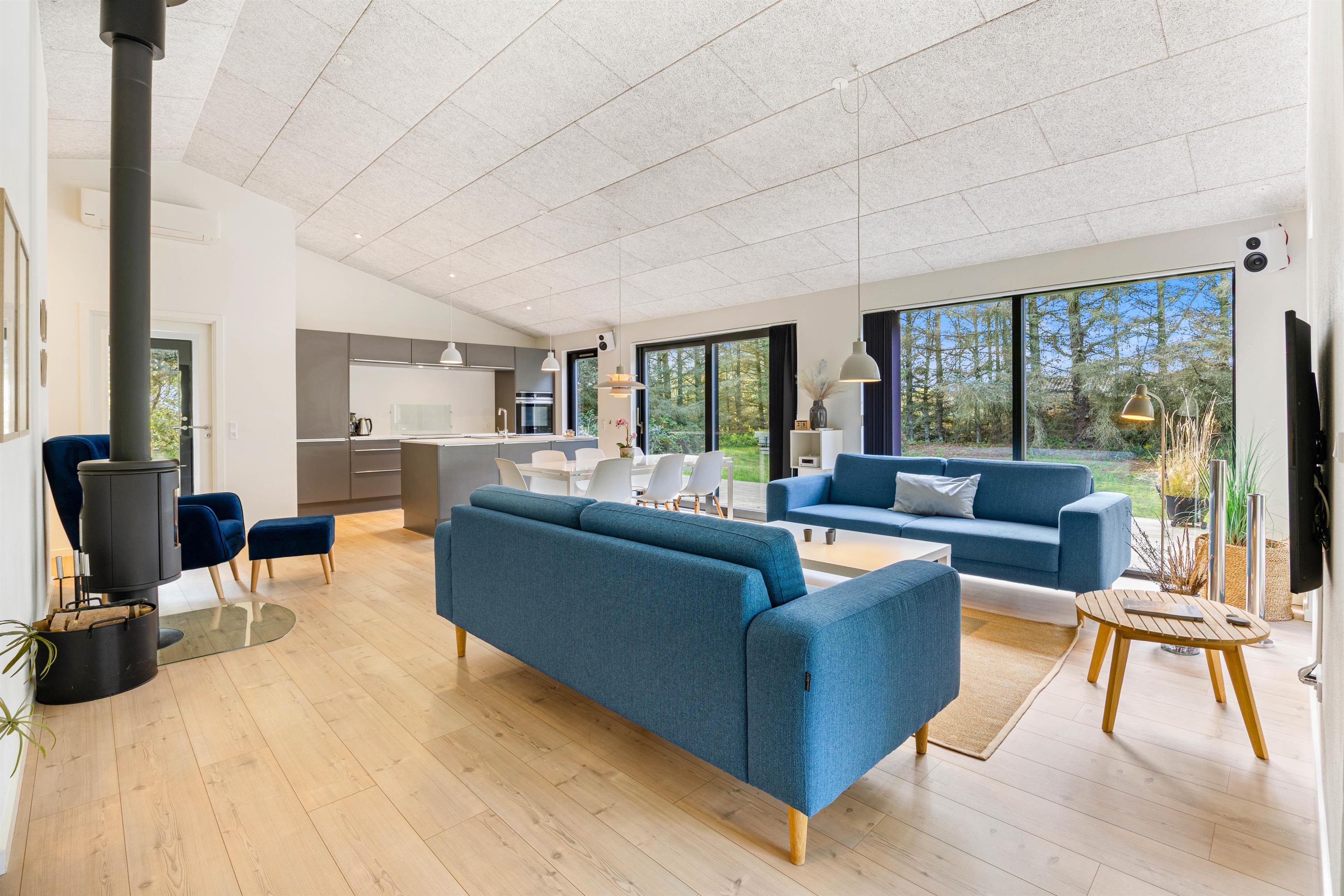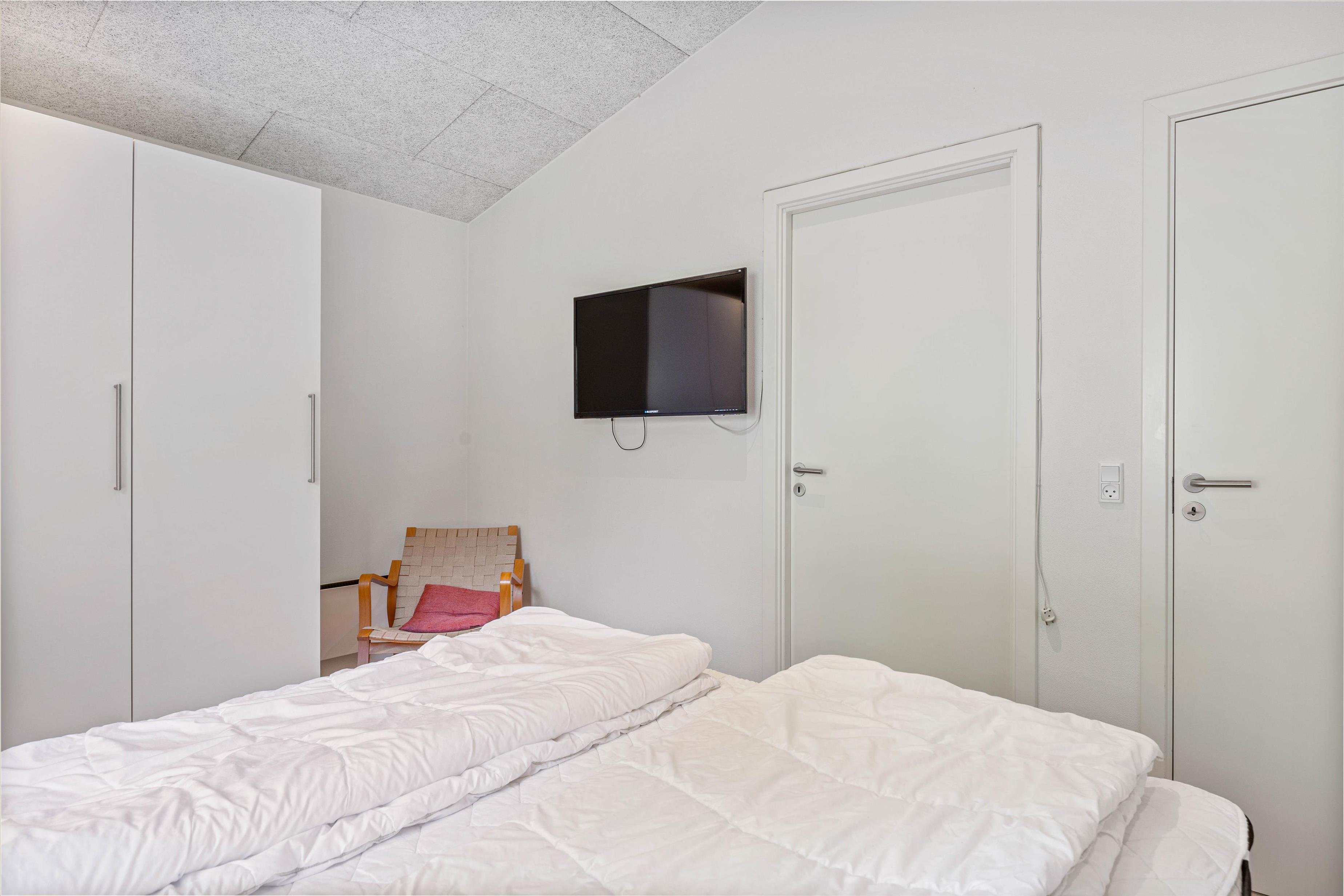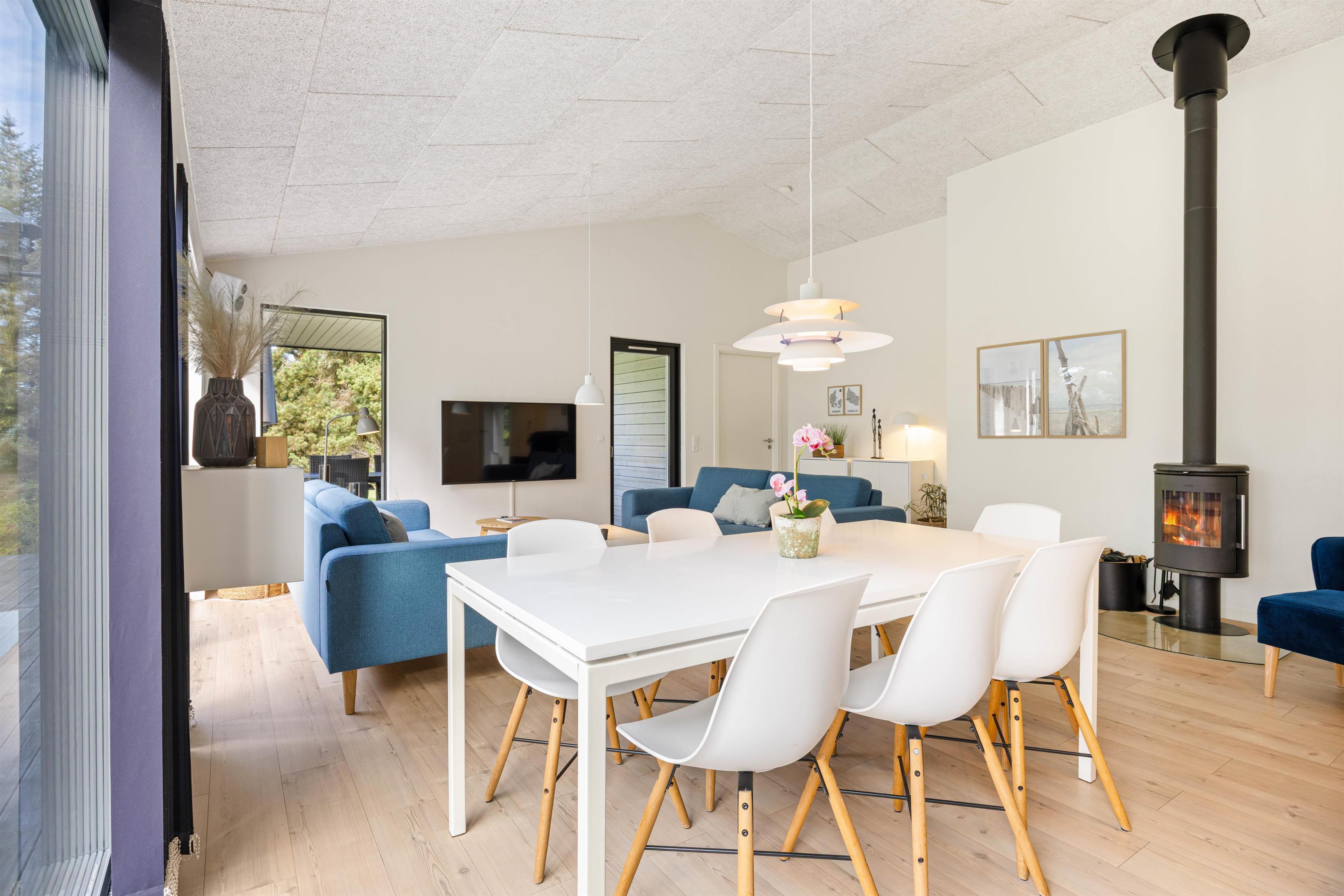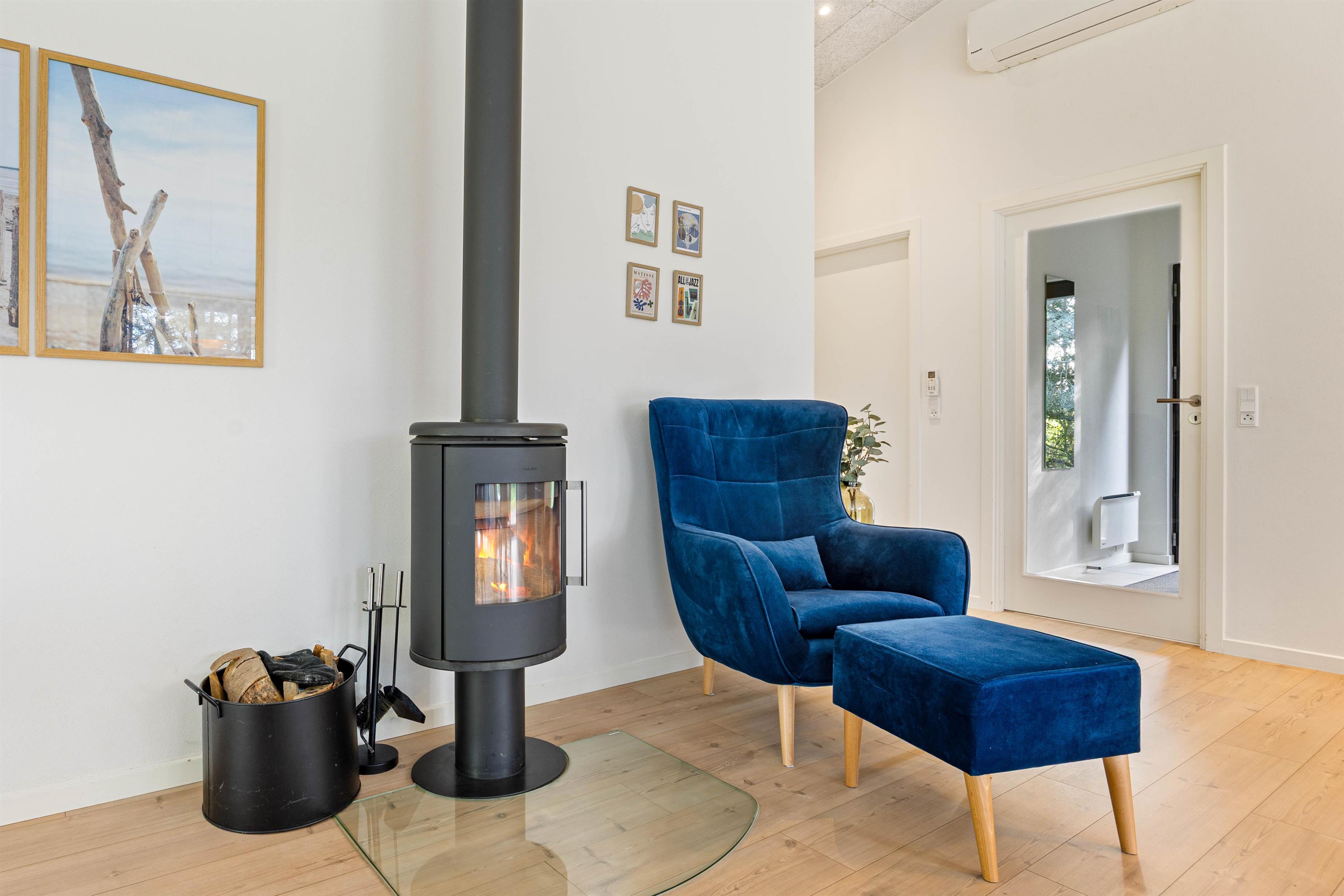 Sommerhusets master bedroom har eget badeværelse med udgang ud til udendørs sauna, hvor I, som par, rigtig kan nyde tiden med hinanden. Eller hvad med et godt glas rødvin ved den knitrende brændeovn, mens børnene snorker om kap i soveværelset?