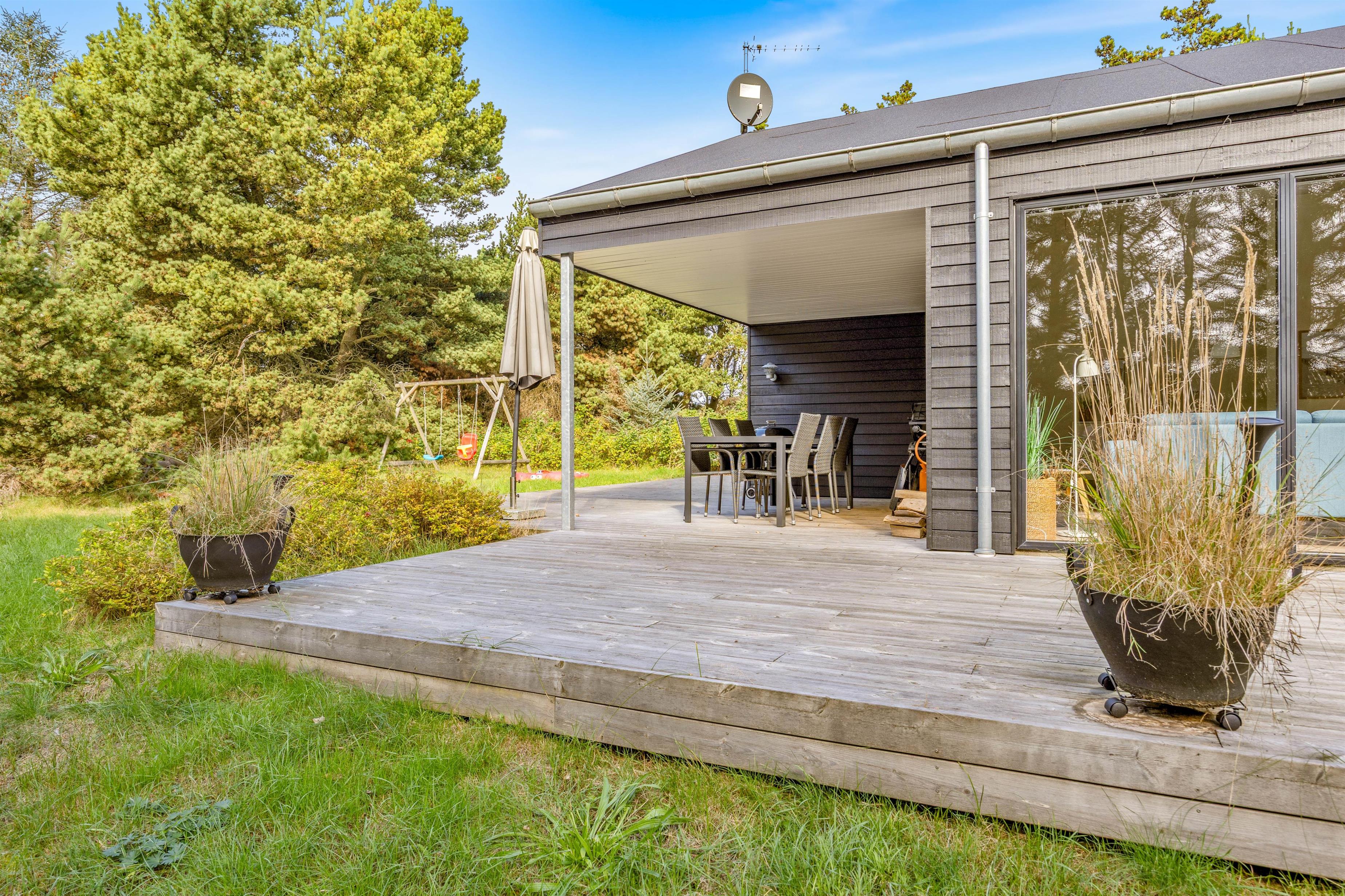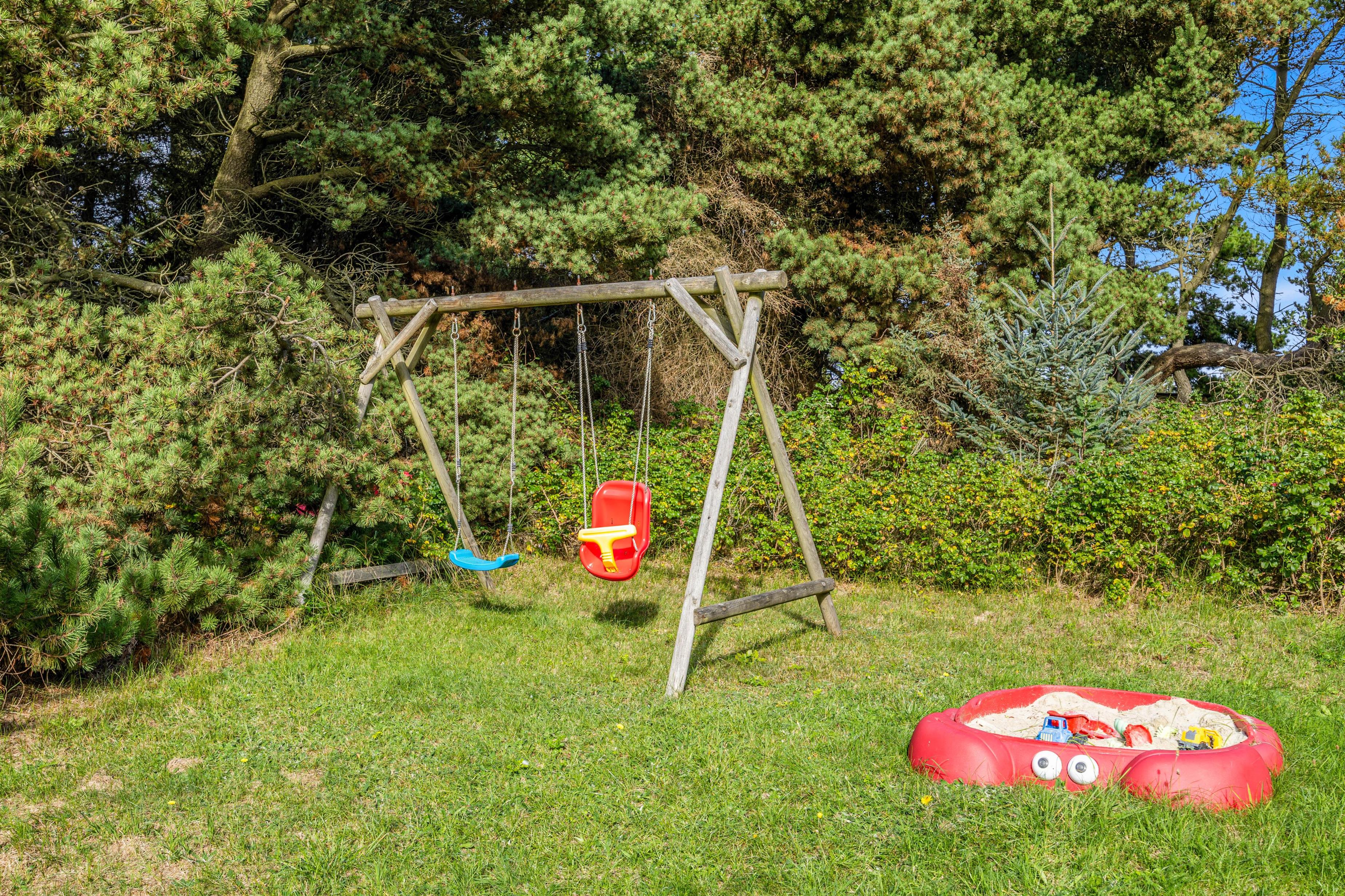 Skulle børnene miste interessen for madlavningen, er der både gynge og sandkasse hvor de kan boltre sig, mens du stadig kan have et øje på dem både fra køkkenet og stuen.