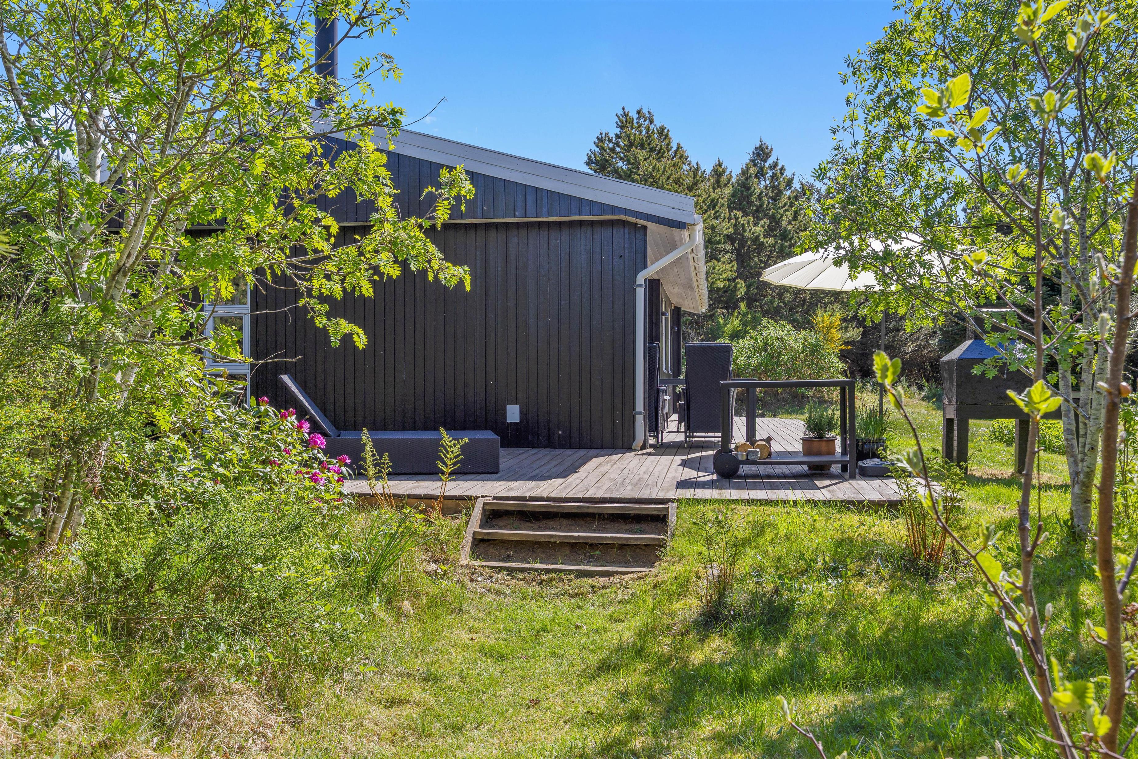 Sommerhuset er udstyret med en dejlig stor terrasse, hvorfra I kan nyde jeres sommerferie i stor stil. Her er det oplagt at spendere jeres fridage med hyggelige grillaftener, solbadning i liggestolene eller kortspil ved havebordet. Terrassen er delvist overdækket, så regnvejret ikke kan spolere jeres hyggelige stunder.