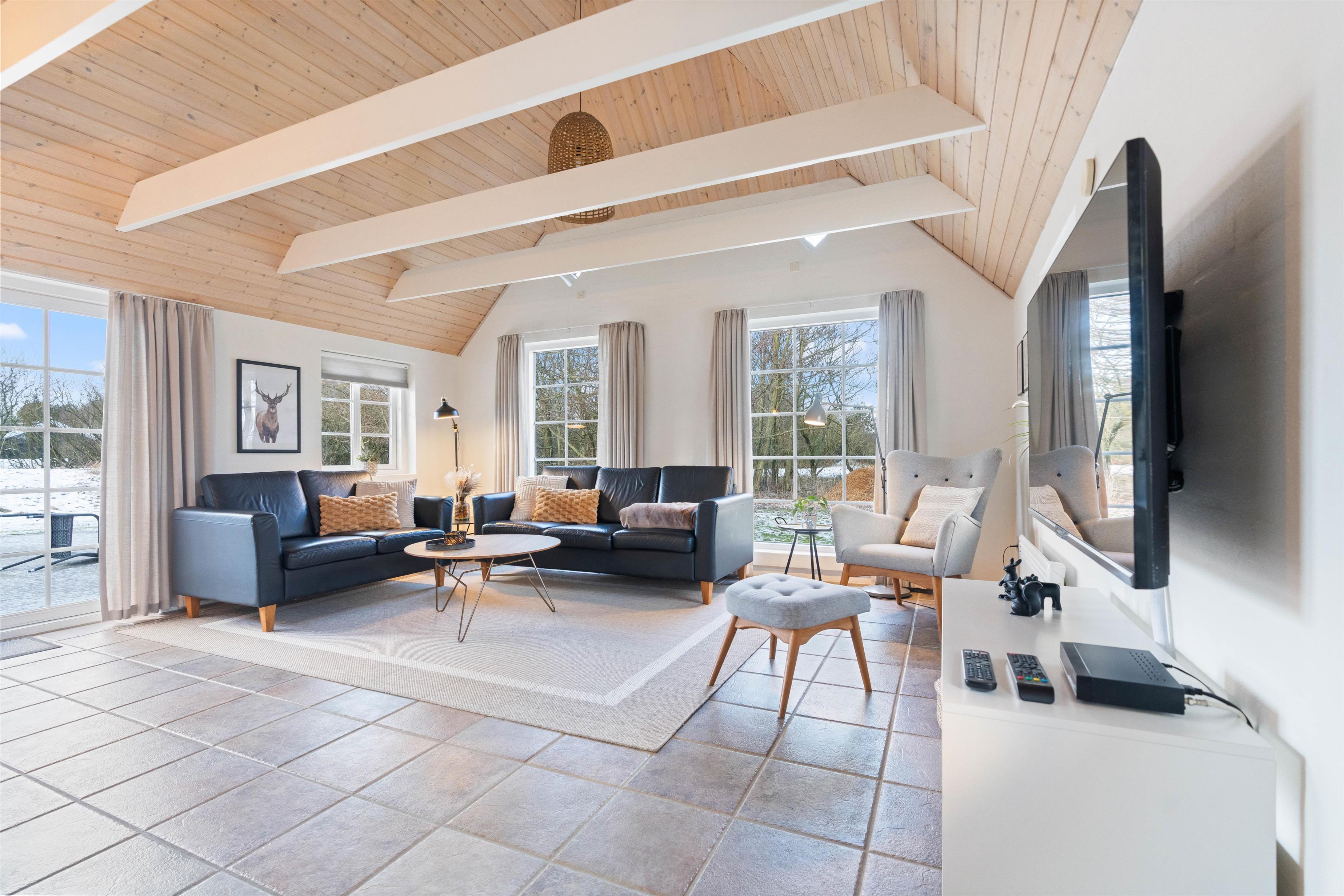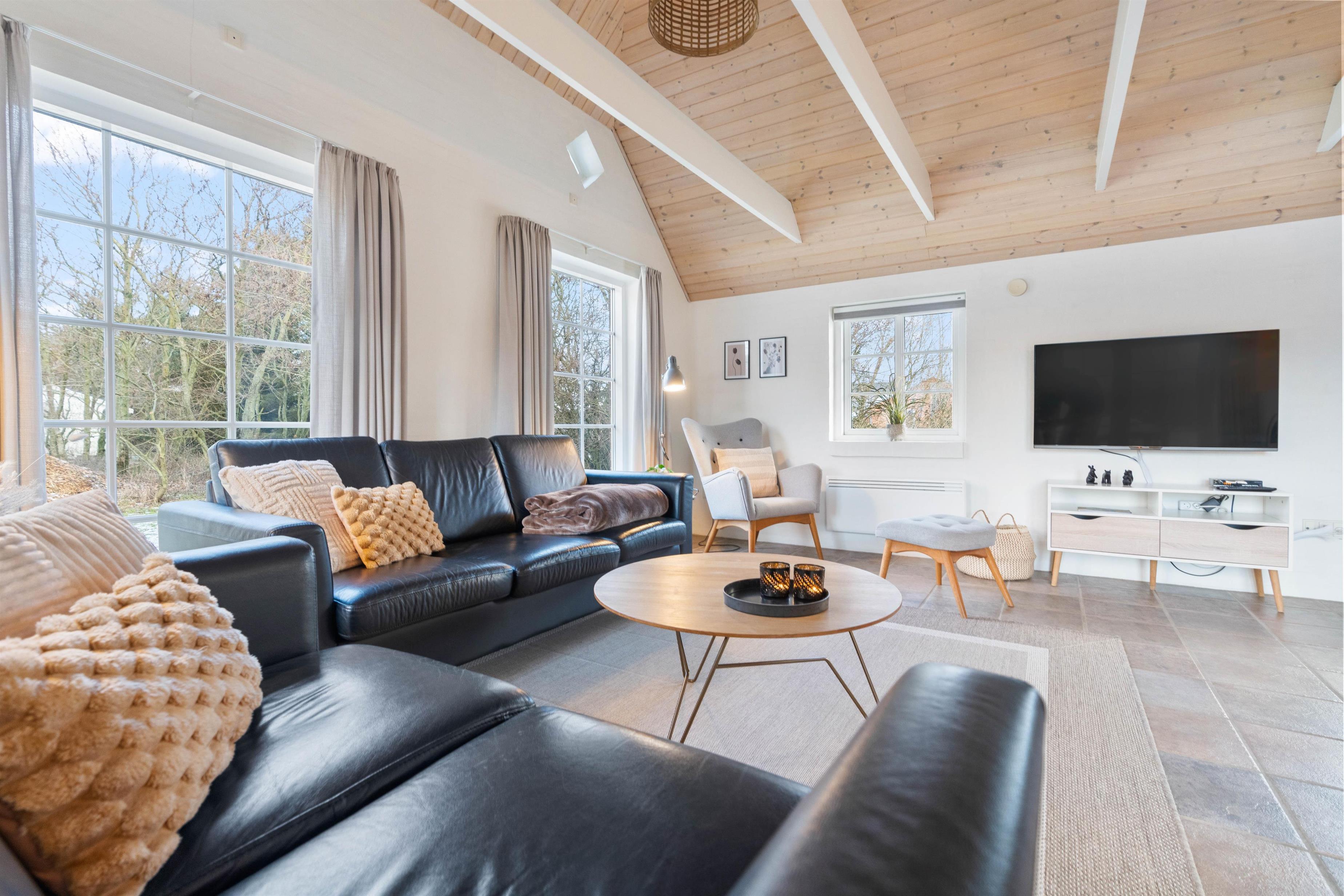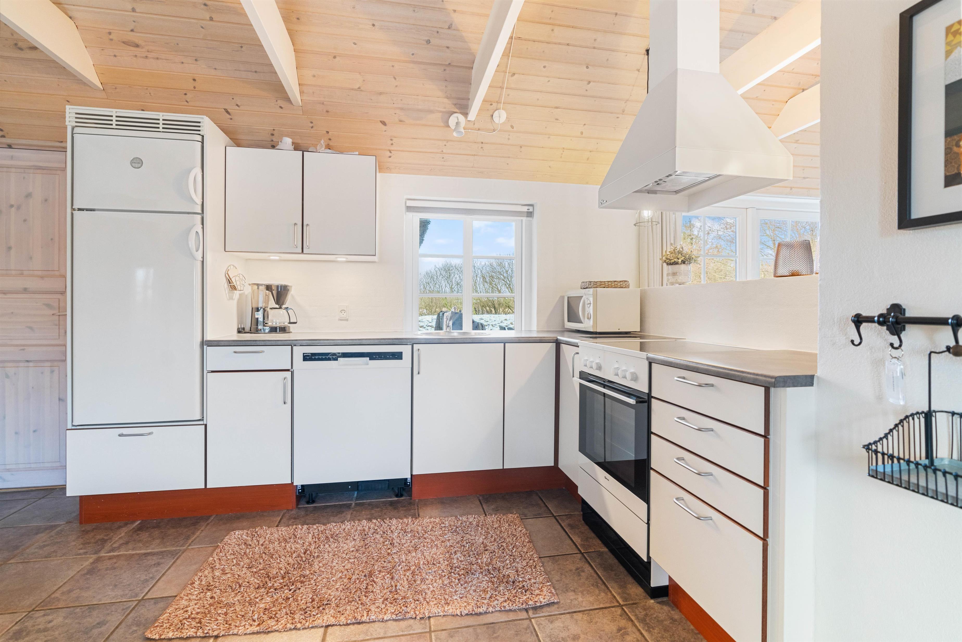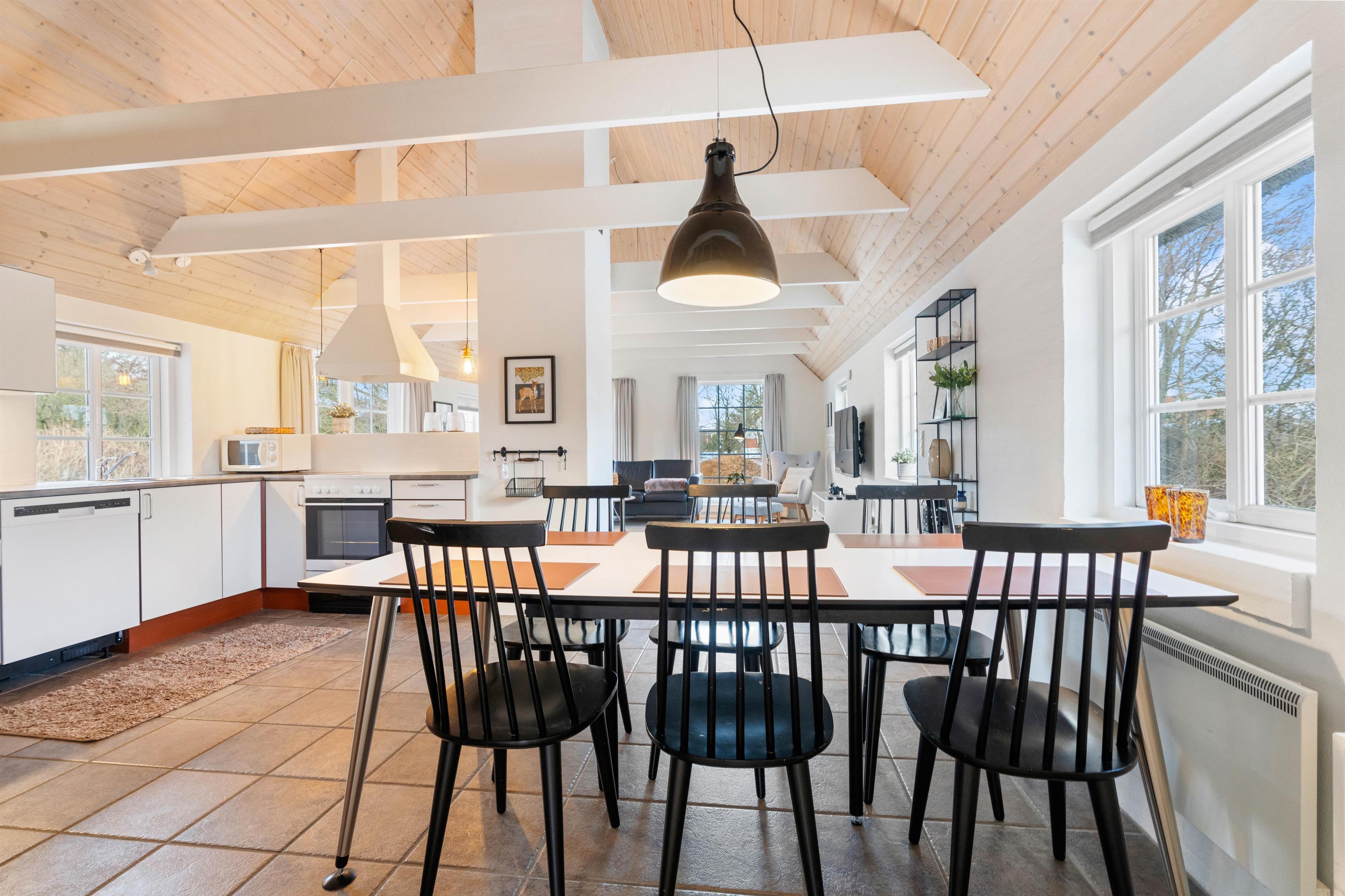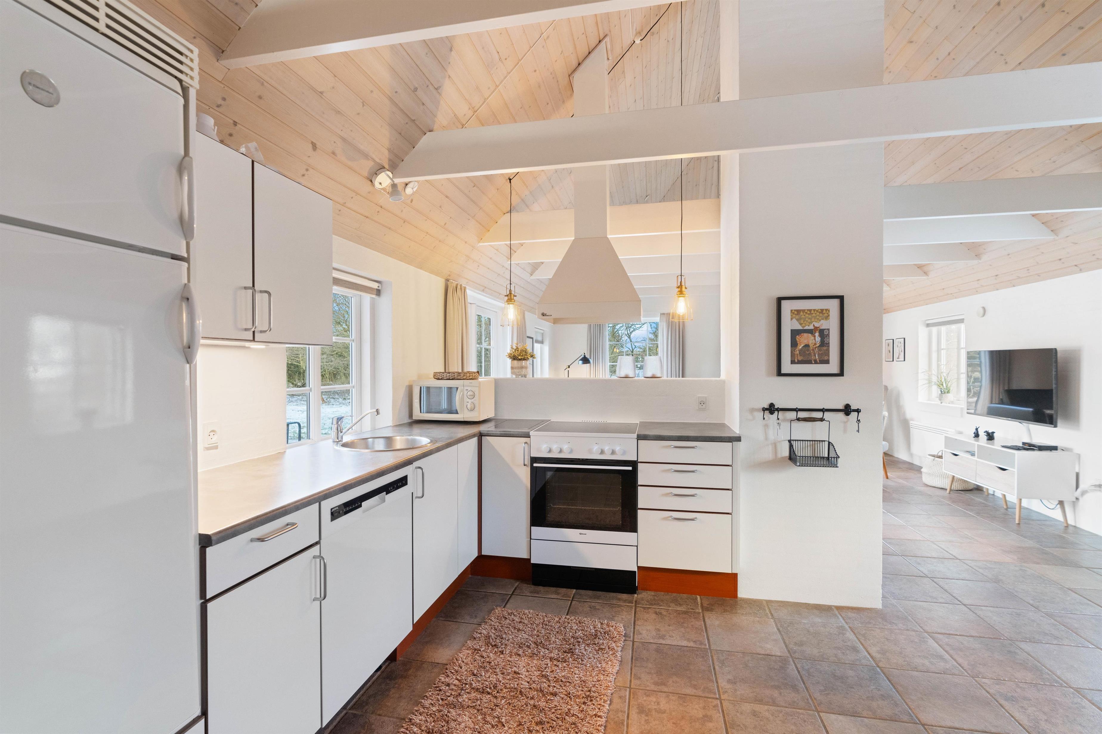 Løvsangervej 13 byder jer velkommen til en stor, dejlig opholdsstue som er i direkte åben forbindelse med køkkenet. Interiøret er stilrent og indretningen er lys og venlig. Køkkenet er fuldt udstyret med alt det nødvendige køkkenudstyr. Opvaskemaskinen klarer hurtigt opvasken på ferien, og der er god plads til at samles samt nyde et glas vin, imens børnene slapper af og lader op i sofaen med en iPad, så længe maden simrer.