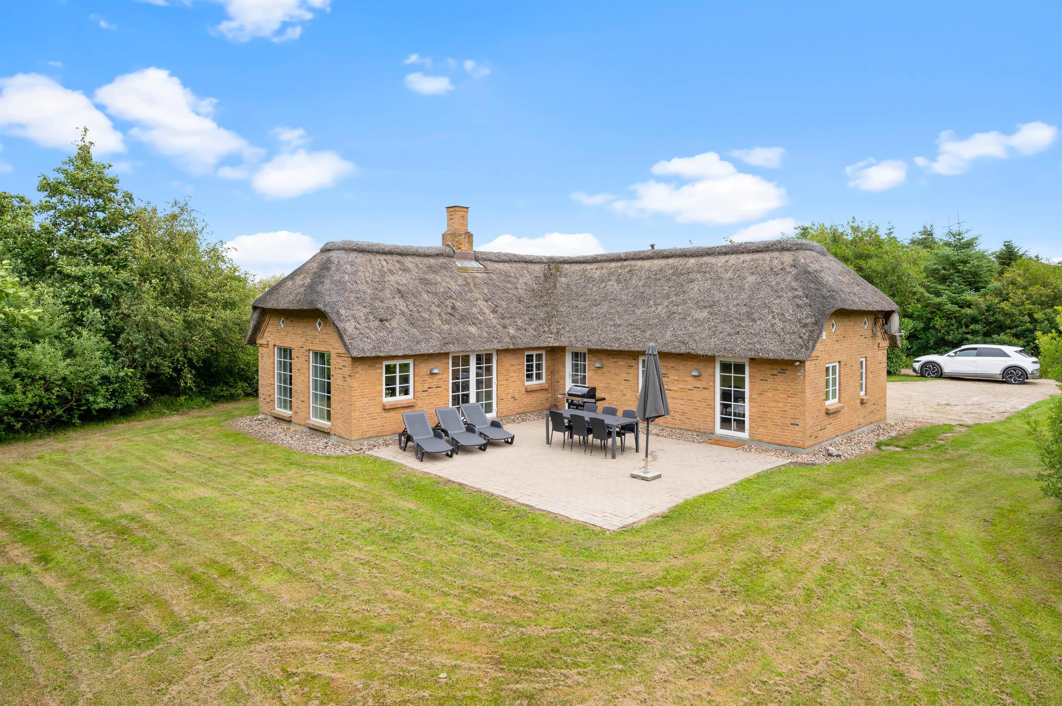På Løvsangervej 13 ligger dette fine stråtækte stenhus på en stor naturgrund. Ferieboligen er rummelig og lyst indrettet og har en størrelse på 108 m2, så der er god plads til 6 personer. Her er også både sauna og spa til at give en fornemmelse af wellness på ferien. Beliggenheden er i gåafstand fra Vesterhavet, hvor I kan nyde lange gåture på stranden, mens I lytter til bølgernes brusen.