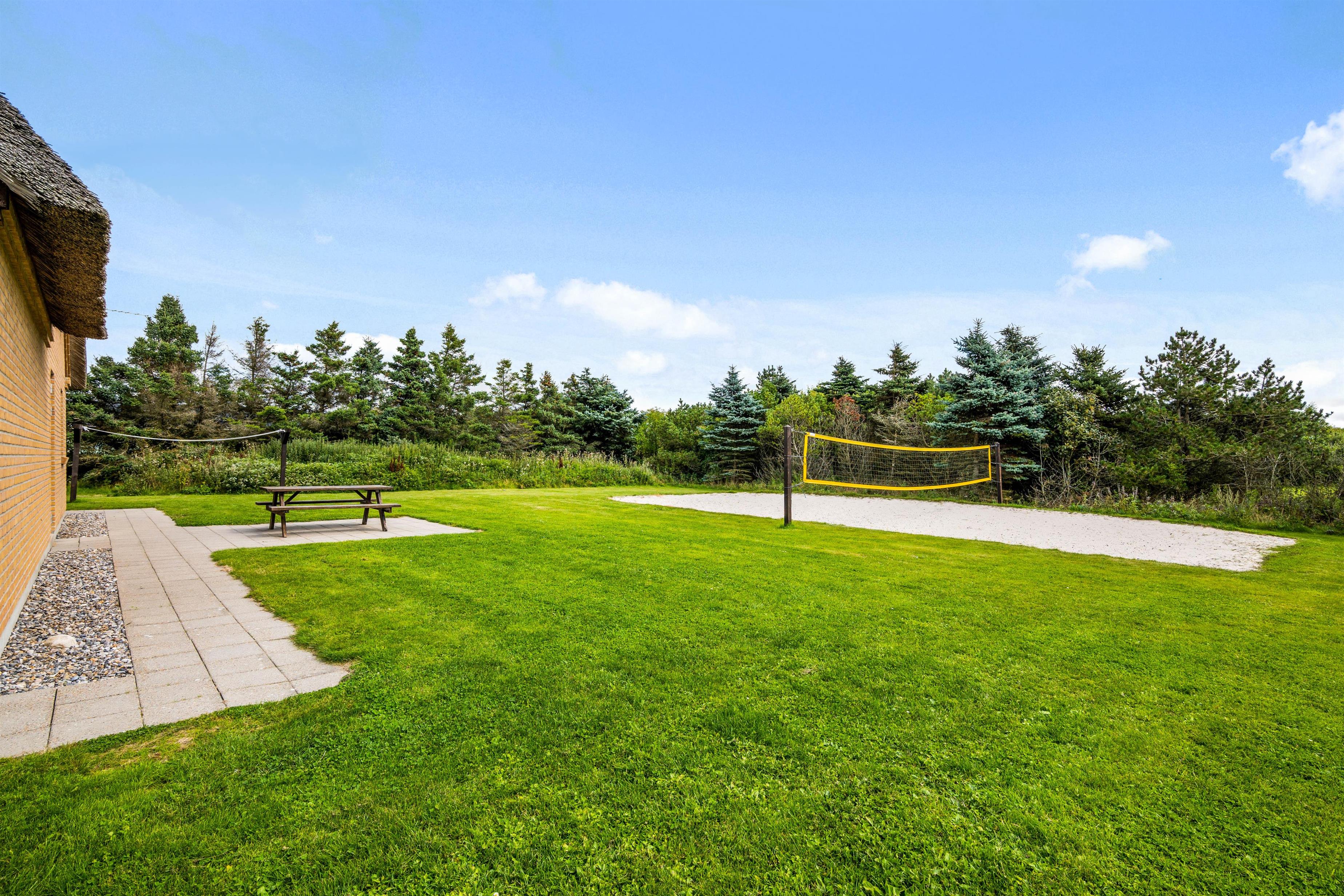 Gode terrasser på en dejlig, stor plænegrund med egen volleybane