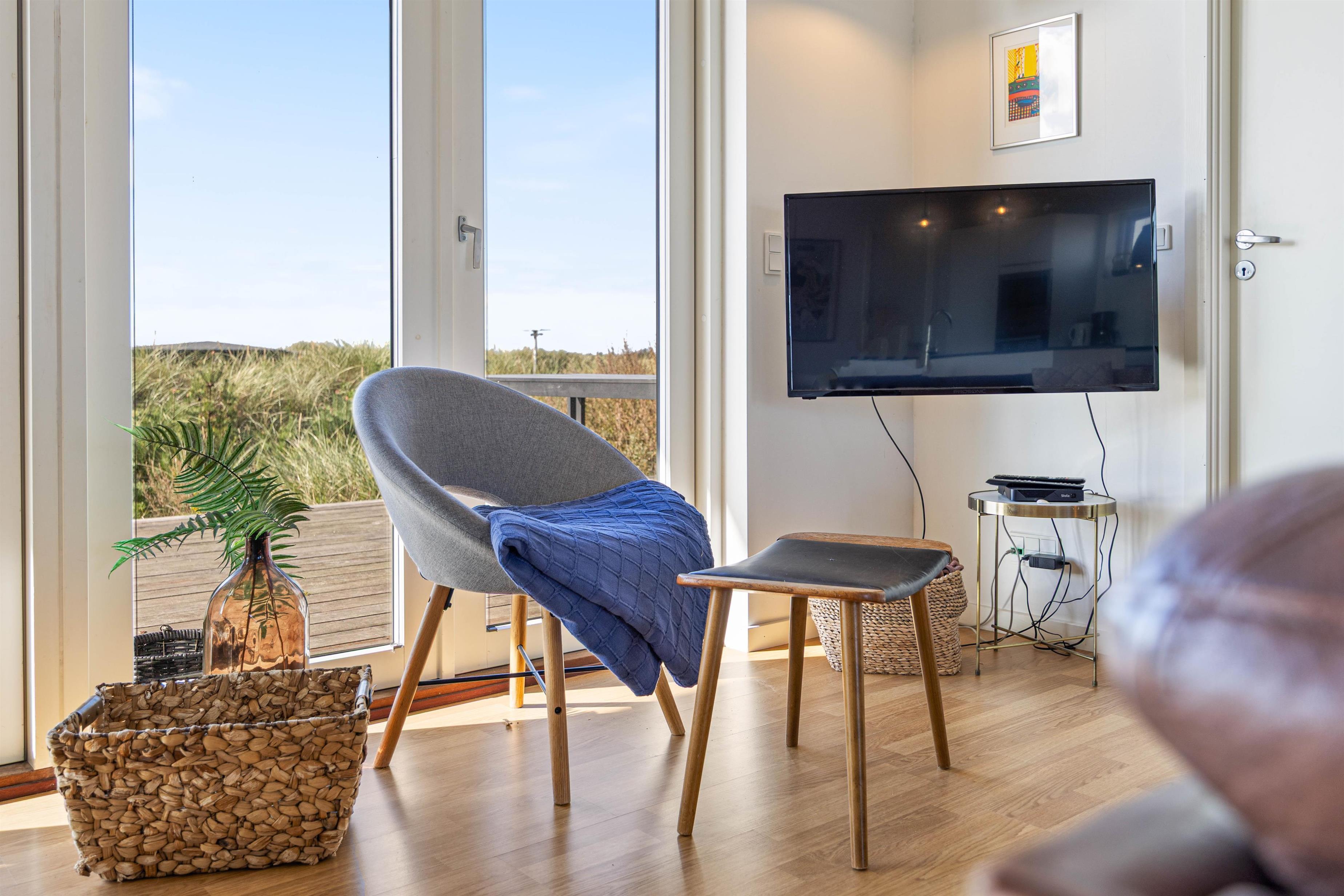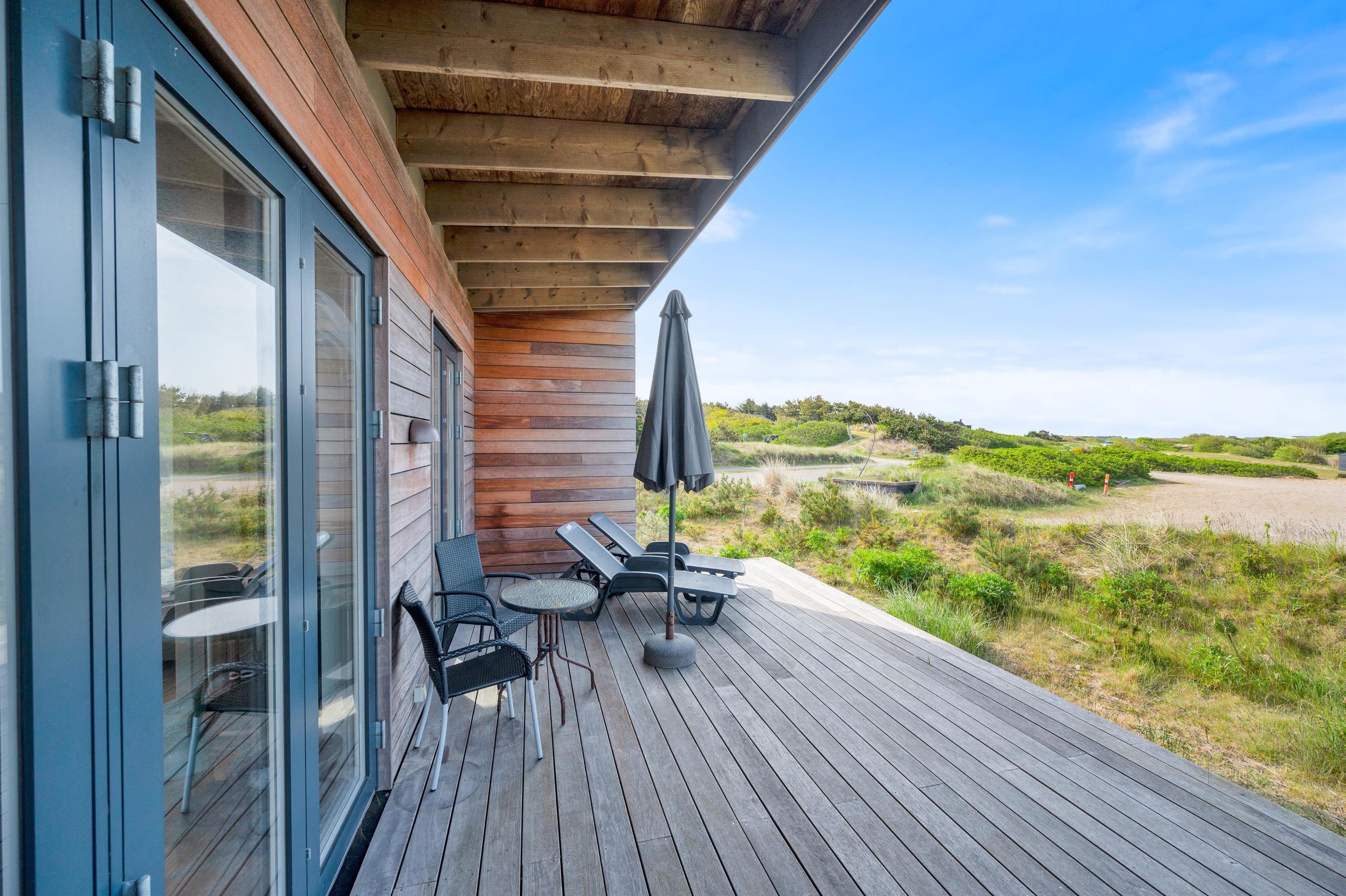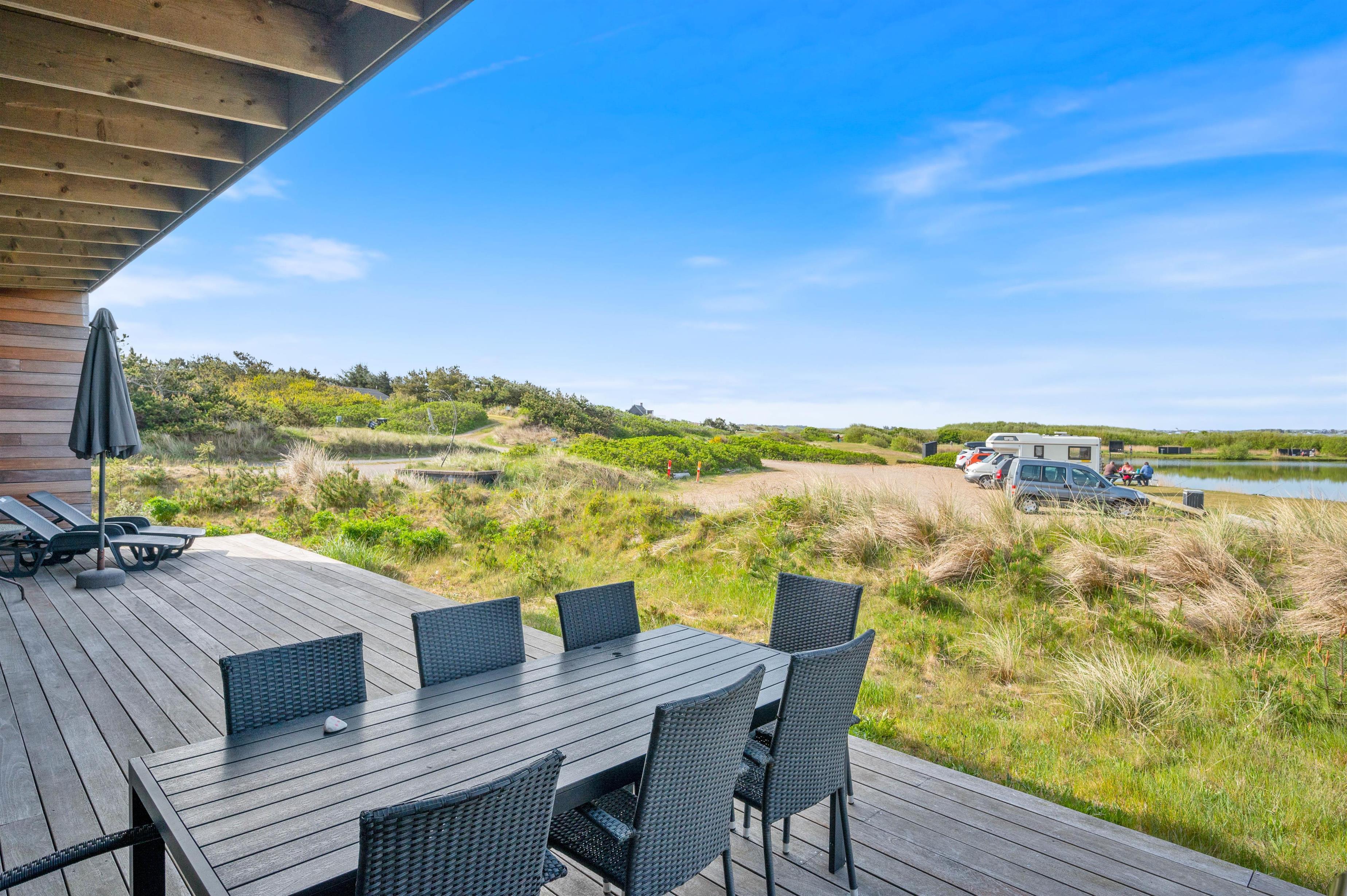Med udsigt til klitterne og åbent område med stor fiskesø, kan I nyde ferien i dette skønne, i 2018 byggede feriehus. Huset ligger tæt på både golfbane og Vesterhav. Her er alle muligheder for hele familien, inkl. hund, for både aktivitet og for en afslappende ferie med spa og sauna. Rejser I med elbil, har I mulighed for at lade direkte ved sommerhuset. I skal blot huske at medbringe eget ladekabel.