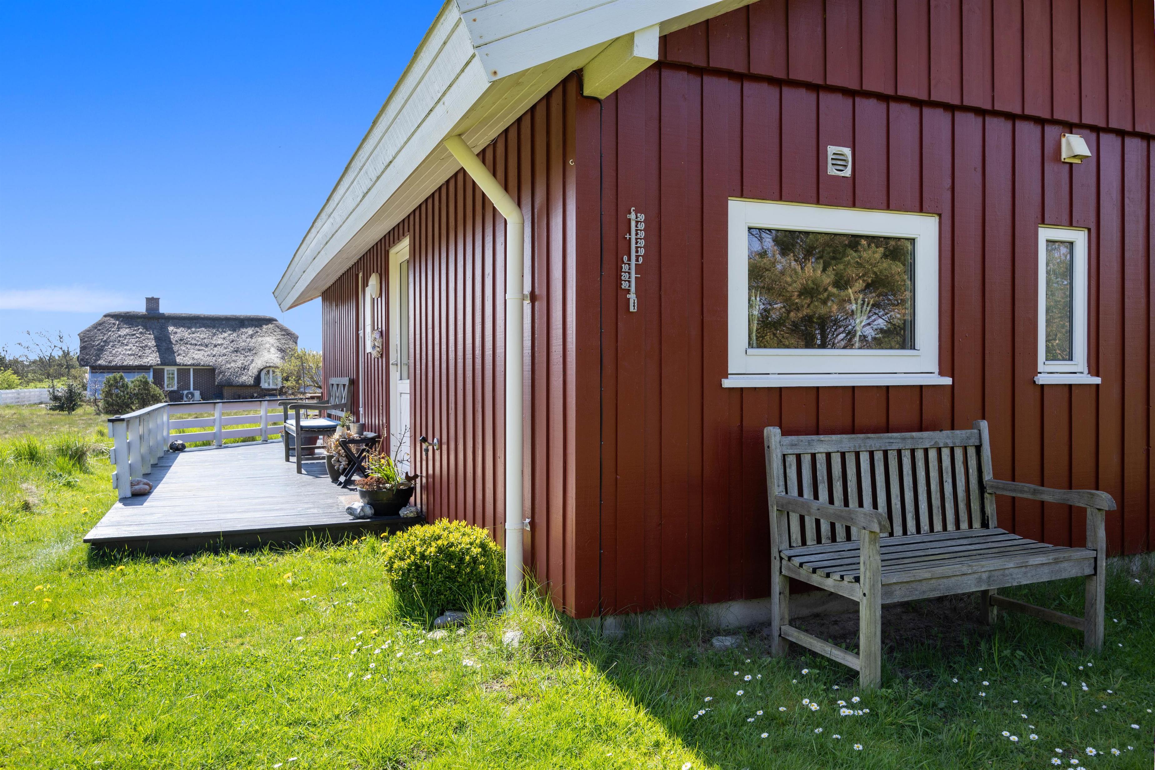 Når I træder udenfor sommerhuset, bliver I mødt af et skønt terrasse- og udeområde. Her er der rig mulighed for jeres firbenede ven at brænde krudt af på den tilhørende grund. Samtidig med dette kan I ved hjælp fra feriehusets grill tilberede et lækkert aftensmåltid og slappe af i sommerhusets havemøbler.