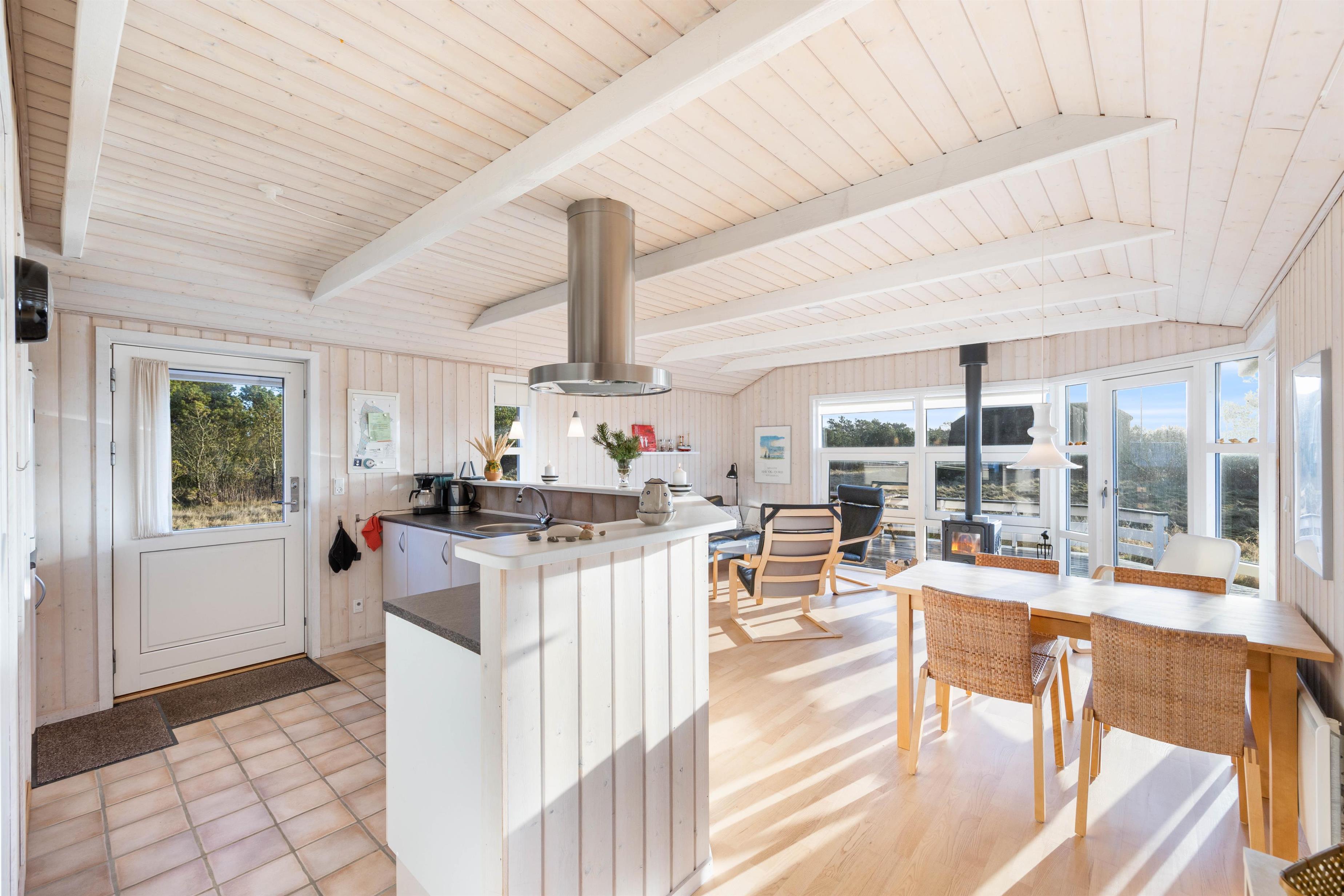 Fra første øjeblik, når I træder ind i det hyggelige feriehus på Lodberg Hede, vil I med garanti føle jer godt tilpas. Fra indgangen, kommer I direkte ind i det fine køkken, der ligger i forlængelse af stue og spiseplads. Her har I virkelig mulighed for at være sammen og slappe af. Imens nogle står for madlavningen, kan andre tage et spil eller nyde en god film på feriehusets fladskærm med de knitrende lyde fra brændeovnen i baggrunden.