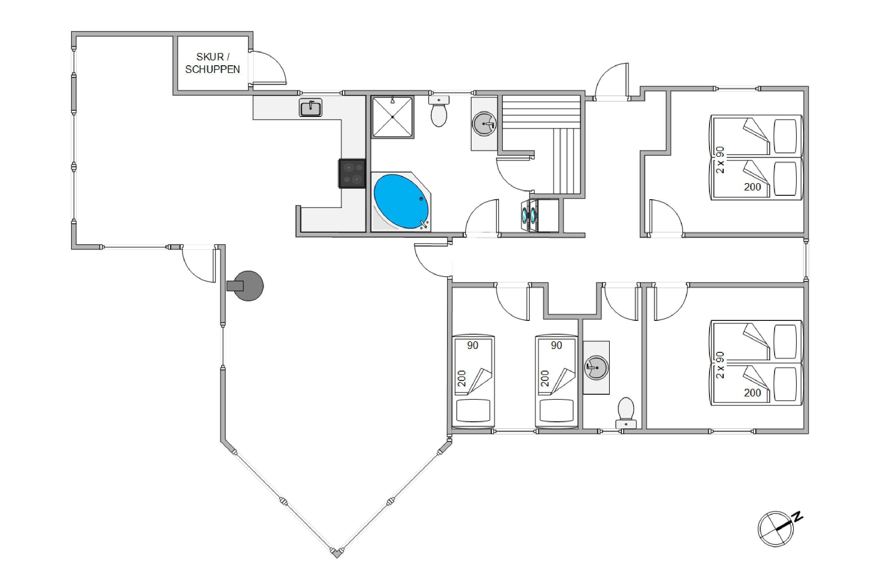 Sommerhuset er fra 2012 og alt i indretningen fremstår både lyst og indbydende. Møblerne i huset er behagelige, og derudover rummer sommerhuset alle de moderne faciliteter, man forventer af et godt sommerhus. Her er virkelig tænkt på gæsternes velbehag, og I kan blandt andet finde et spabad, sauna, opvaskemaskine og tørretumbler. Alle disse bidrager til, at I kan få en afslappende og bekvemmelig ferie, hvor I kan få ladet jeres batterier op.