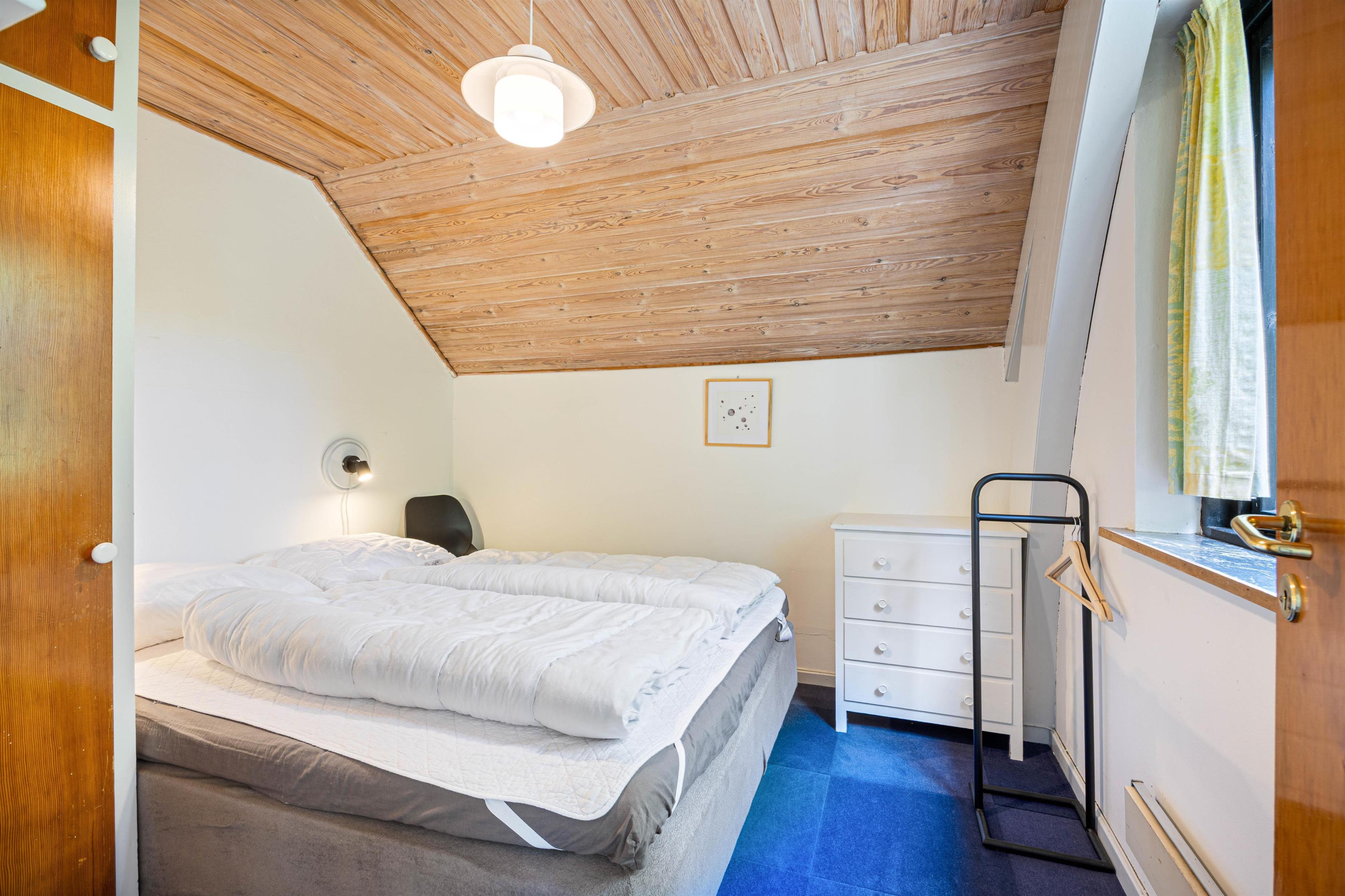 Sommerhuset på Hybenvej 64 er indrettet i 2 plan. På førstesalen finder I et soveværelse, der er indrettet med en dobbeltseng, og hvorfra I kan nyde et kig ud til den omkringliggende natur. De resterende 2 soveværelser, der i alt er indrettet med 1 dobbeltseng, 1 enkeltseng og 1 etageseng, finder I i sommerhusets stueplan. Her finder I også badeværelset, der er udstyret med gulvvarme.
