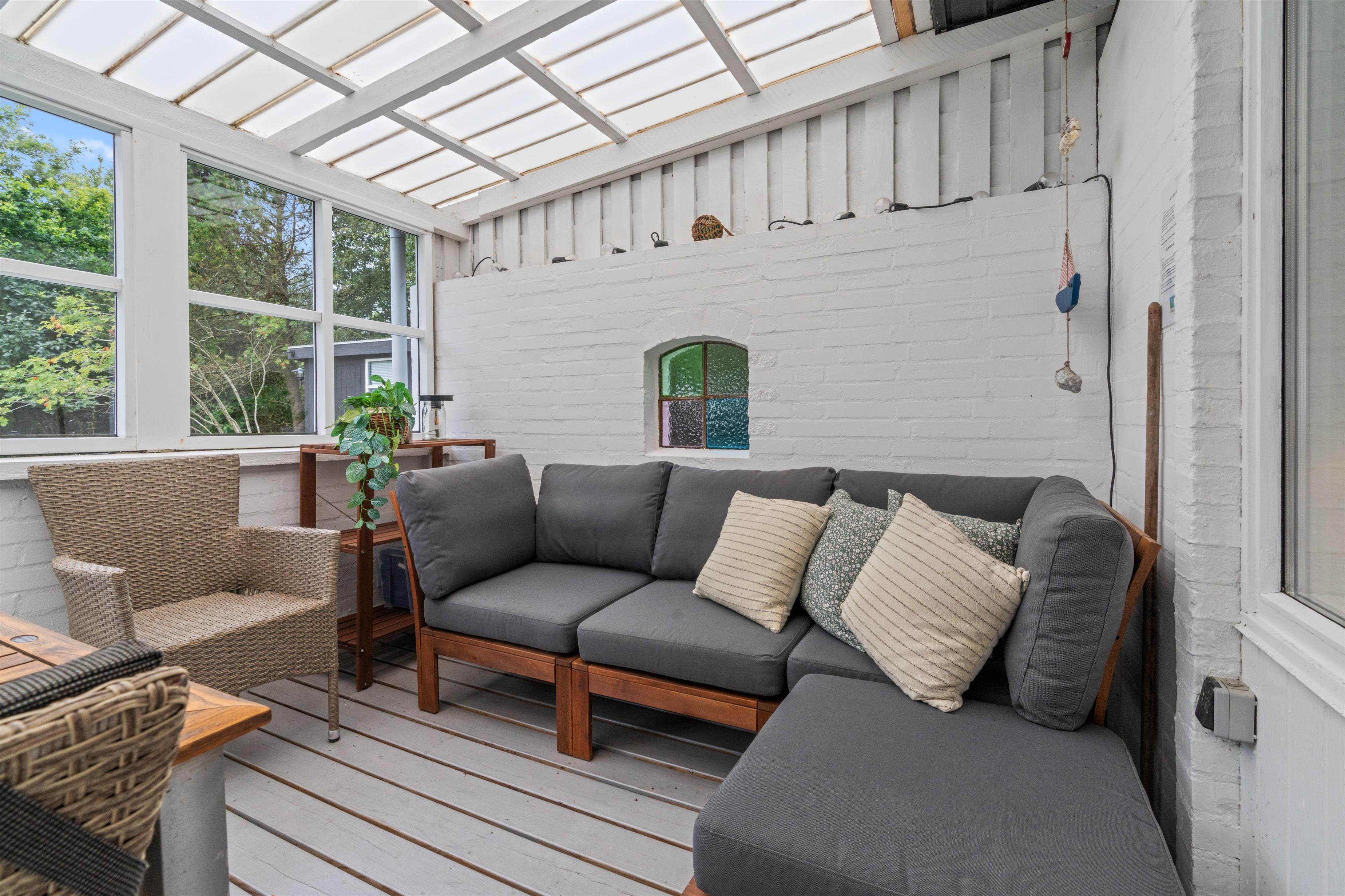 På Gransagervej 32 er der en 2300 m2 stor, smukt anlagt græsplæne som i den grad indbyder til at jeres børn og jeres hund kan lege og boltre sig. Uanset om I spiller fodbold eller badminton, er sjov garanteret her. Terrasseområdet er også skønt anlagt og lader intet tilbage at ønske. Takket være overdækningen og den meget gode vindbeskyttelse står intet i vejen for lange, hyggelige aftener.