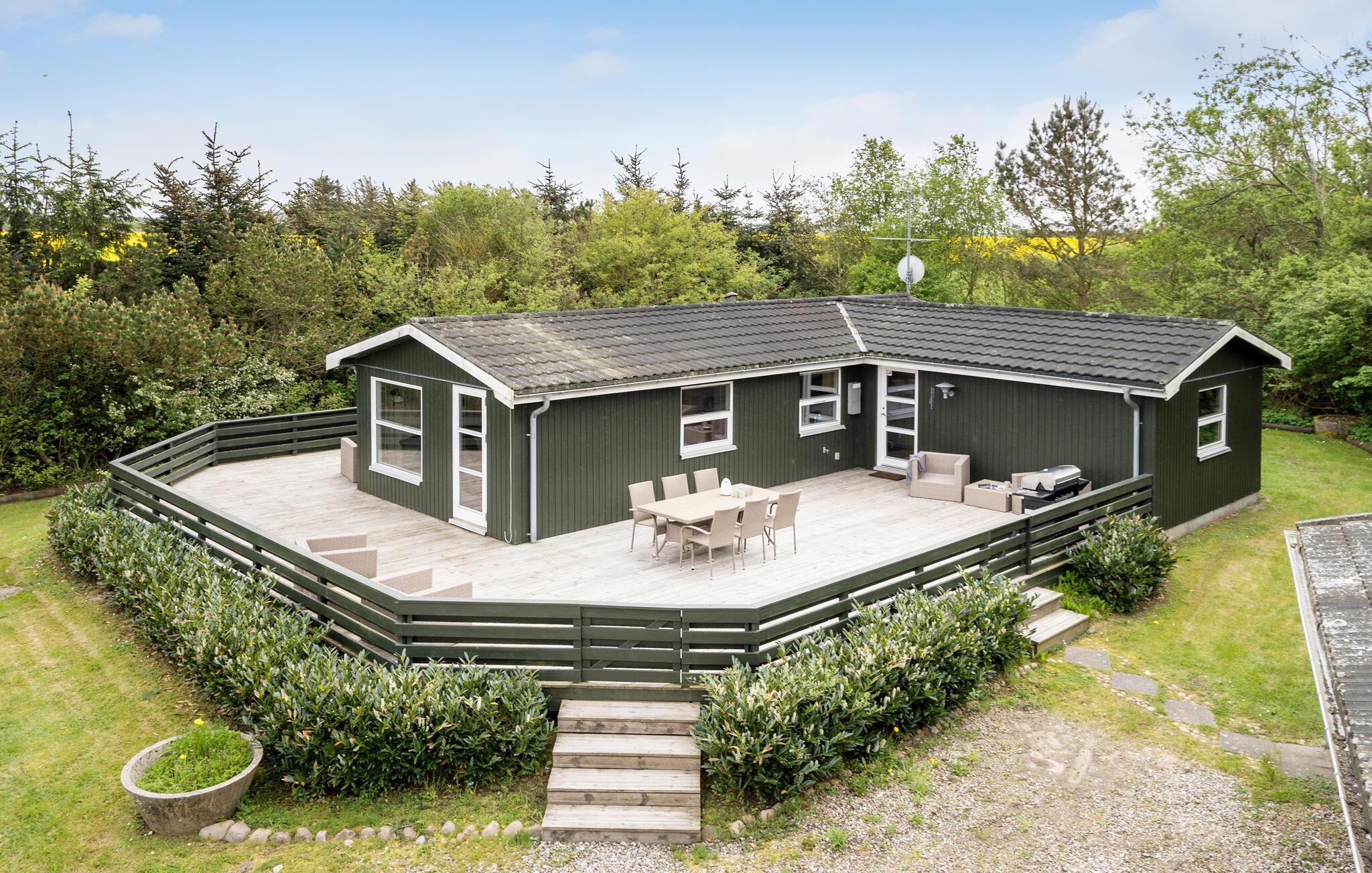 Hyggeligt træhus med stor terrasse i Vestjylland