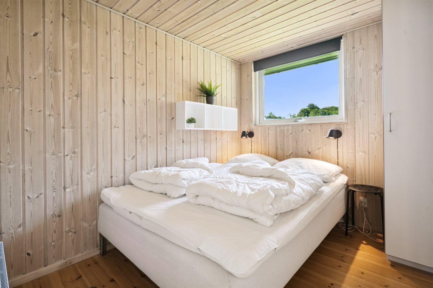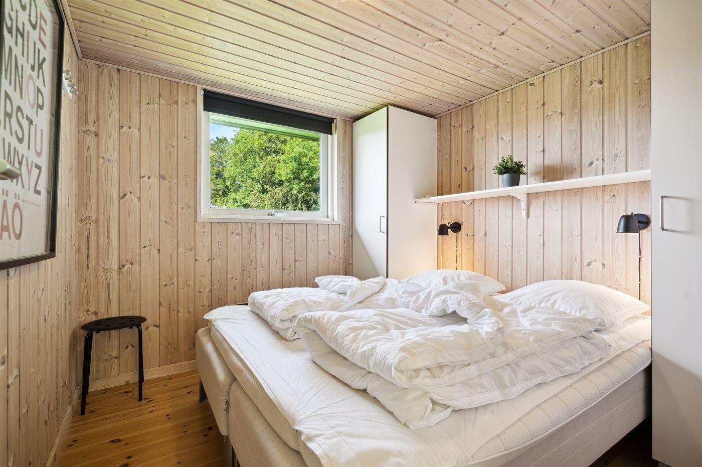 Der er i alt 4 soveværelser. Sovepladserne fordeler sig på: 8 sovepladser i dobbeltsenge. 2 sovepladser på madrasser. 2 af disse sovepladser befinder sig på husets hems. Derudover er der 1 stk. barneseng.