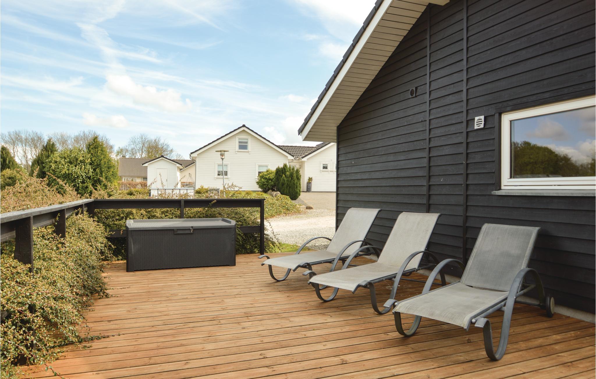 Moderne feriehus i træ ved Aabenraa med stor terrasse og tæt på børnevenlig strand.