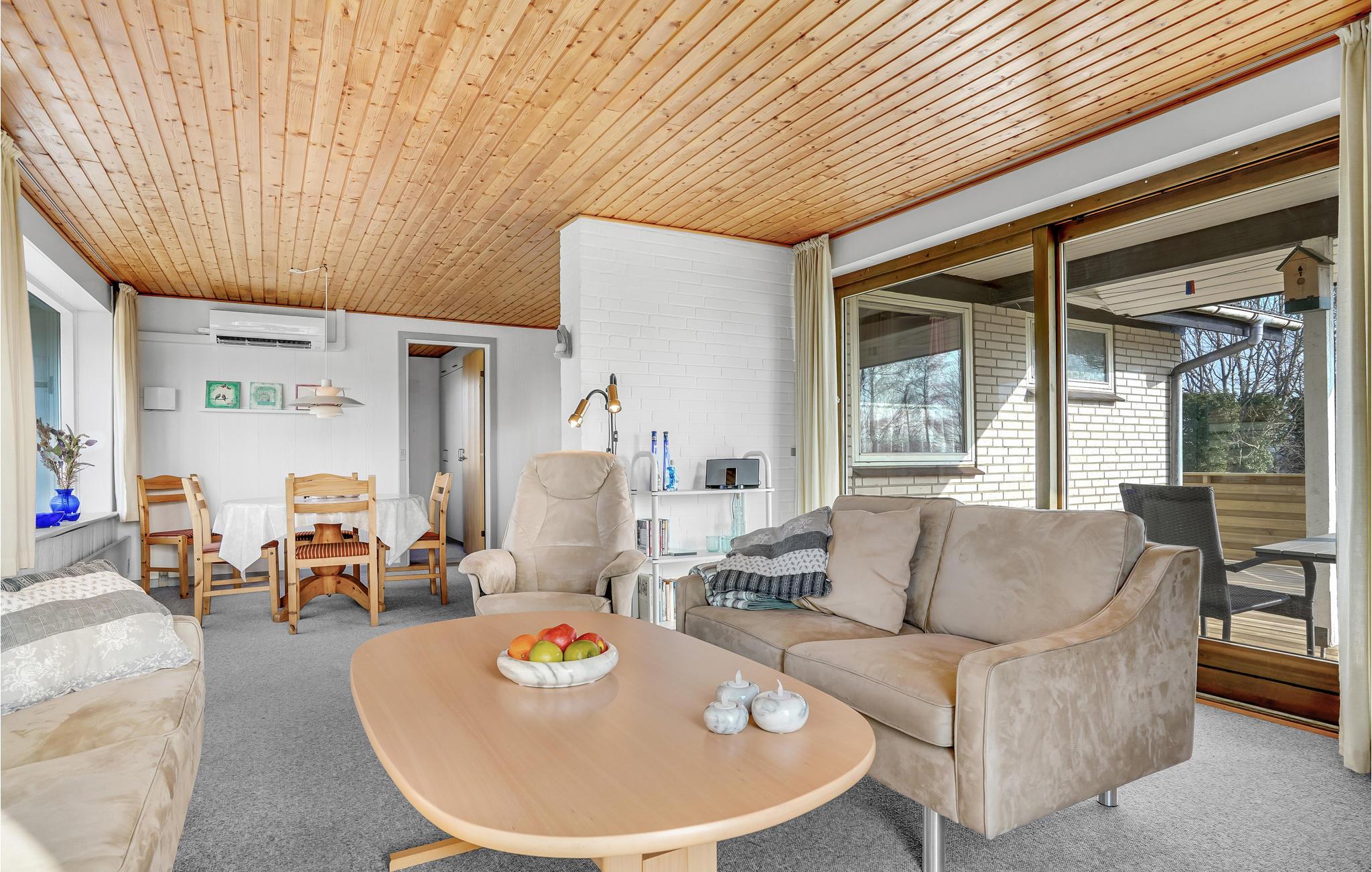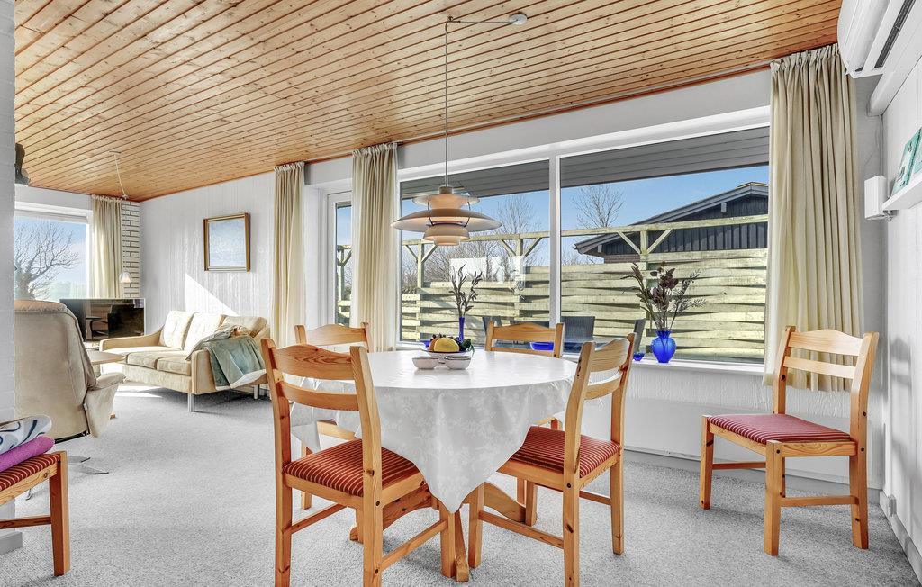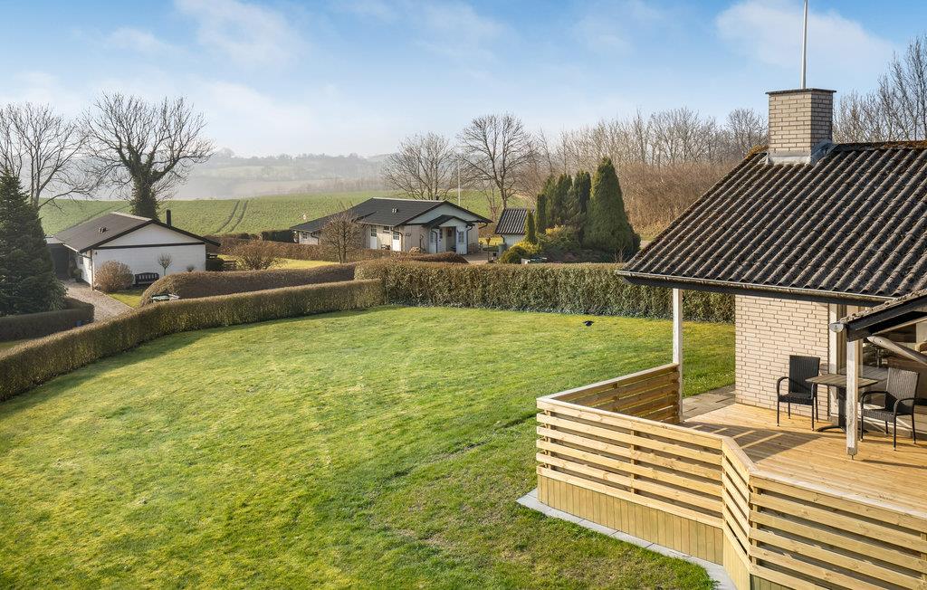 Huset indbyder til en skøn ferie tæt på de danske Østersøstrande. Åbn døren, træd ud i solskinsvejret på den store og delvist overdækkede terrasse og nyd den smukke udsigt over landskabet. Det lille bord er et ideelt sted at drikke morgenkaffen.