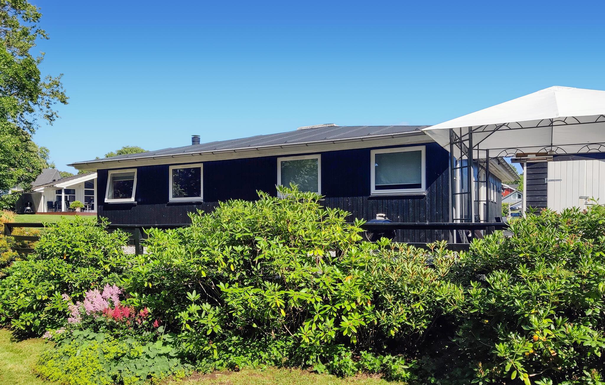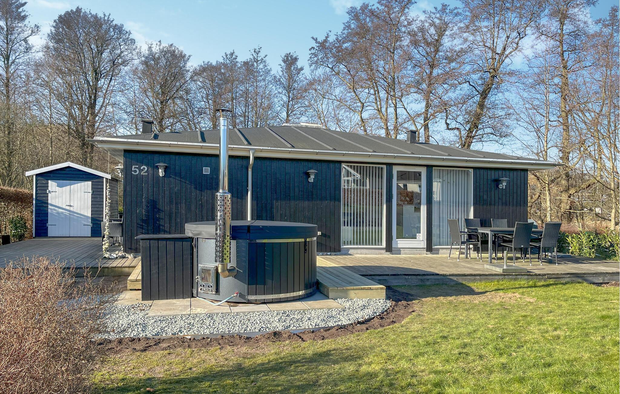 Velkommen til et moderne og veludnyttet sommerhus, lyst og moderne indrettet med kvalitetsmøbler. Her er b.la. to gæstetoiletter, badeværelse og fire soveværelser. Det store vinduesparti i stuen og loft til kip sørger for den helt rette stemning. Spabadet og saunaen sørger for dejlig wellness under ferien, og på de store terrasser rundt om huset, kan I følge solen hele dagen, det er altid muligt at finde læ og nyde vejret. Stranden er meget børnevenlig og ligger tæt på huset. Huset har TV med danske, tyske og nordiske kanaler samt gratis internet.