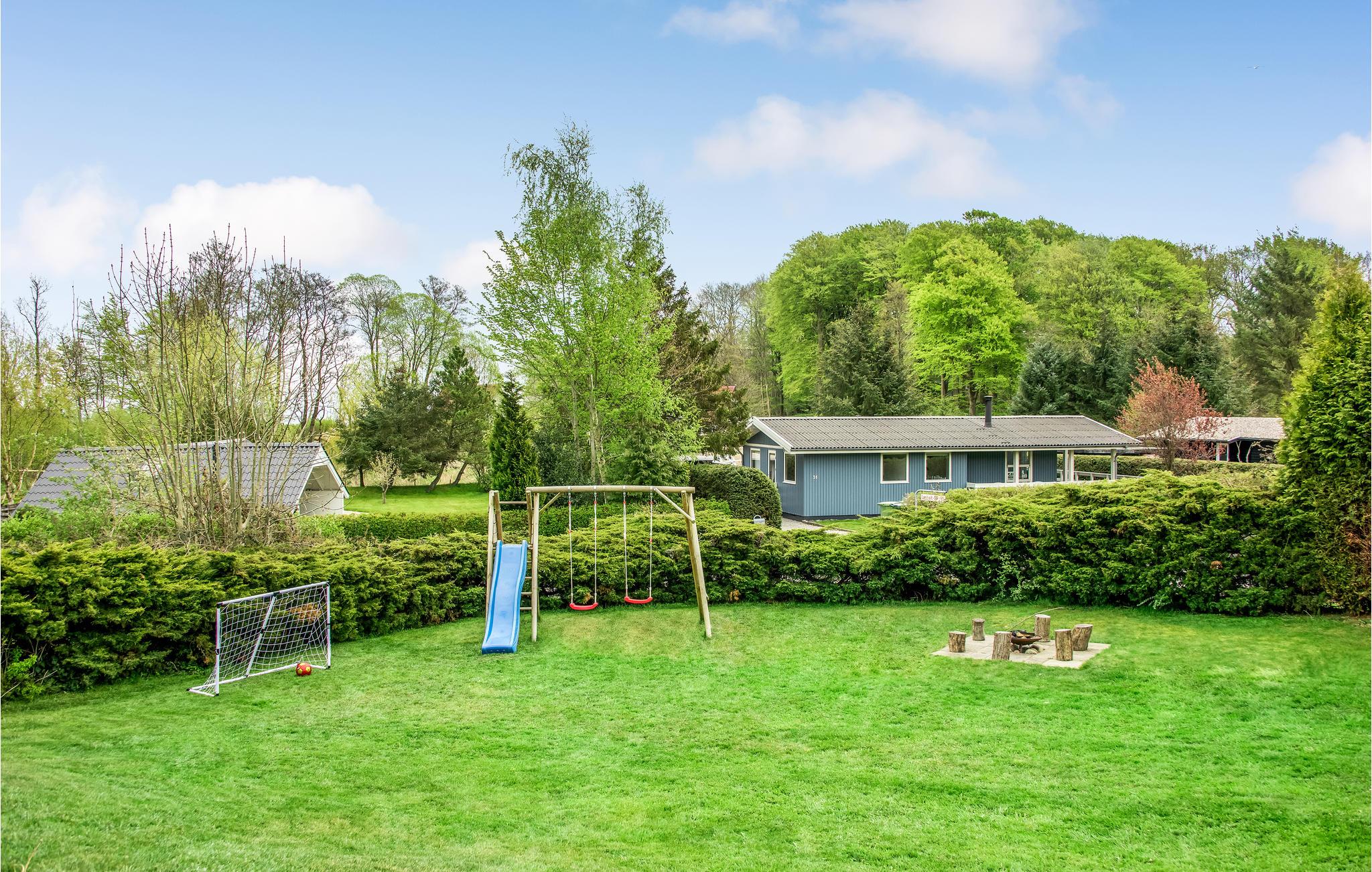 Hyggeligt sommerhus tæt på strand med stor have, bålplads og legeplads for børn.