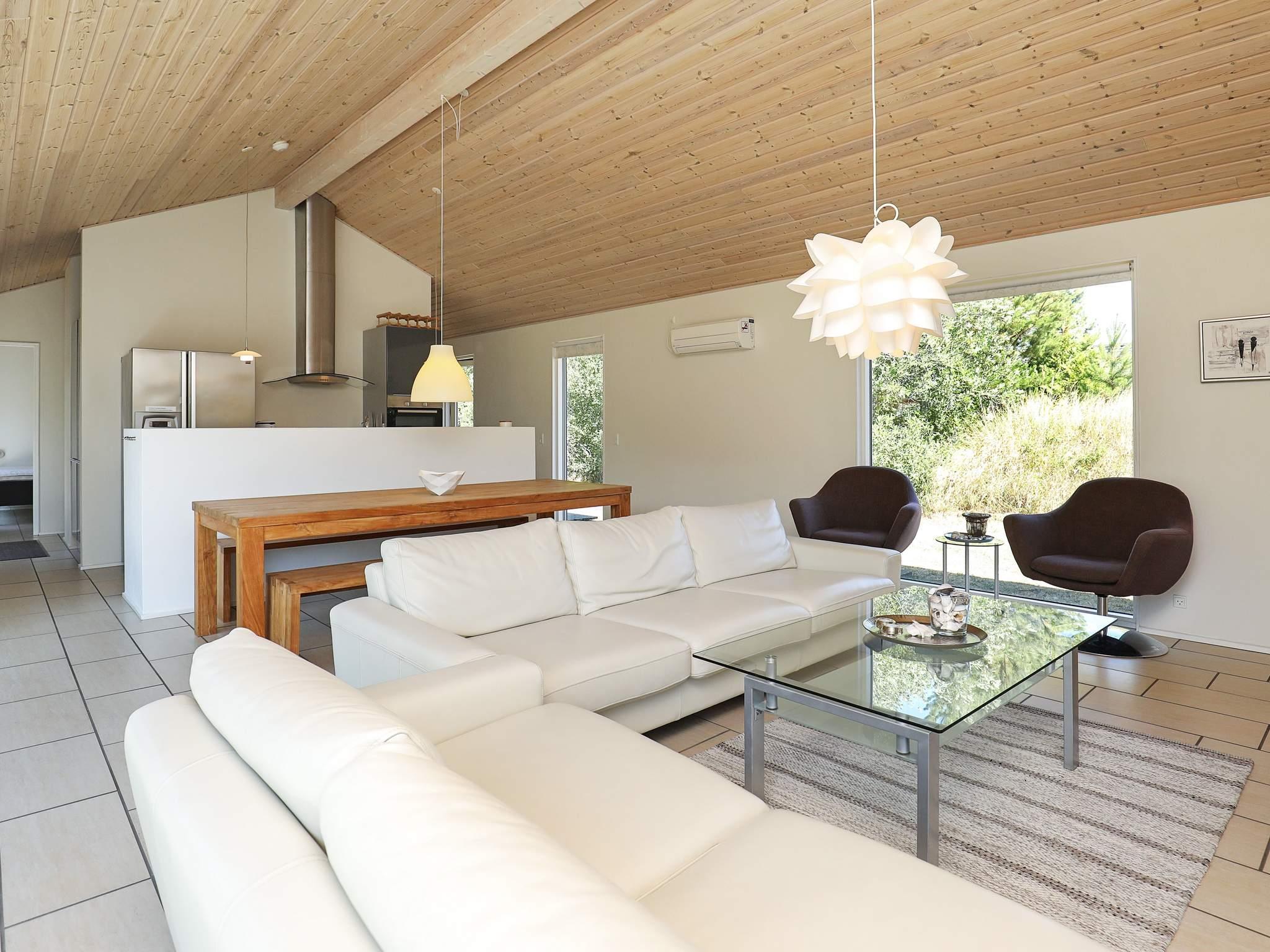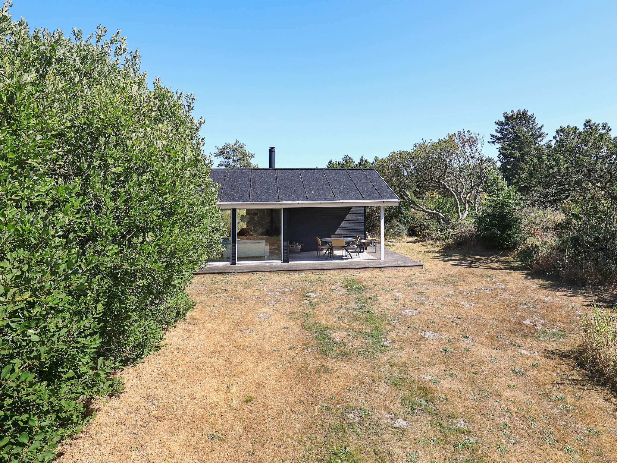 Sommerhus beliggende for enden af blind vej i et roligt område med kort afstand til den populære golfbane Hvide Klit. Huset er godt indrettet, og til det ene værelse, som har indgang ude fra terrassen, er der eget bad. Der er både overdækket og åben terrasse, og der er lavet solkrog, så I kan sidde og nyde naturen og roen i læ. Huset er smagfuldt indrettet, og der er tænkt på mange gode detaljer som dampkabine i badeværelset, og i køkkenet er der opvaskemaskine, mikrobølgeovn samt "amerikaner" køle/fryseskab.