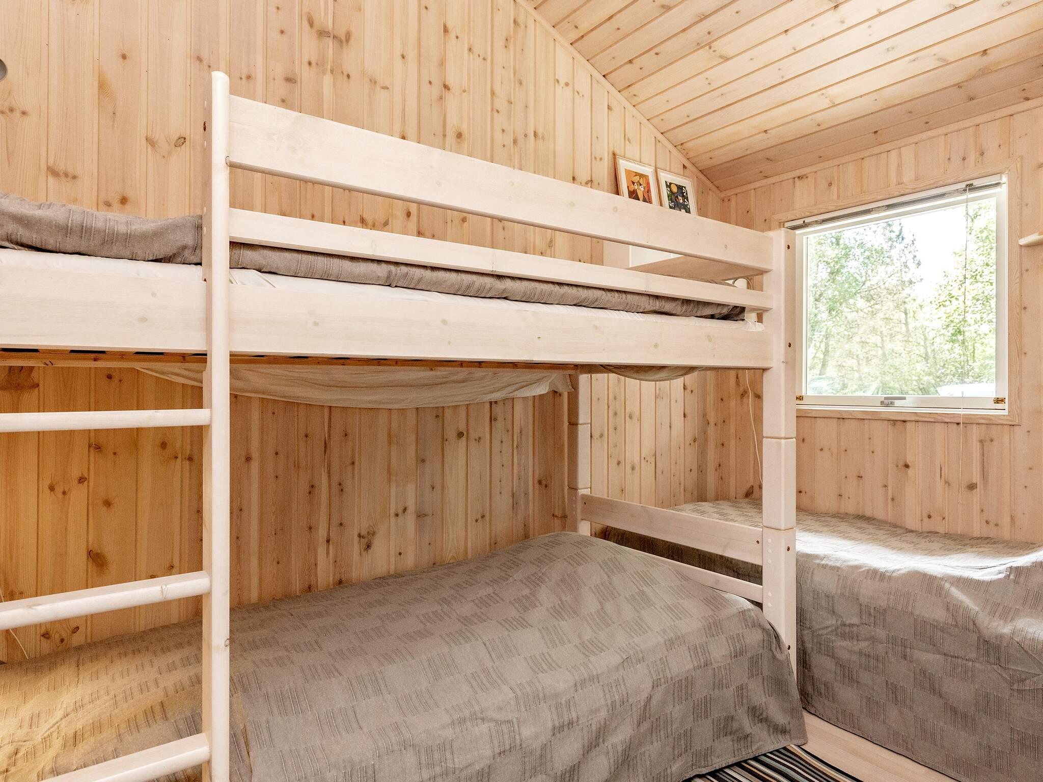 Der er tre komfortable soveværelser med gode senge, samt en hems, som børn vil nyde som legeplads. Køjesengen er stor nok til voksne, og hemsen er let tilgængelig via en ordentlig trappe. Indretningen gør denne bolig velegnet til både familier med børn og grupper af voksne, der ønsker en veludstyret base tæt på naturen.