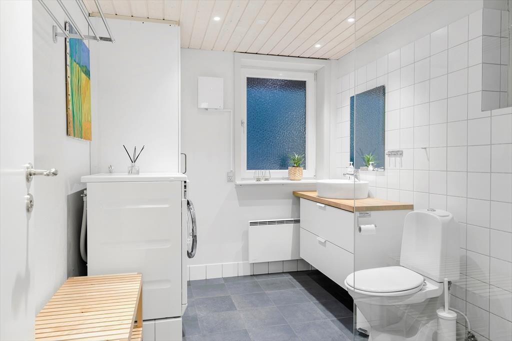 Når du træder ind i sommerhuset, møder du en lys og venlig atmosfære, der straks skaber en følelse af hjemlig hygge. De åbne rum og det smukke lysindfald fra de store vinduer giver huset en skøn rummelighed. Stuen og køkkenet ligger i åben forbindelse, hvilket gør det nemt at være sammen – uanset om du laver mad eller slapper af i sofaen med en god bog. Soveværelserne er indrettet med fokus på komfort, og badeværelset er lyst og moderne, så alle kan starte dagen på den bedst tænkelige måde.