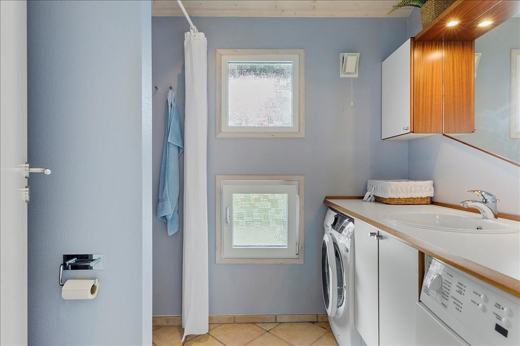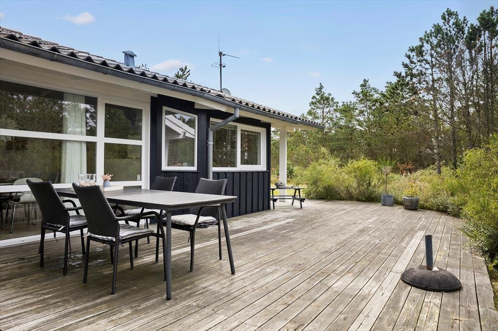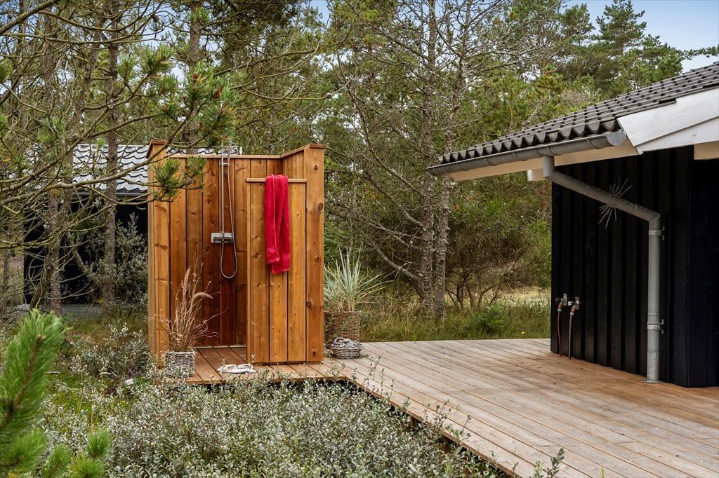 På den store naturgrund er det kun fuglesang og vind i trætoppene, der forstyrrer freden. Her er masser af plads at boltre sig på – til leg, afslapning og til at nyde solen dagen lang. Du kan starte morgenen med et bad under den udendørs bruser, der både har koldt og varmt vand, og senere rykke ud på en af de skønne terrasseområder med morgenkaffen. Terrassen inviterer også til lange grillaftener og udeliv fra tidlig morgen til sen aften, og når duggen falder, er det oplagt at rykke tæt sammen med et tæppe og en kop varm kakao, mens mørket sænker sig over trætoppene. Den ugenerede grund skaber optimale rammer for ren afslapning – her er du midt i naturen og helt væk fra hverdagen.
