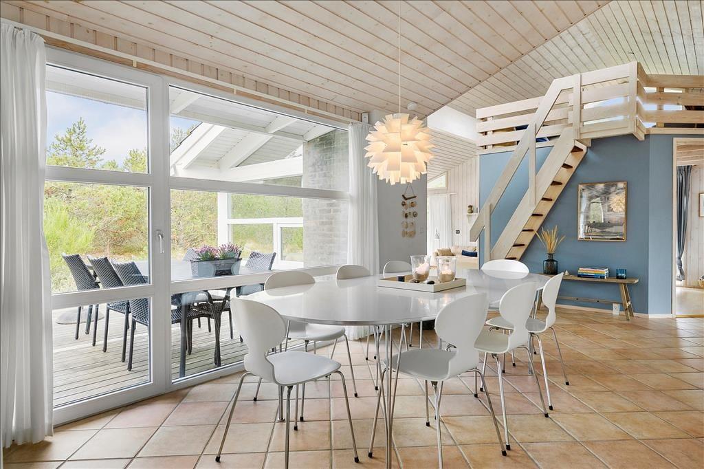Mellem klitplantagens grønne træer og det brusende Kattegat finder du dette dejlige feriehus på Gl. Kirkevej 54 i Lodskovvad. Her venter en afslappet feriestemning med masser af lys, god plads og skønne omgivelser – både inde og ude – og med plads til både familien og forkælelse. Det er det perfekte udgangspunkt, hvis du drømmer om fredelige dage i naturen med tid til hinanden og til bare at være.
