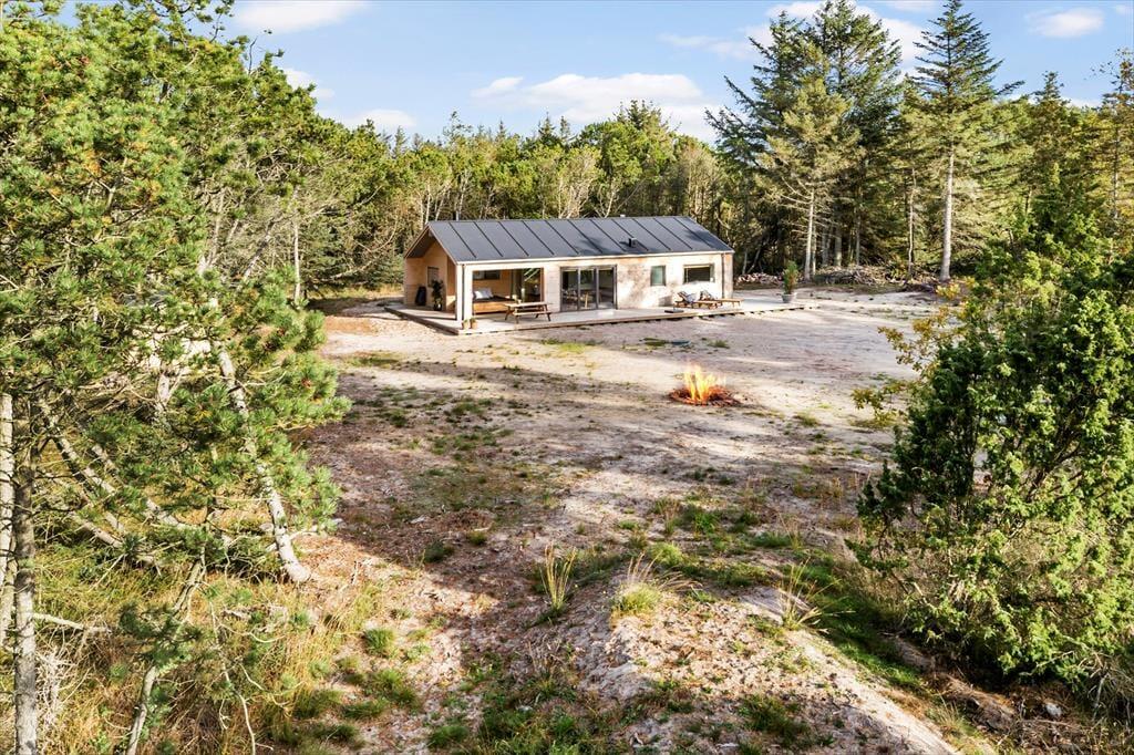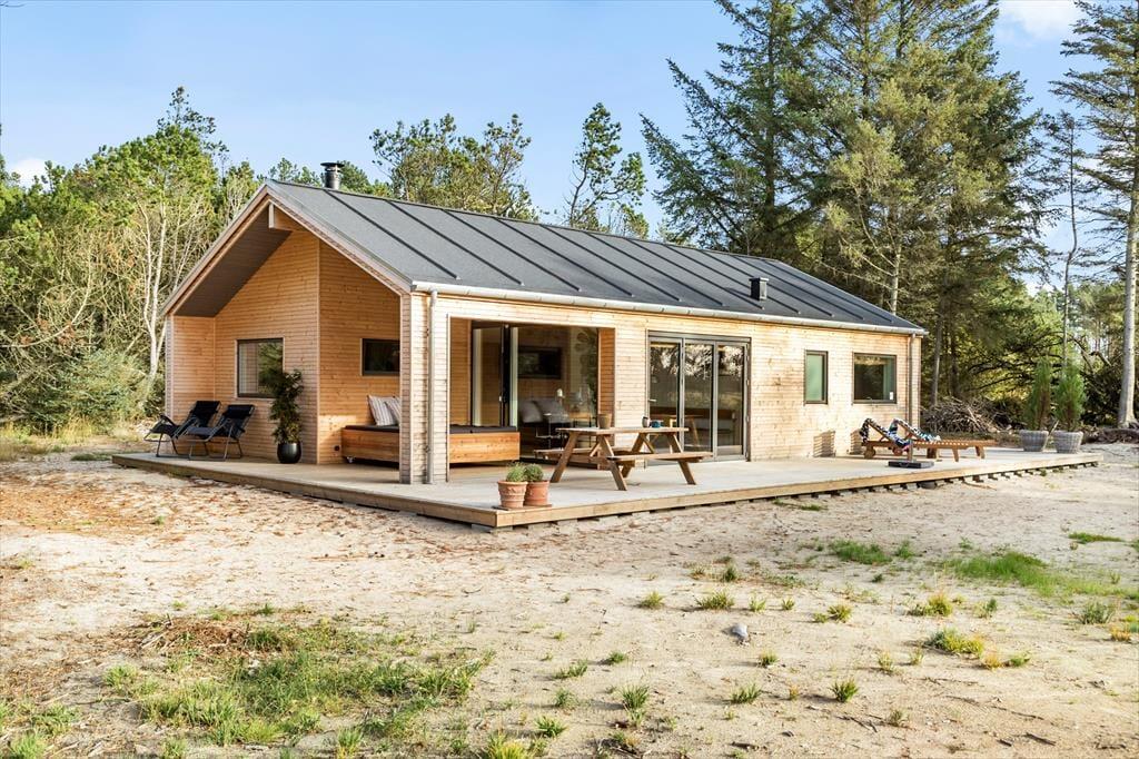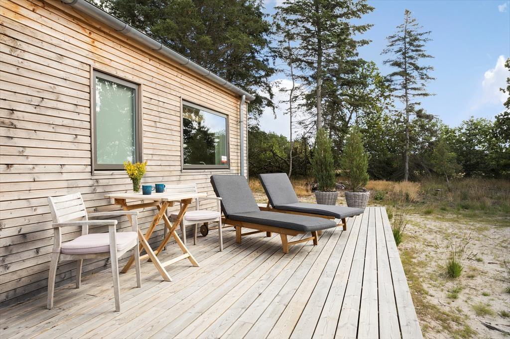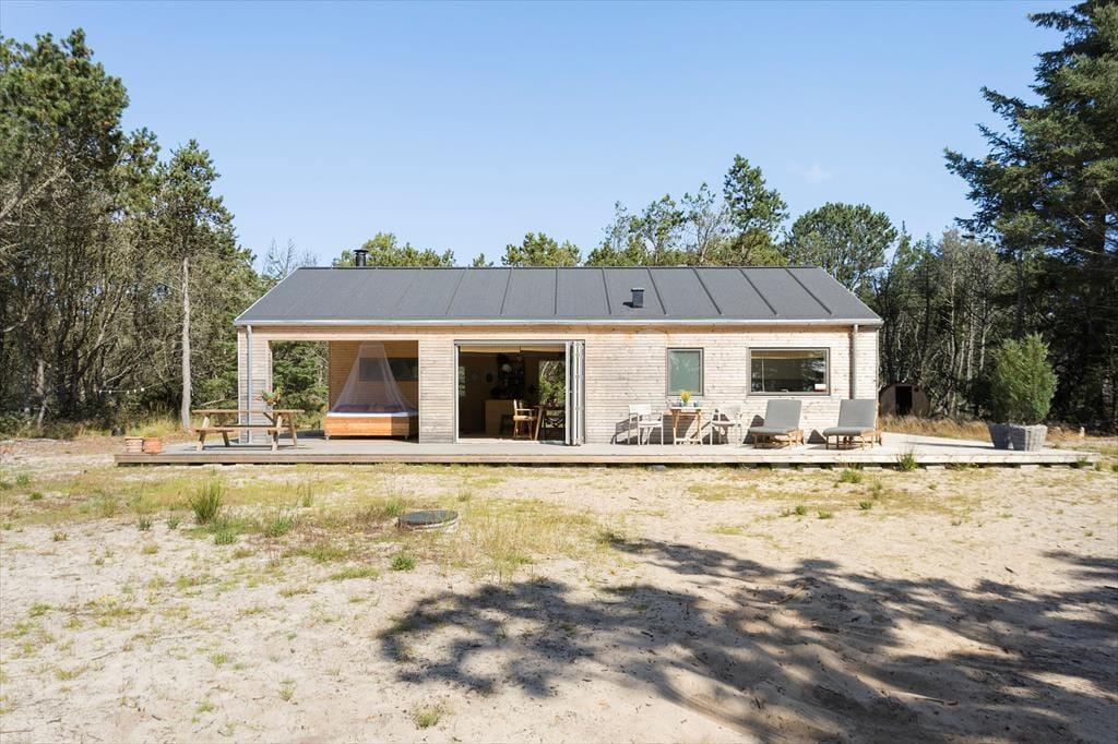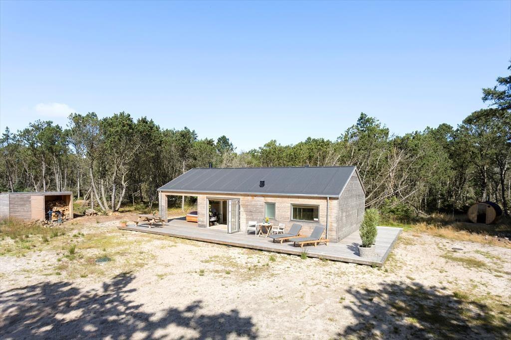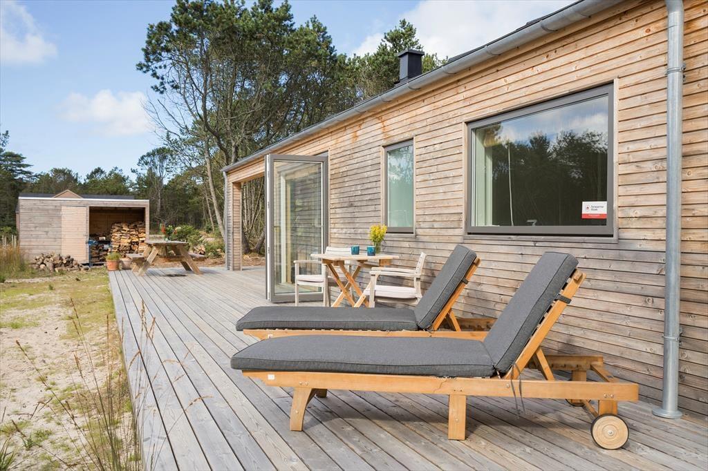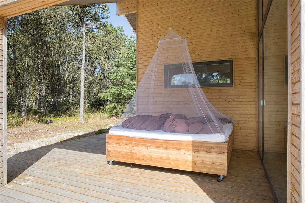 Sommerhuset ligger på en dejlig grund med flere gode terrassearealer, hvor du kan følge solen i løbet af dagen. Har du lyst til morgenkaffen i solen, en frokost i læ for vinden eller en afslappende aftenstund under overdækket tag, er det hele muligt her. Naturen omkring huset giver både fred og privatliv, og du kan lade børnene lege frit, mens hundene snuser rundt i de grønne omgivelser. Når mørket falder på, er det oplagt at tænde grillen og nyde en hyggelig middag i det fri, mens I lytter til lydene fra den nordjyske natur. Det er ren feriestemning – afslappet, uforstyrret og helt uden planer.
