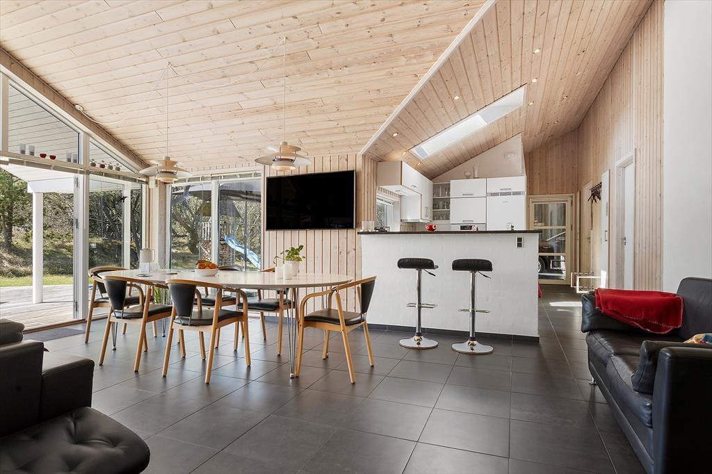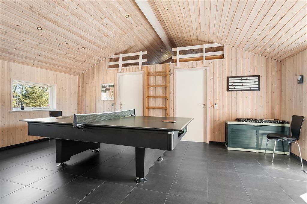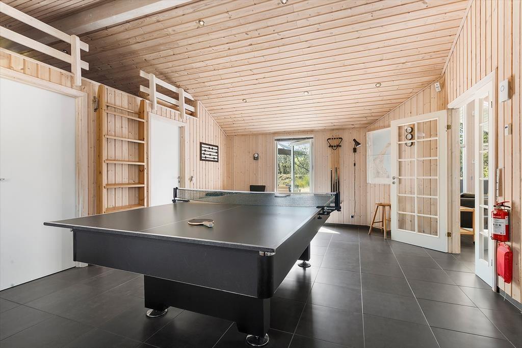 Sommerhuset på Grævlingevej 22 er et oplagt valg for dig, der gerne vil kombinere ro og velvære med hyggelige ferieaktiviteter. Indretningen er lys, varm og imødekommende, og husets hjerte er det rummelige opholdsrum, hvor stue, spiseplads og køkken smelter sammen i ét indbydende fællesrum. Brændeovnen giver en dejlig varme på kølige dage og fuldender stemningen, når du slapper af i sofaen med et glas vin og brætspillet i gang på bordet. I husets aktivitetsrum kan hele familien dyste i bordtennis eller billard, og når kroppen trænger til ro, venter både spabad og sauna på at blive taget i brug. Soveværelserne er hyggeligt indrettet, og med en planløsning, der både giver plads til samvær og privatliv, er huset velegnet til såvel familier som vennepar.