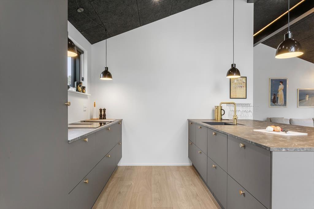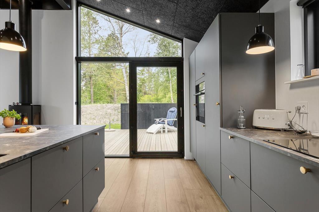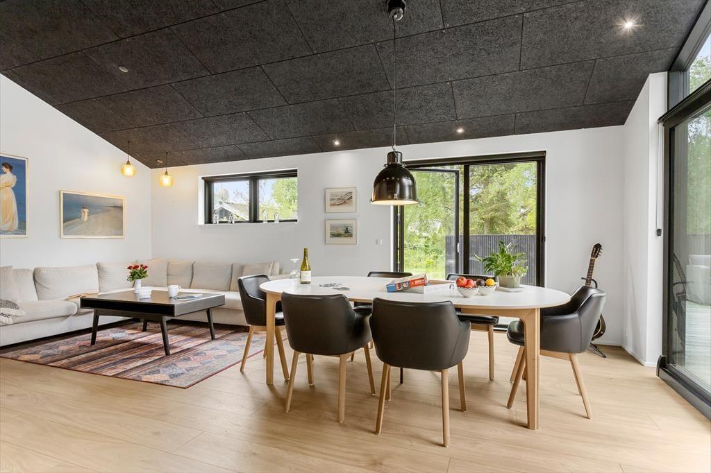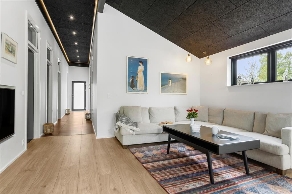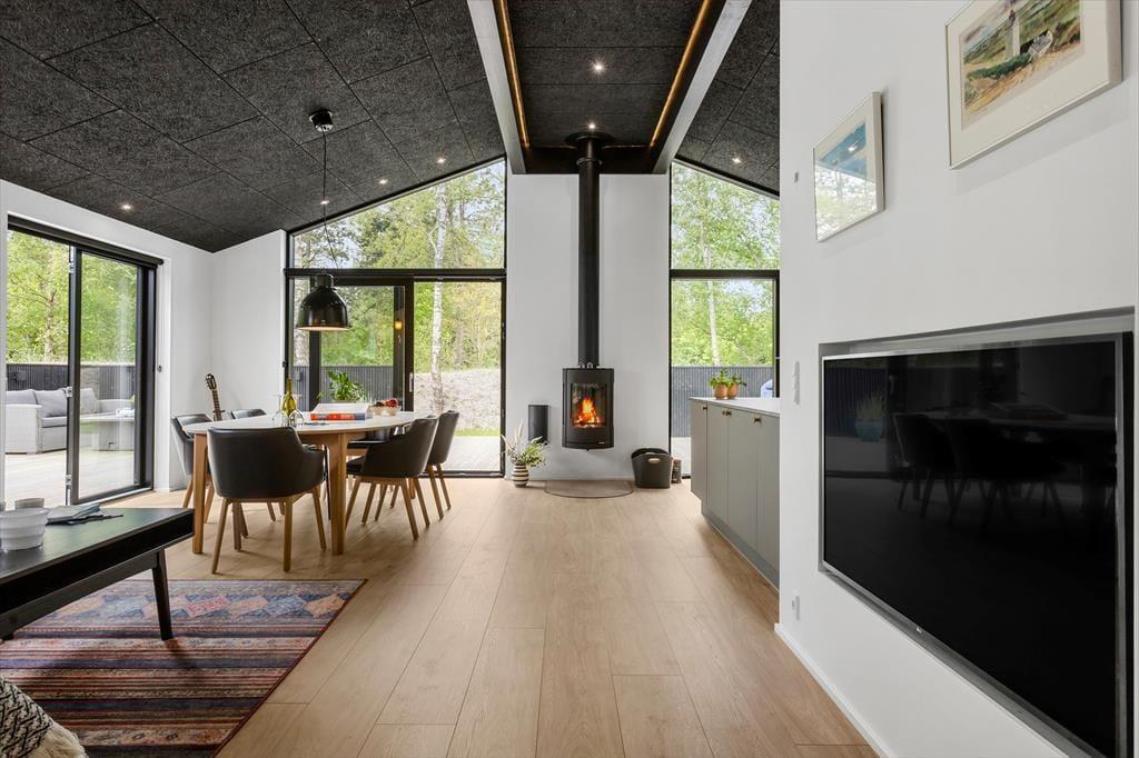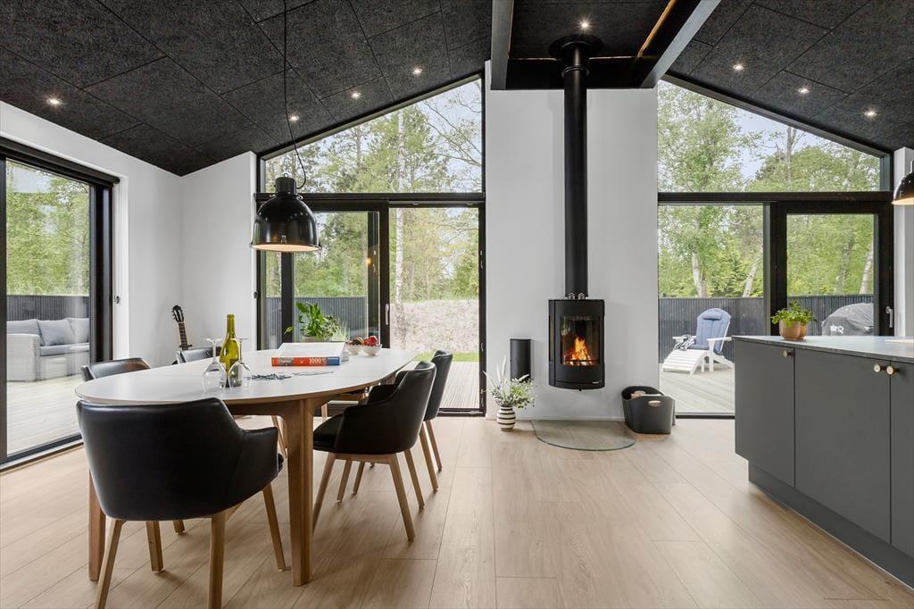 Så snart du træder ind i det nybyggede sommerhus, mødes du af en indbydende atmosfære og en moderne indretning, der får feriefornemmelserne til at melde sig med det samme. Her er tale om et veludstyret hus, hvor komforten er i top, og hvor der er tænkt på det hele – fra gode senge og rummelige værelser til store opholdsrum med plads til både afslapning og fællesaktiviteter. Det lyse køkkenalrum lægger op til samvær over morgenmaden eller madlavning i fællesskab, mens stuen indbyder til filmaftener, brætspil og hygge med hunden ved fødderne. Og netop det, at der er plads til ét firbenet familiemedlem, gør huset endnu mere indbydende for dig, der ikke vil undvære selskabet af din bedste ven.