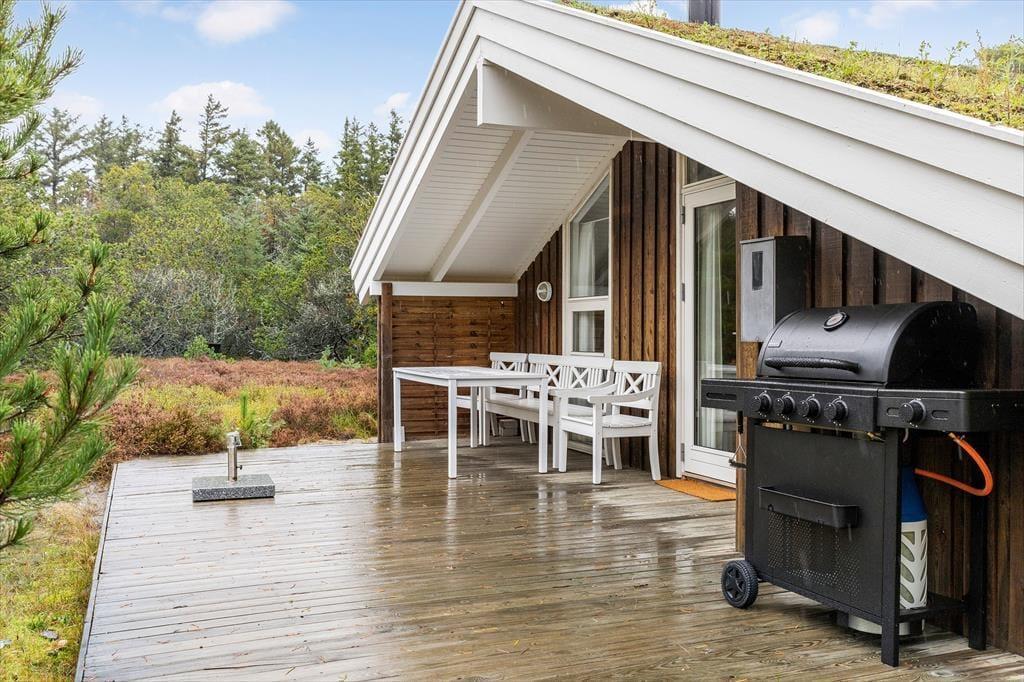 Sommerhus i Lodskovvad, Nordjylland, med plads til 8 voksne. Der er en hyggelig indretning med bl.a. brændeovn, og du finder desuden vaskemaskine og opvaskemaskine i boligen.