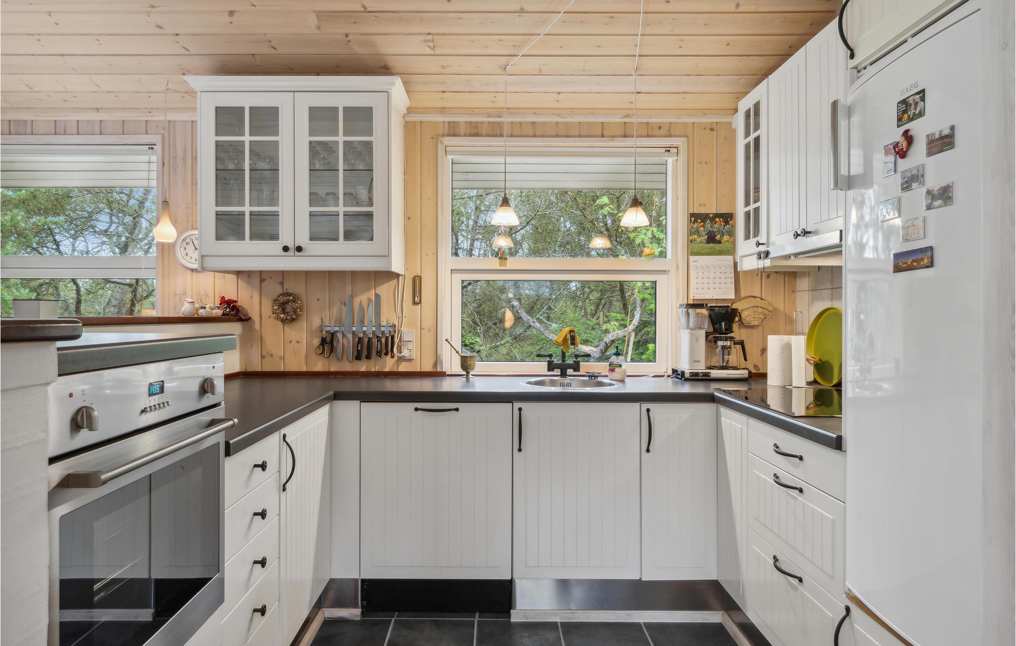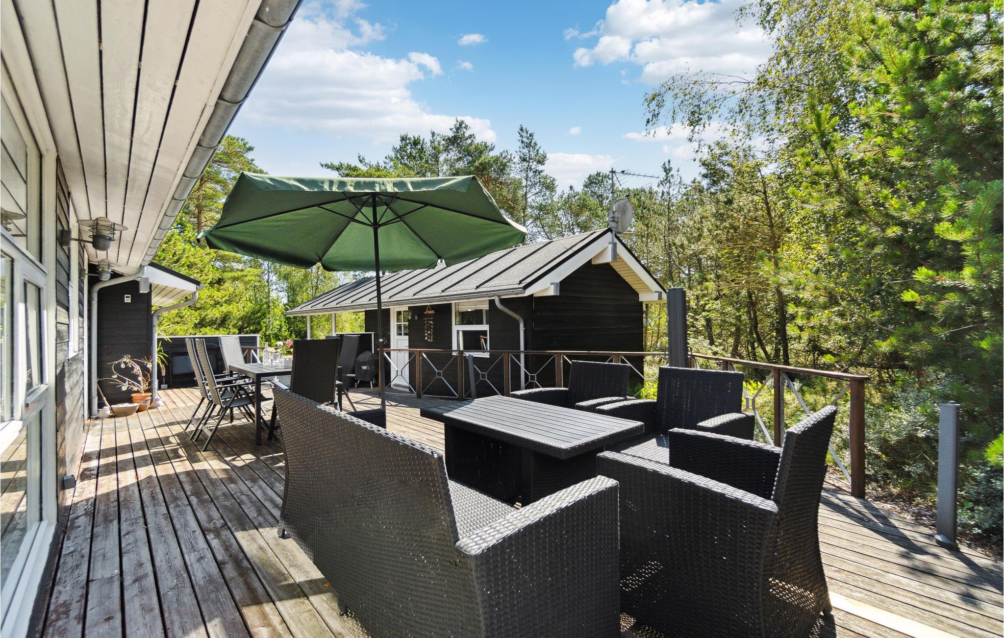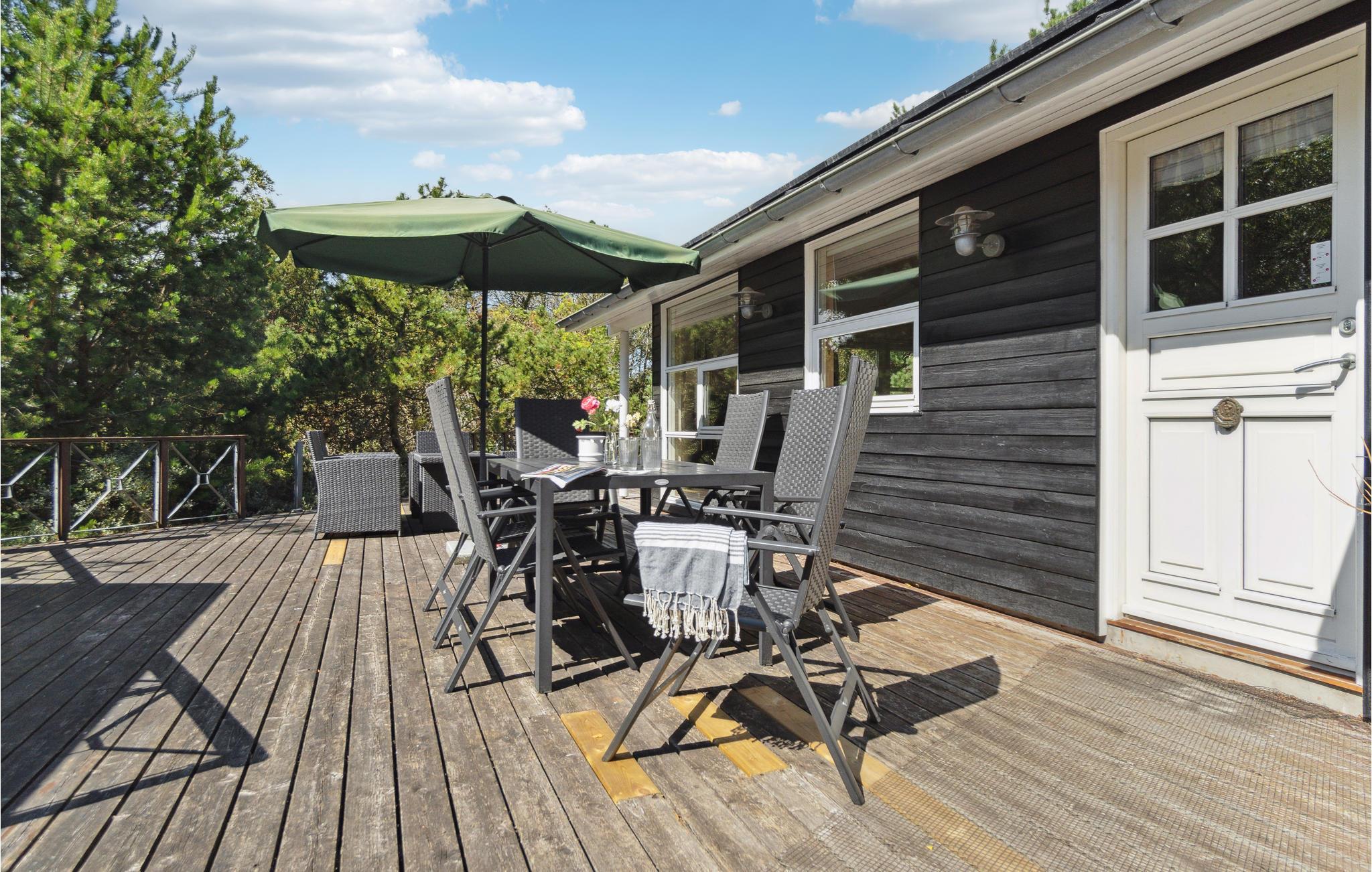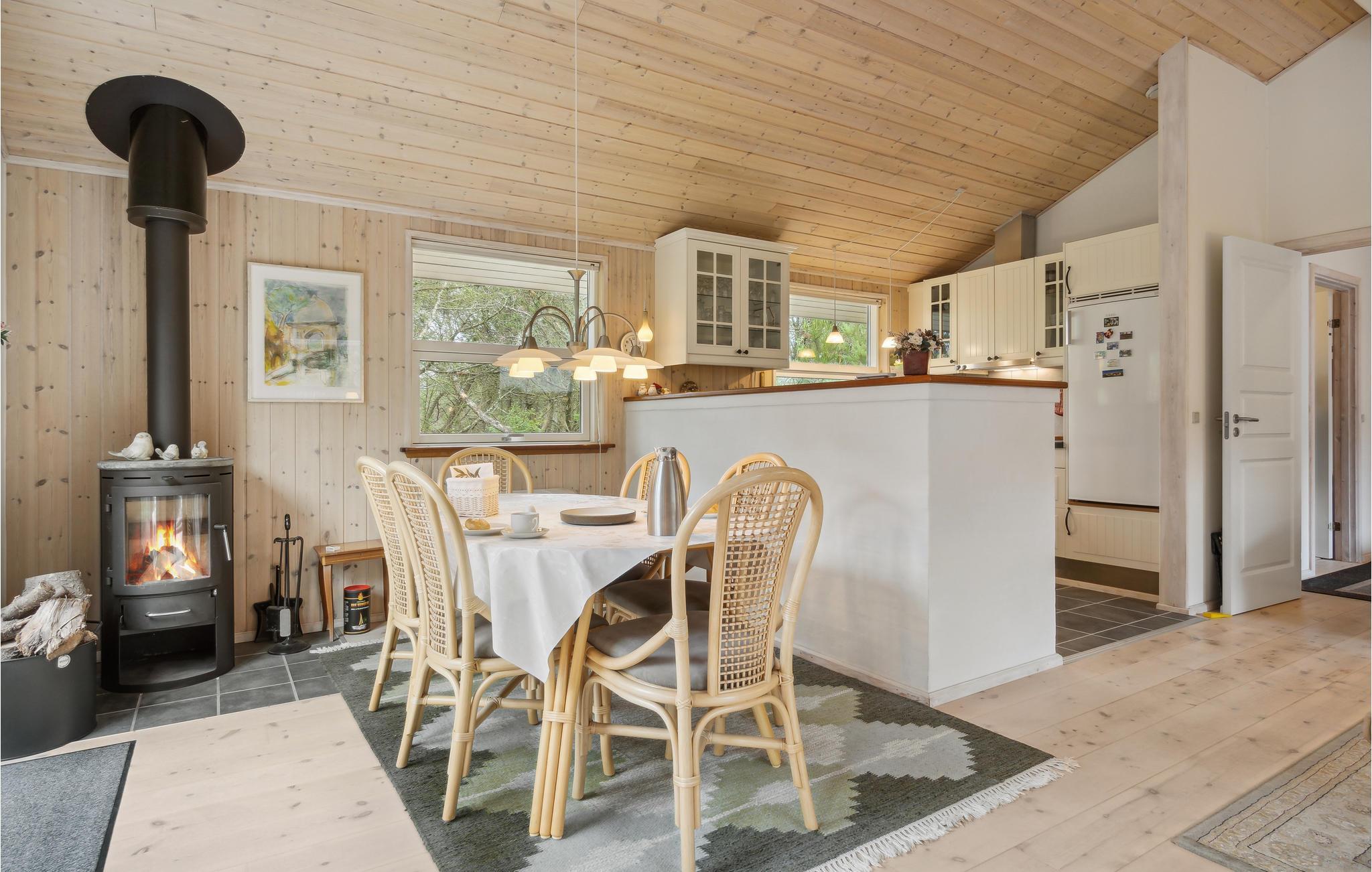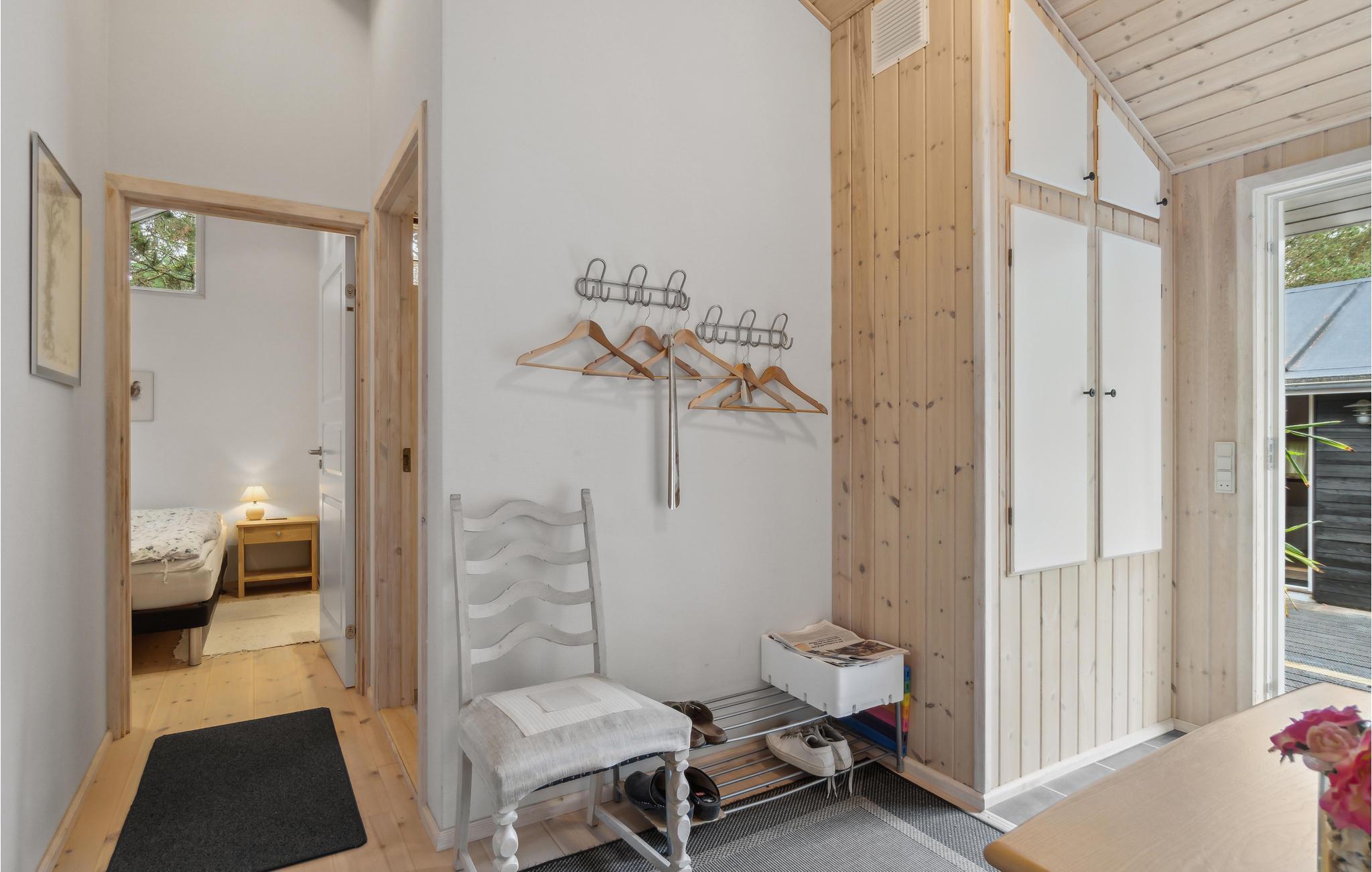 Ikke langt fra Kattegats populære sandstrande byder dette feriehus jer velkommen. Indenfor venter jer en personlig indretning af høj kvalitet, der gør et smagfuldt indtryk og danner den ideelle ramme for en afslappende ferie. Tilbring hyggelige stunder i den lyse stue med sjove brætspil, lækre måltider og gode samtaler. På kølige dage kan I tænde op i pejsen og hellige jer ferielæsningen, mens I lytter til flammernes knitren. Når solen er fremme, kan I sidde ude på terrassen og senere nyde sommeraftenen over et lækkert måltid fra grillen.