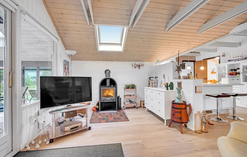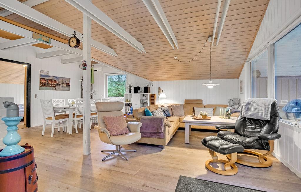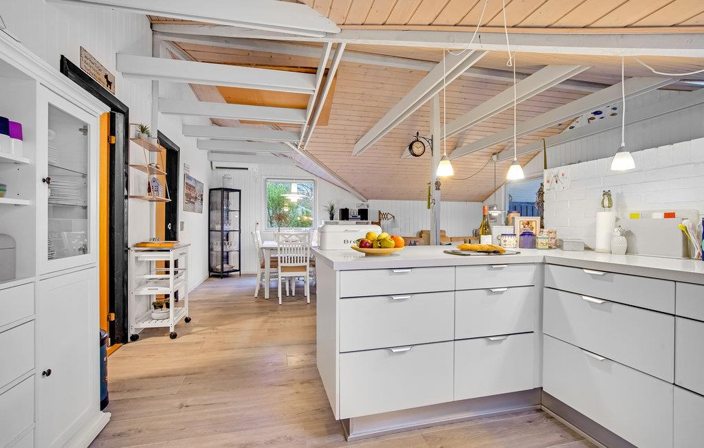 Stort og hyggeligt feriehus beliggende på naturgrund med to dejlige terrasser, henholdsvis mod syd og vest. Med boligens åbne planløsning er der fokus på samvær. Her skal ingen stå alene i køkkenet, mens resten af familien sidder i den store hjørnesofa! Huset er præget af en lys atmosfære, og de høje lofter giver en følelse af rummelighed. Lav familiens yndlingsretter sammen i køkkenet og servér dem ved det dejlige spisebord. På varme dage kan I rykke måltiderne udenfor på terrassen, hvor I også kan slikke sol i løbet af dagen. Jeres børn vil uden tvivl synes godt om den skønne naturgrund.