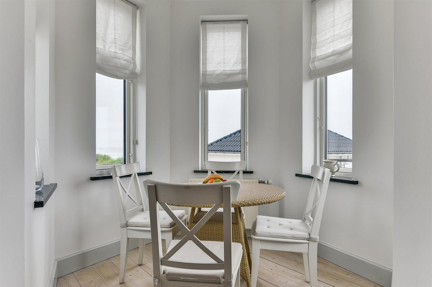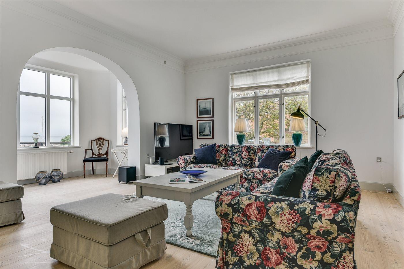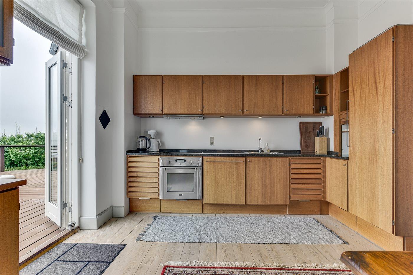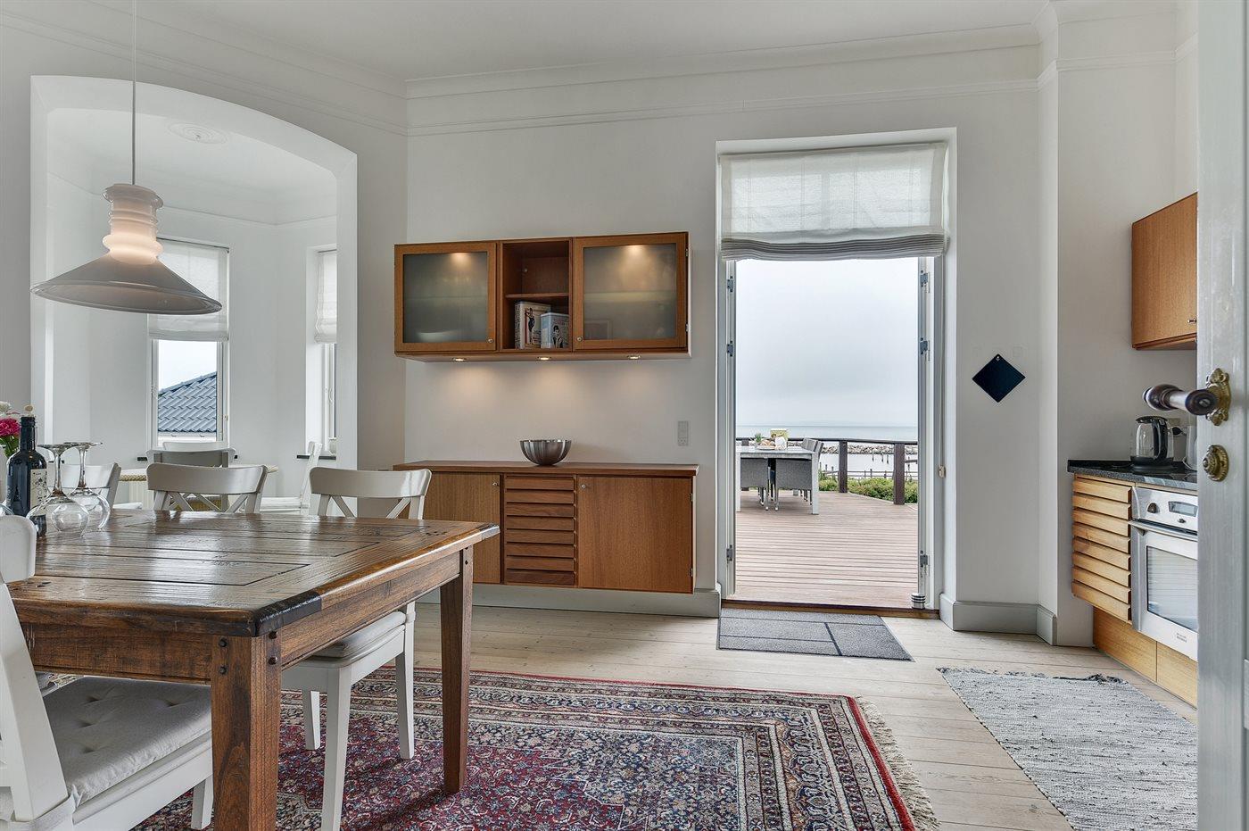 Her kan du nyde de dejlige sommeraftener med overdådige solnedgange fra første parket. Selve huset er lyst og smagfuldt indrettet og udstyret med en pragtfuld stor mahogni træterrasse, hvorfra man kan nyde udsigt og liv på vand og i land.