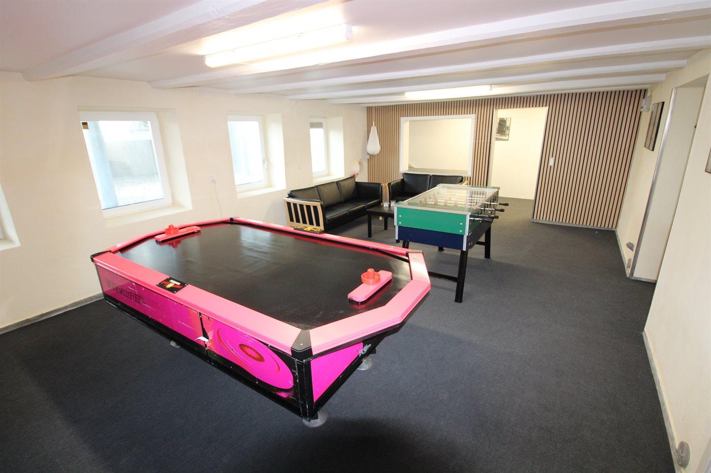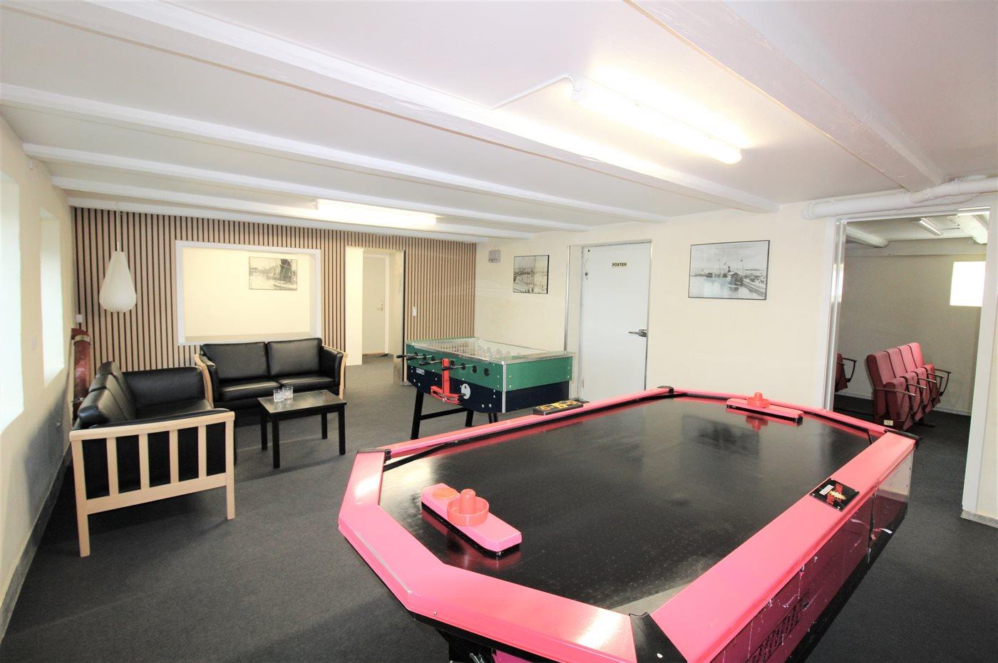I aktivitetsrummet er der følgende udstyr: Airhockey. Bordfodbold.