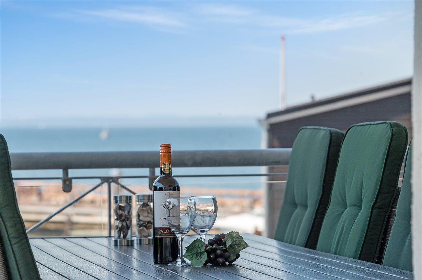 Stor og lækker ferielejlighed med fantastisk havudsigt ved marinaen i Lohals.
