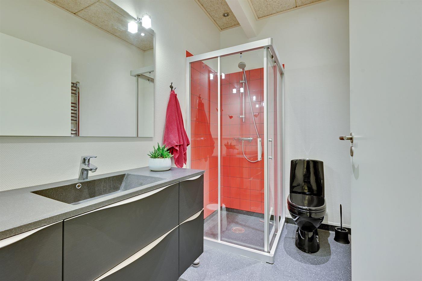 Der er 2 badeværelser med bruseniche og 2 toiletter.