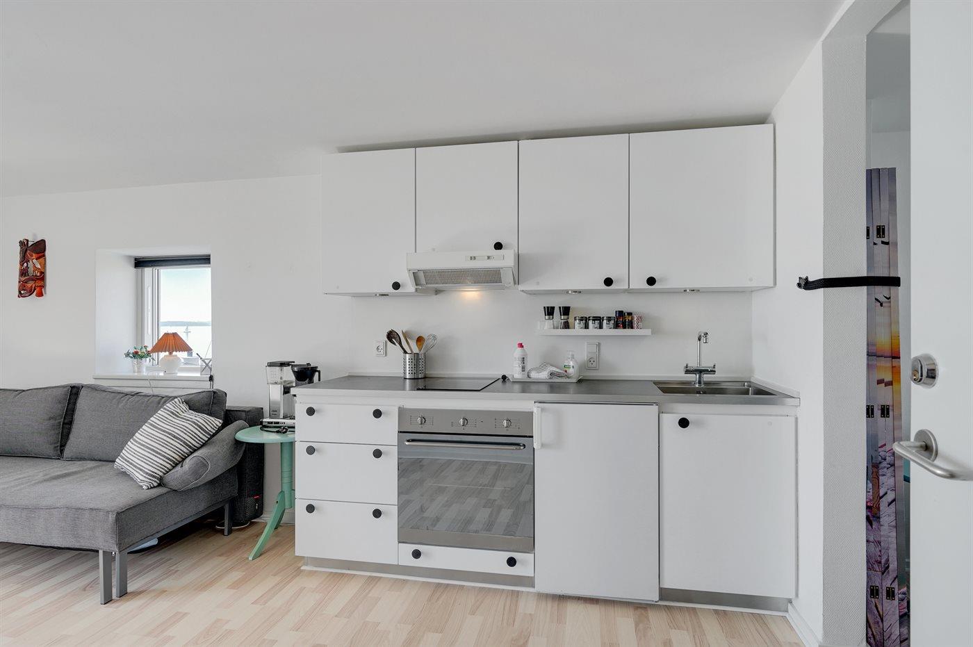 Køkkenet er udstyret med 1 køleskab. Der er 2 keramiske kogeplader, varmluftovn.