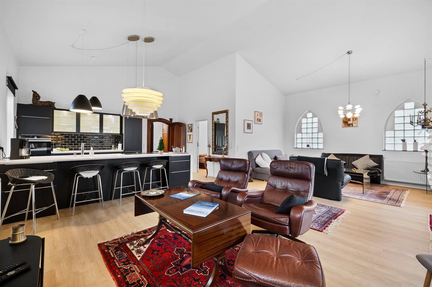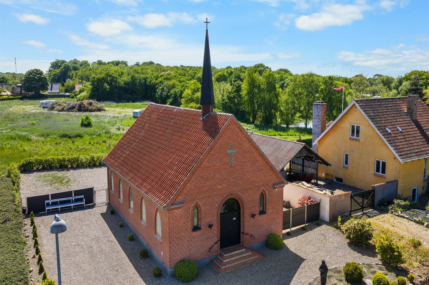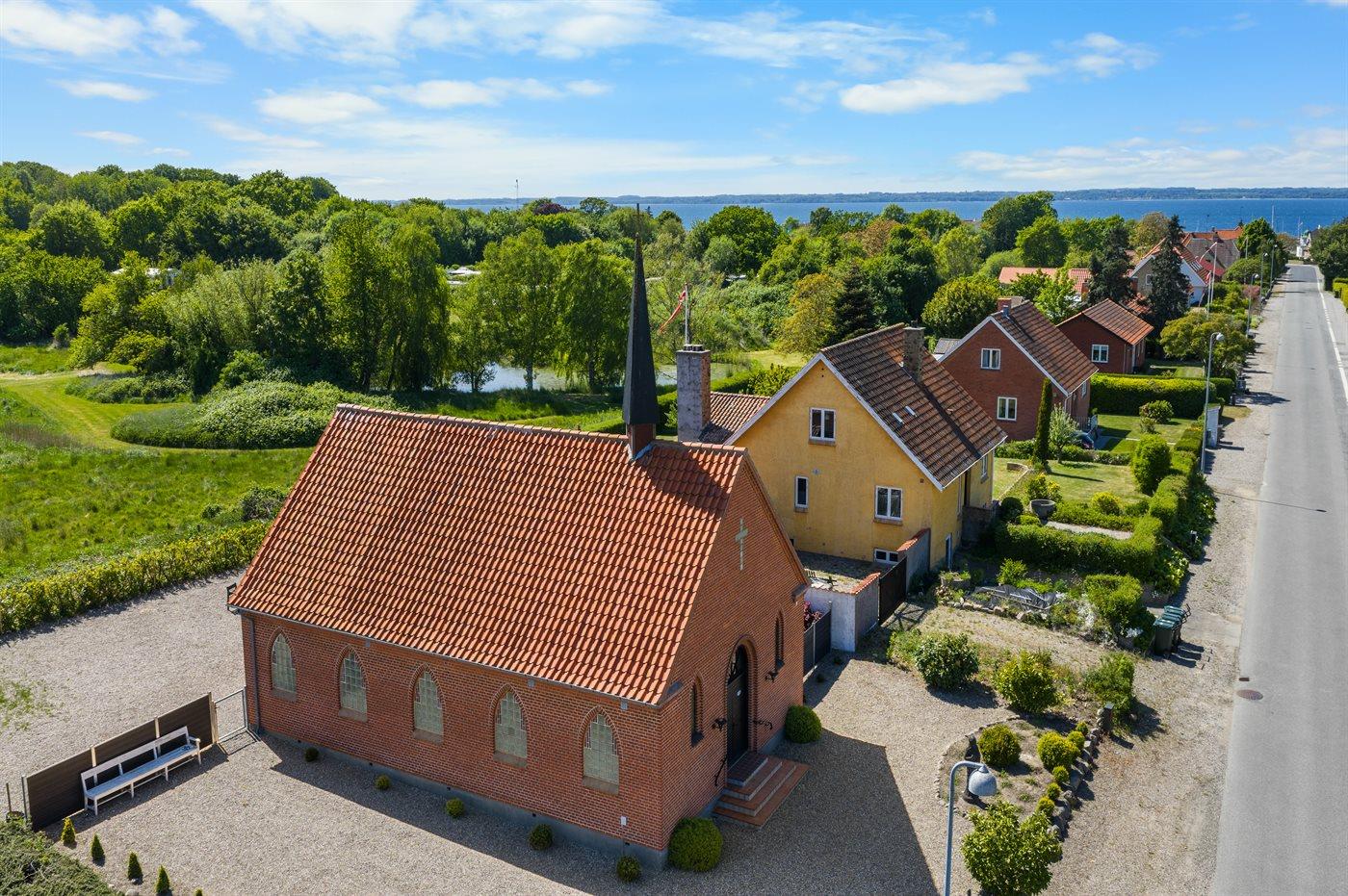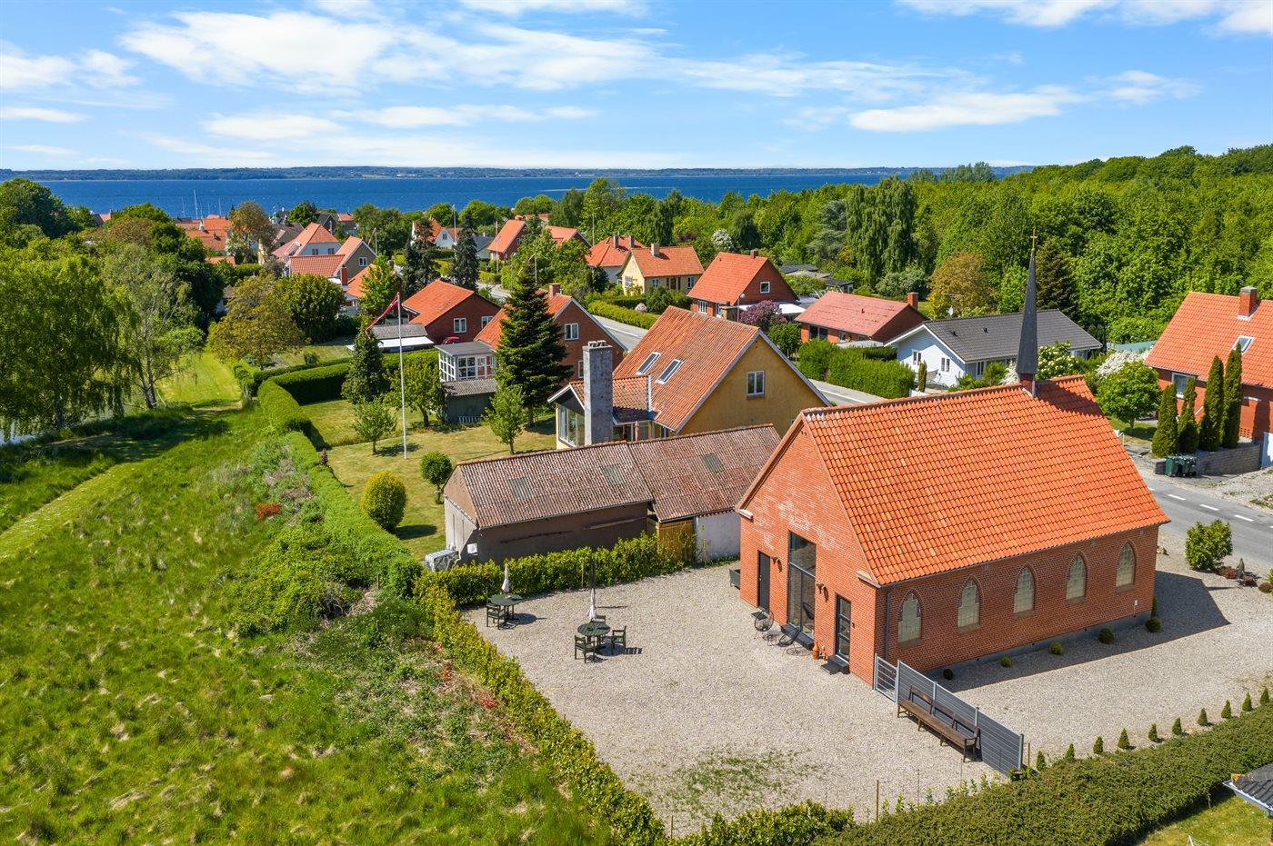 I det hyggelige Lohals, hvor der både er dejlige strande, marina, butikker og masser af natur i gåafstand, ligger denne flotte, specielle ejendom. Huset er en tidligere kirke, som i 2018 blev bygget om til en almindelig bolig med respekt for ejendommens historie. Huset fremstår i flot stand, og indretningen er smagfuld og i høj kvalitet. Grunden bag huset er indhegnet.